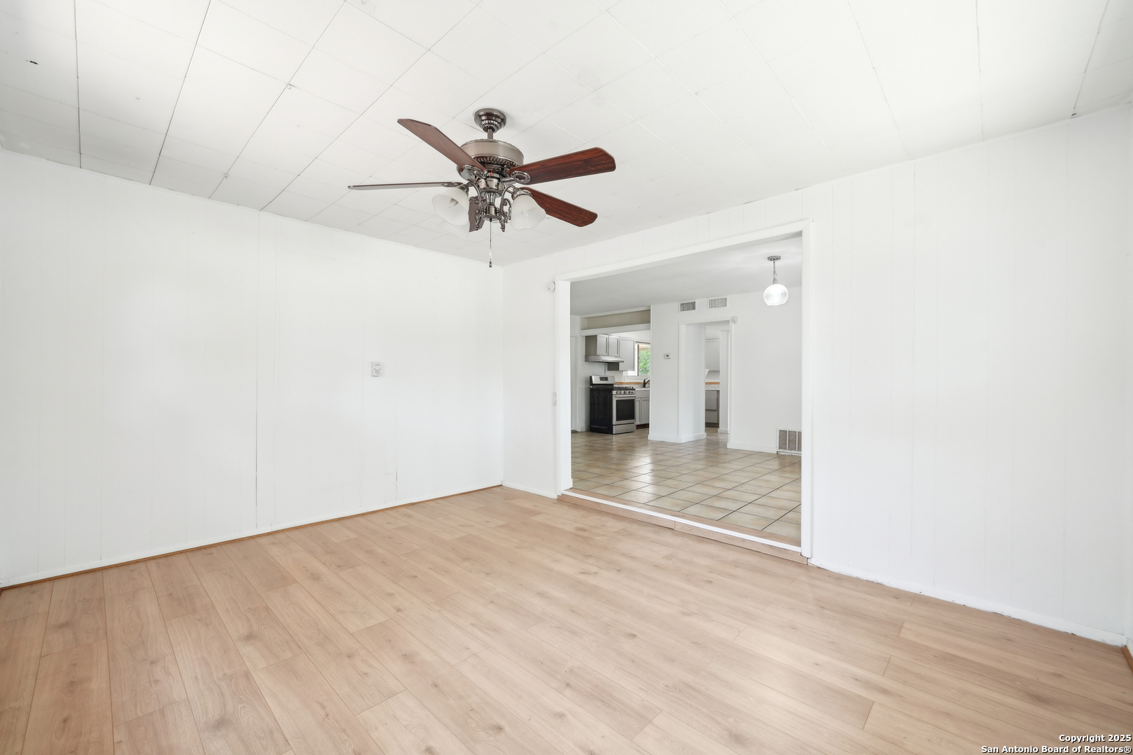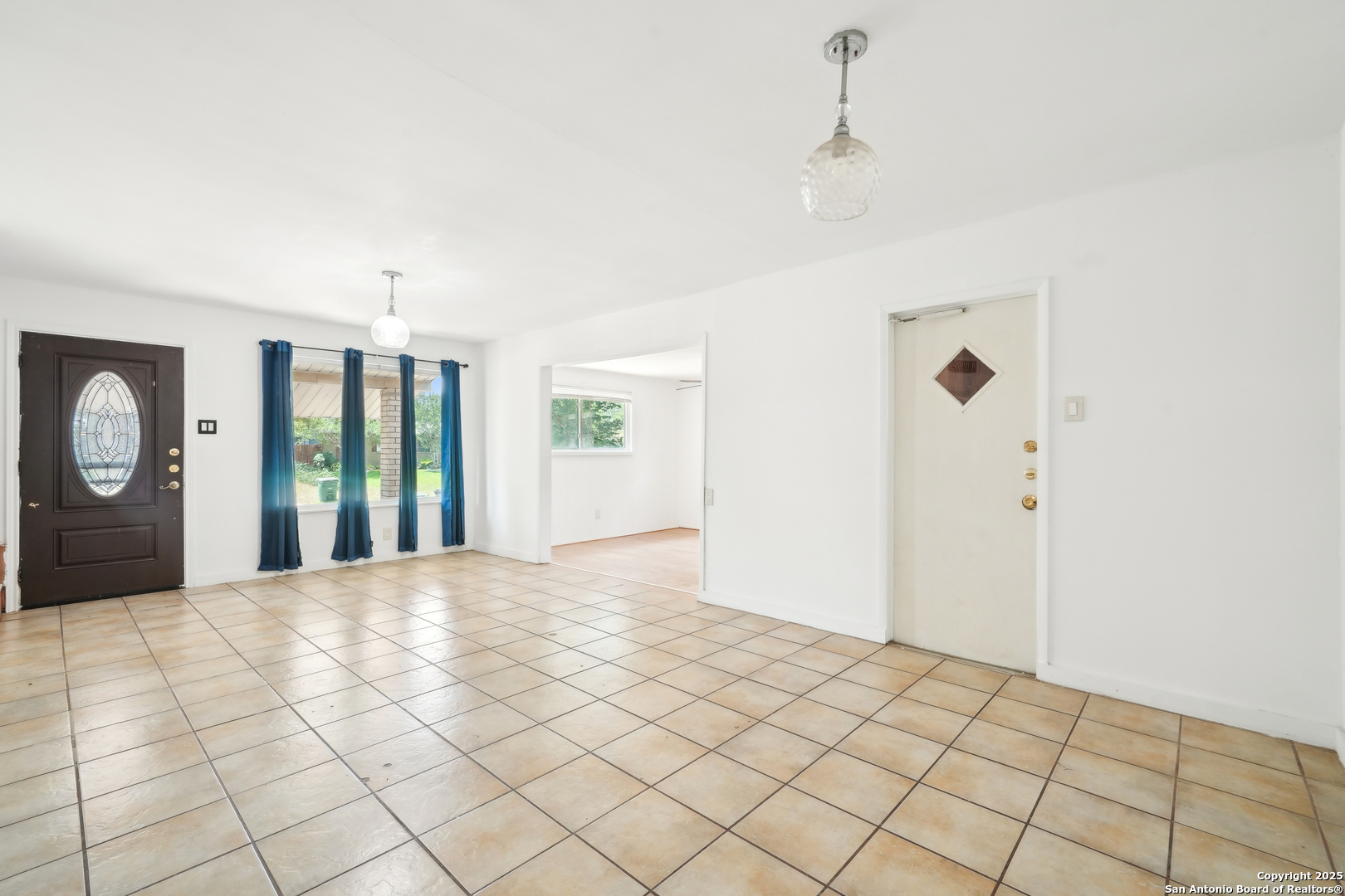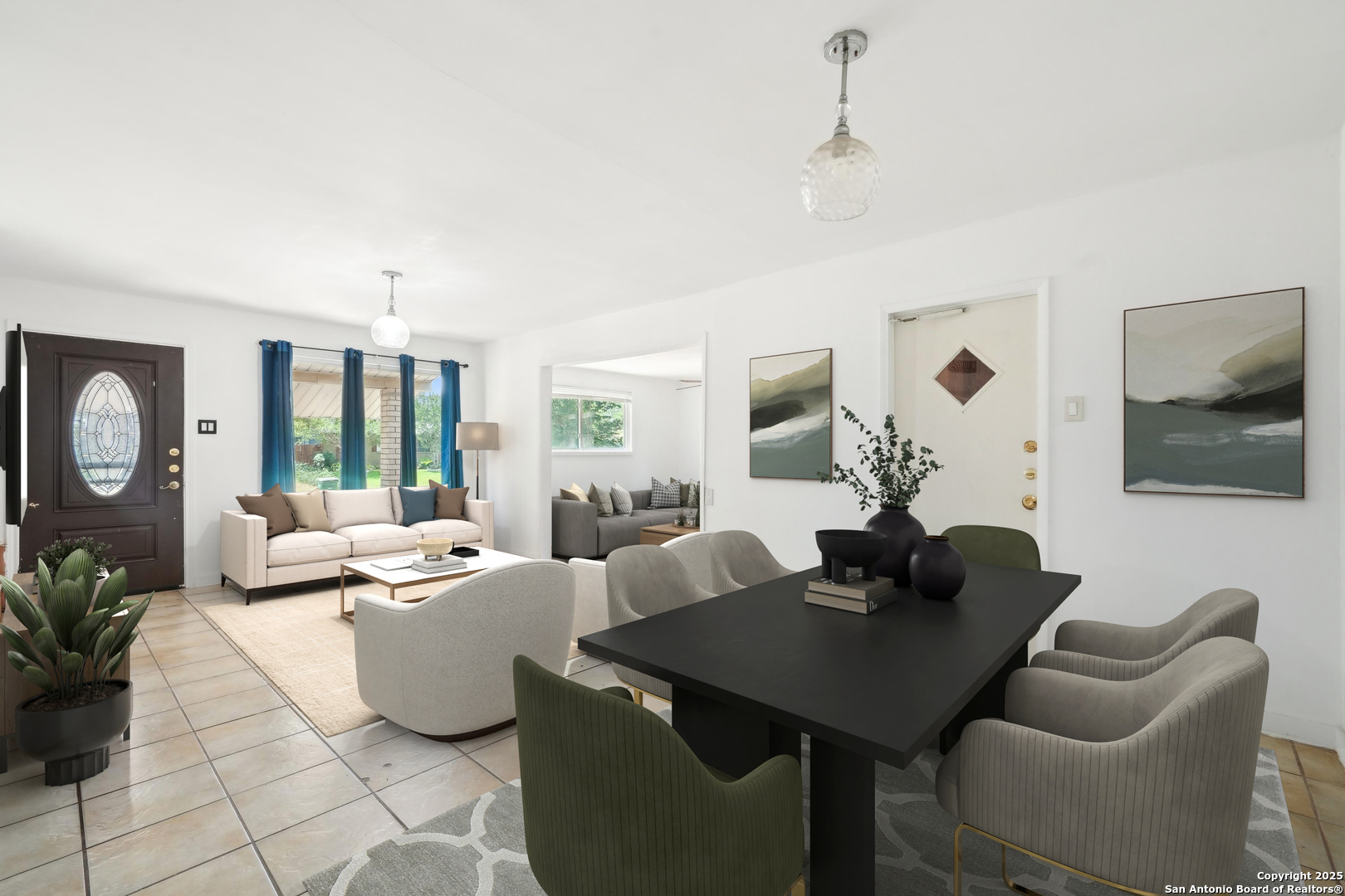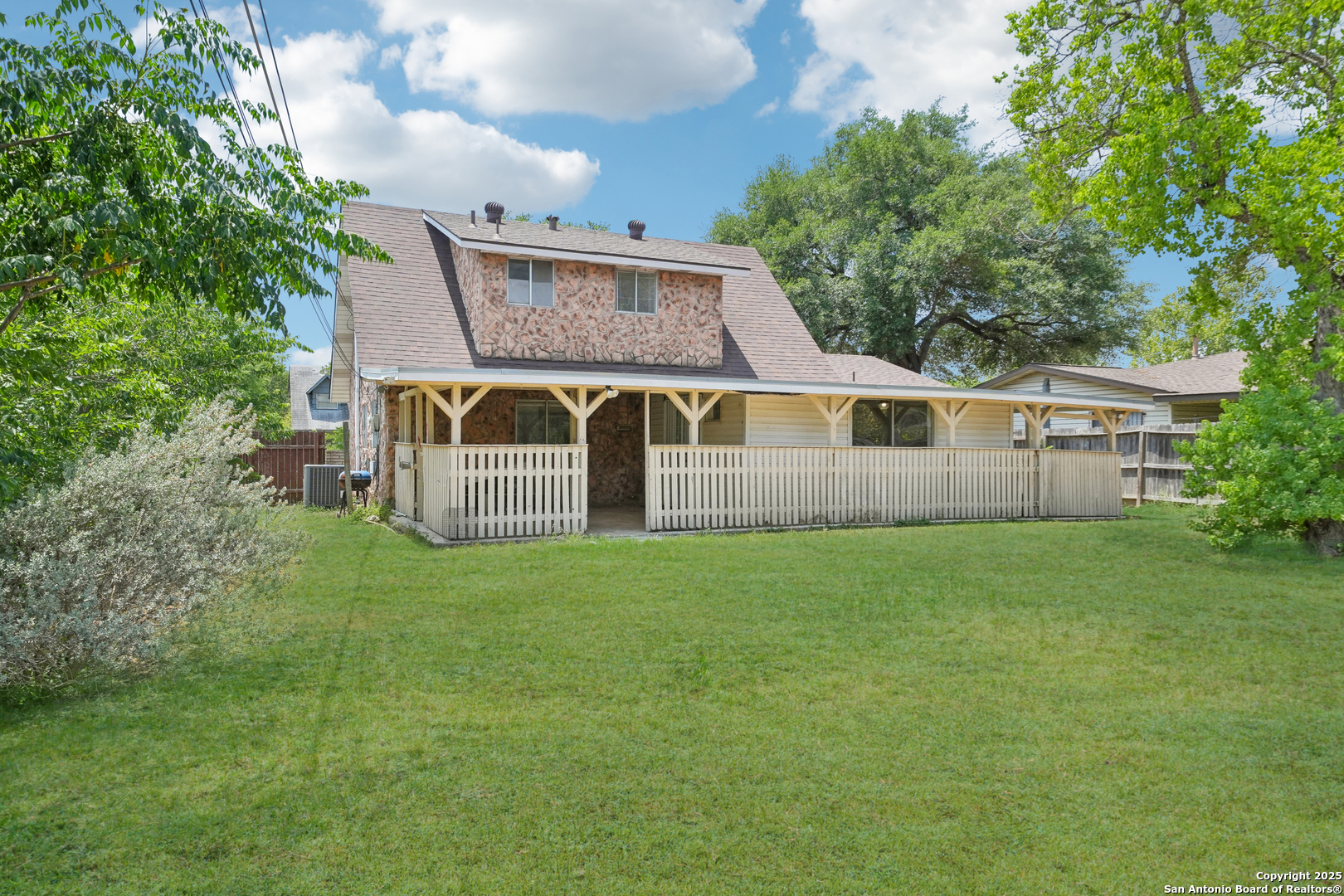 Charming and full of potential, this two-story home is located in the established community of East Terrell Hills. Offering three bedrooms, two bathrooms and a freshly painted interior, it provides a comfortable layout with room to grow. The main floor features a combined living and dining area, plus an additional versatile living space that could serve as a home office, or playroom. The kitchen includes gas cooking, and easy access to the backyard, making meal prep and entertaining a breeze. The primary bedroom and full bath are located on the first floor for added convenience, while the two secondary bedrooms are situated upstairs, offering privacy and separation. A large laundry and storage room adds extra functionality to the home. Step outside to a spacious backyard with a covered patio, mature trees, and a wide lawn-perfect for gatherings, play, or relaxing weekends. Conveniently close to shopping, dining, Fort Sam Houston, and I-410, this home offers both comfort and accessibility. Schedule your personal tour today.