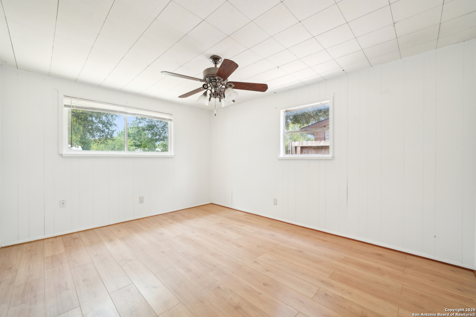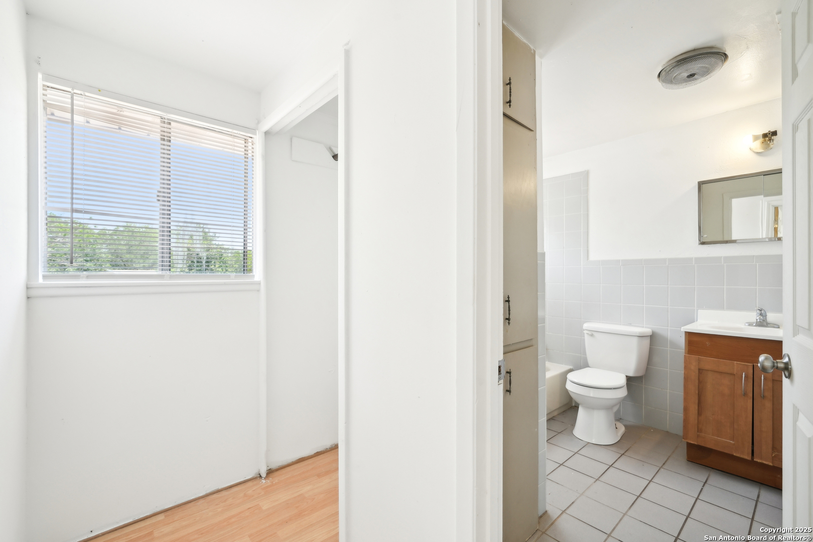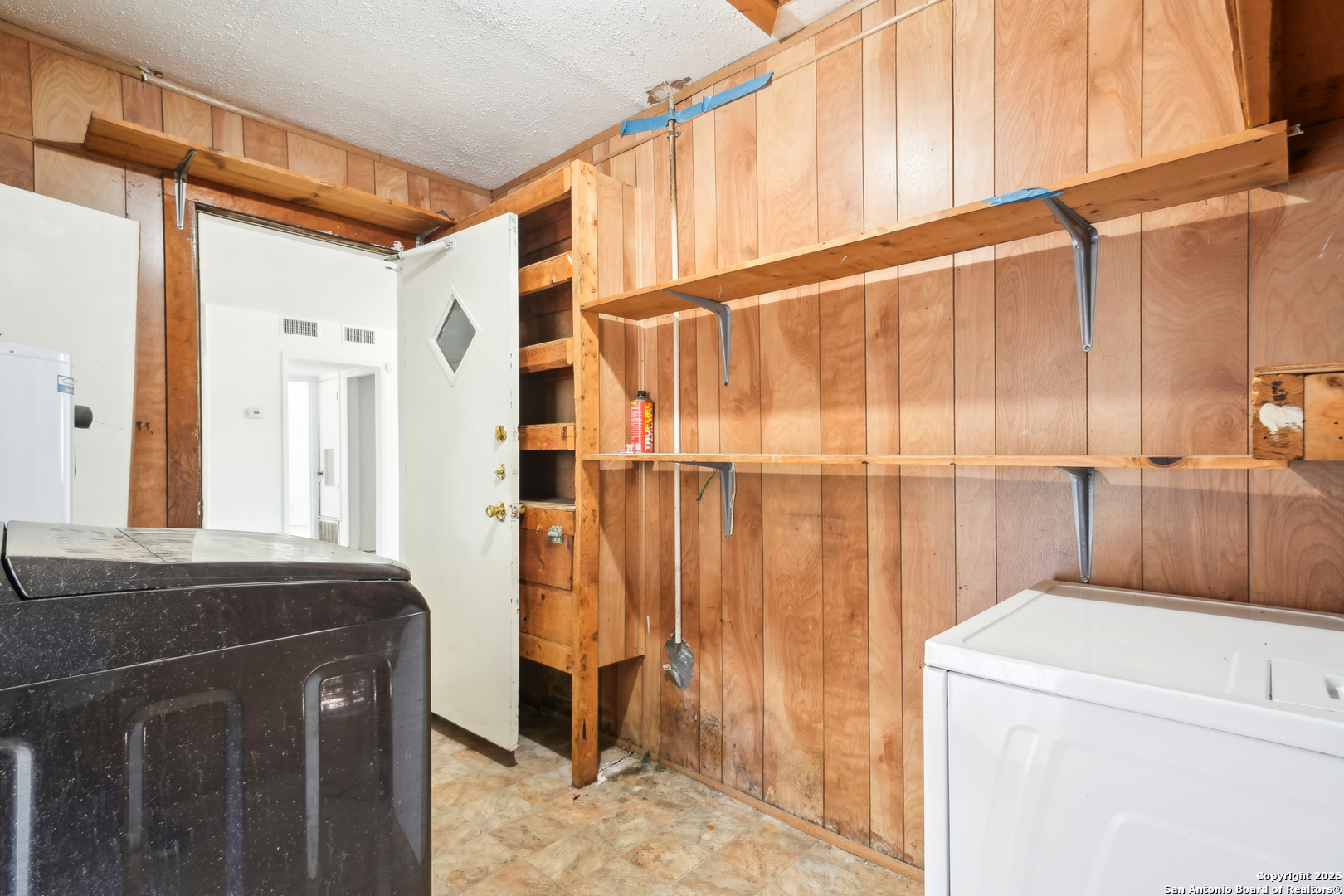 Charming and full of potential, this two-story home is located in the established community of East Terrell Hills. Offering three bedrooms, two bathrooms and a freshly painted interior, it provides a comfortable layout with room to grow. The main floor features a combined living and dining area, plus an additional versatile living space that could serve as a home office, or playroom. The kitchen includes gas cooking, and easy access to the backyard, making meal prep and entertaining a breeze. The primary bedroom and full bath are located on the first floor for added convenience, while the two secondary bedrooms are situated upstairs, offering privacy and separation. A large laundry and storage room adds extra functionality to the home. Step outside to a spacious backyard with a covered patio, mature trees, and a wide lawn-perfect for gatherings, play, or relaxing weekends. Conveniently close to shopping, dining, Fort Sam Houston, and I-410, this home offers both comfort and accessibility. Schedule your personal tour today.