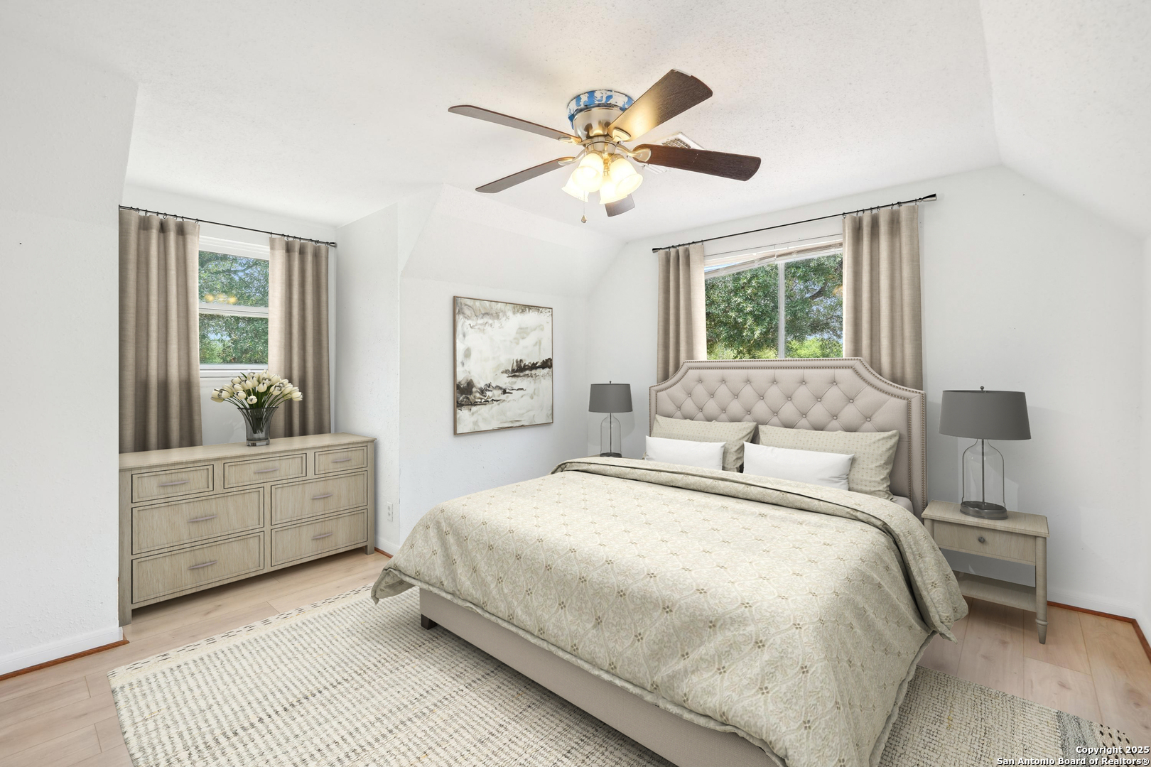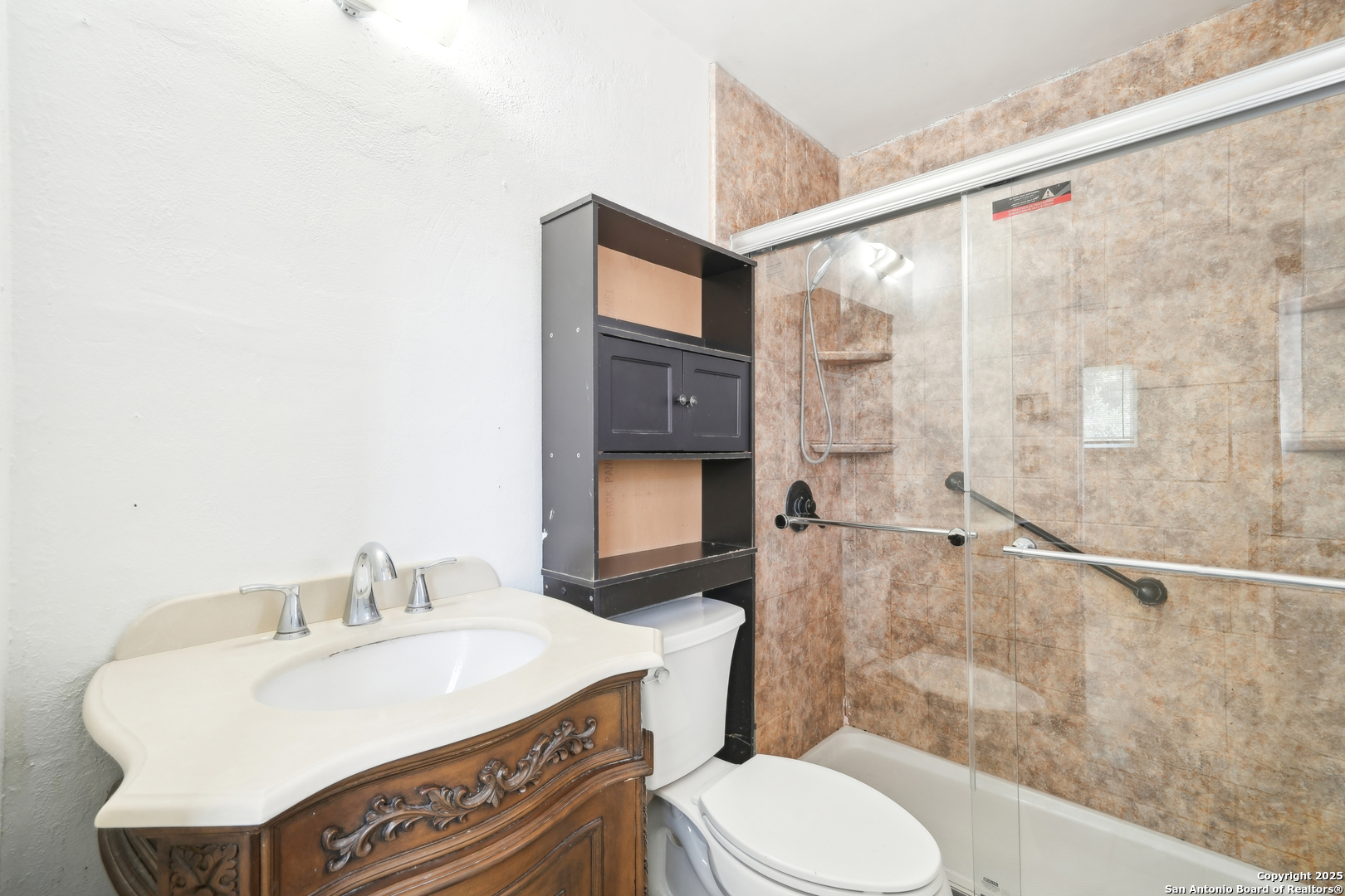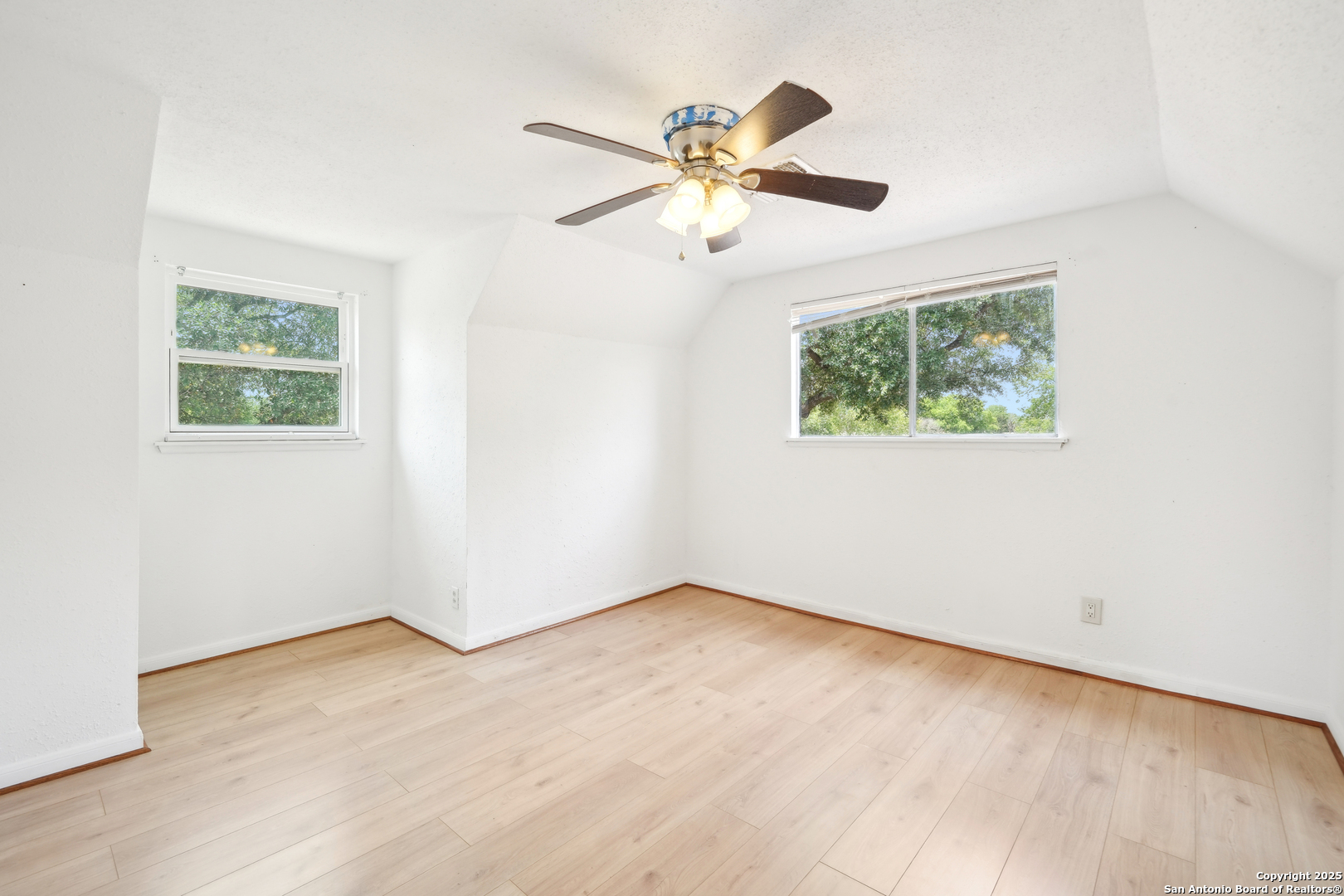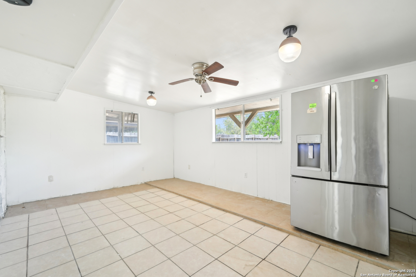 Charming and full of potential, this two-story home is located in the established community of East Terrell Hills. Offering three bedrooms, two bathrooms and a freshly painted interior, it provides a comfortable layout with room to grow. The main floor features a combined living and dining area, plus an additional versatile living space that could serve as a home office, or playroom. The kitchen includes gas cooking, and easy access to the backyard, making meal prep and entertaining a breeze. The primary bedroom and full bath are located on the first floor for added convenience, while the two secondary bedrooms are situated upstairs, offering privacy and separation. A large laundry and storage room adds extra functionality to the home. Step outside to a spacious backyard with a covered patio, mature trees, and a wide lawn-perfect for gatherings, play, or relaxing weekends. Conveniently close to shopping, dining, Fort Sam Houston, and I-410, this home offers both comfort and accessibility. Schedule your personal tour today.
