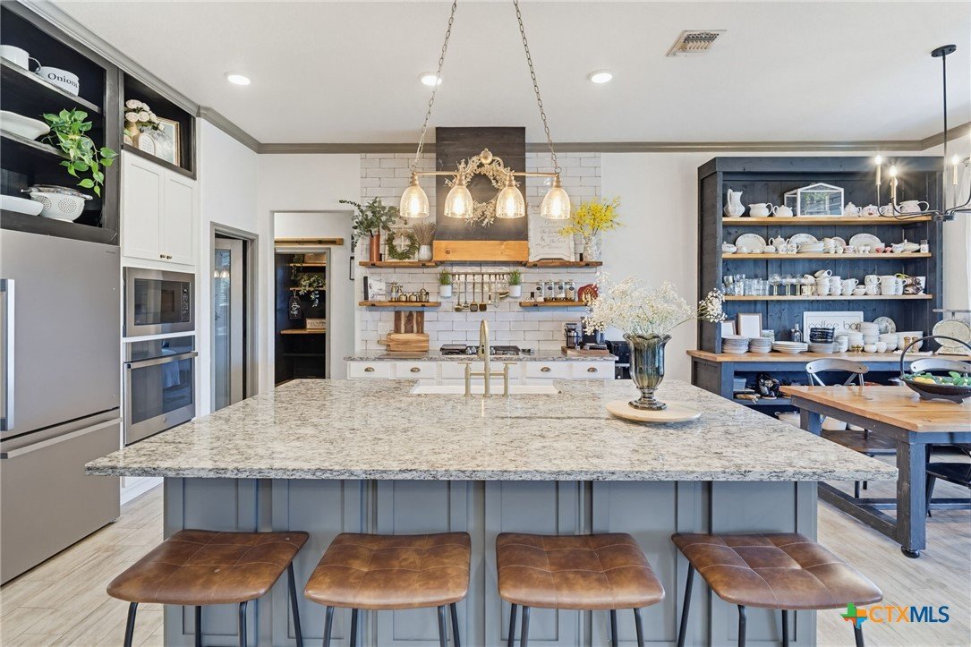 Located in the desirable Bella Charca neighborhood, this custom-built 4-bedroom, 3-bathroom home offers 2,500 square feet of thoughtfully designed living space on a spacious private lot. The open layout seamlessly connects the living room, kitchen, and dining areas, creating a natural gathering place for everyday living and entertaining. Large windows fill the home with natural light, highlighting the beauty of the private lot, the high ceilings, custom cabinetry, and quality finishes throughout. The private primary suite features a built-in fireplace with a spa feel, bathroom, and walk in closet. Step outside to your own backyard oasis, complete with a covered patio, outdoor kitchen, sprinkler system, and a beautiful pool, perfect for relaxing or hosting friends and family. With flexible space for home offices or guest rooms, a functional layout, and exceptional indoor and outdoor living, this home offers comfort, quality, and peace of mind in one of the area’s most established neighborhoods.