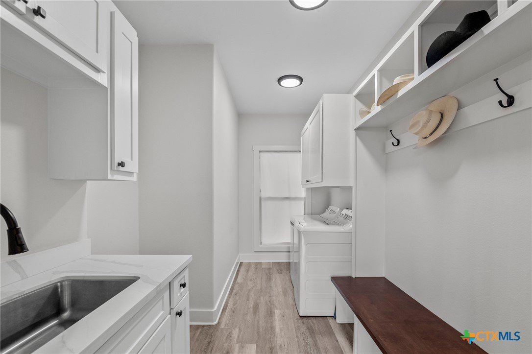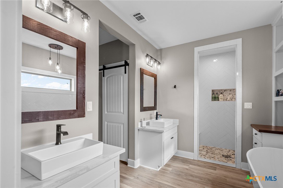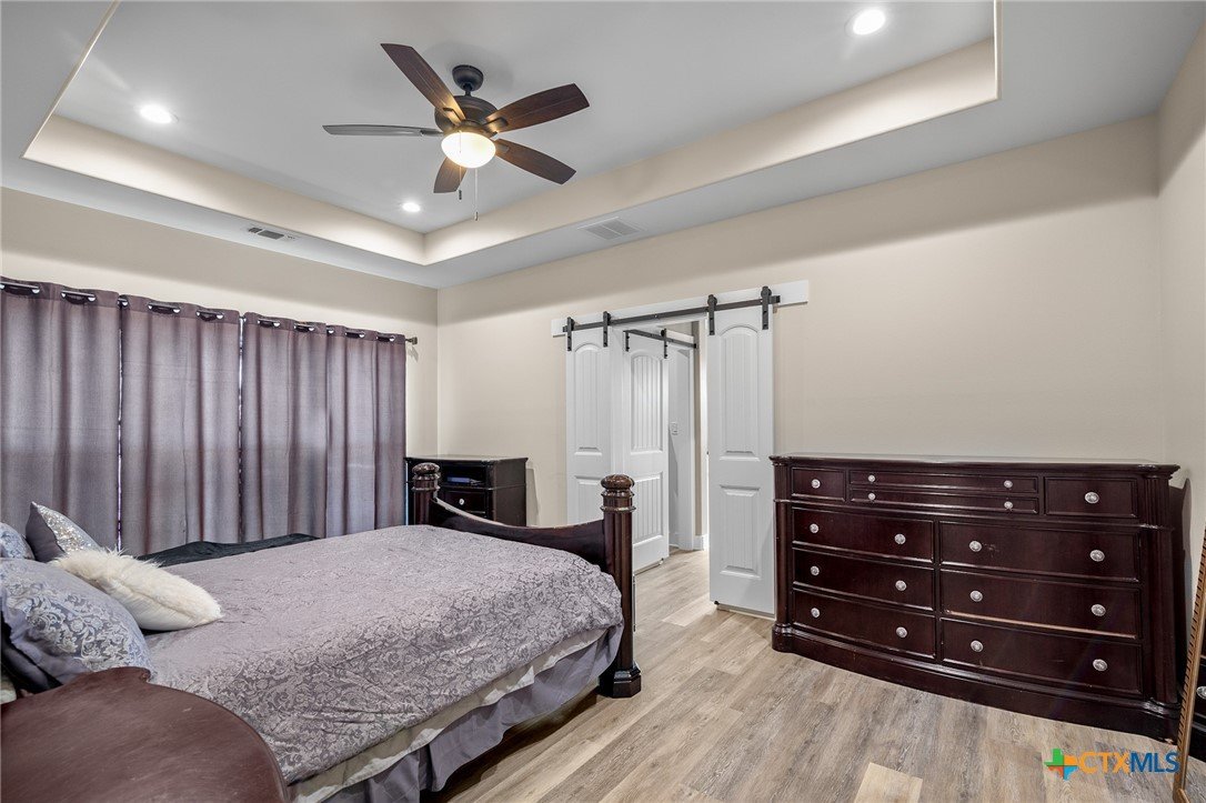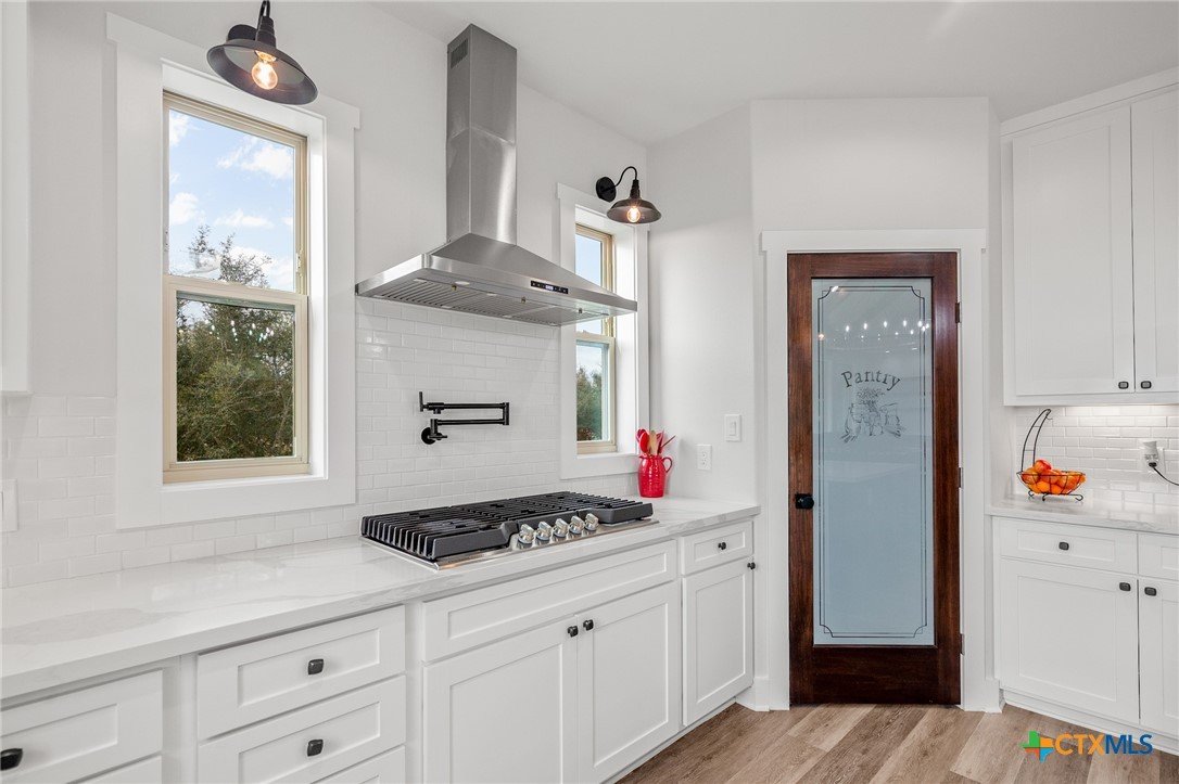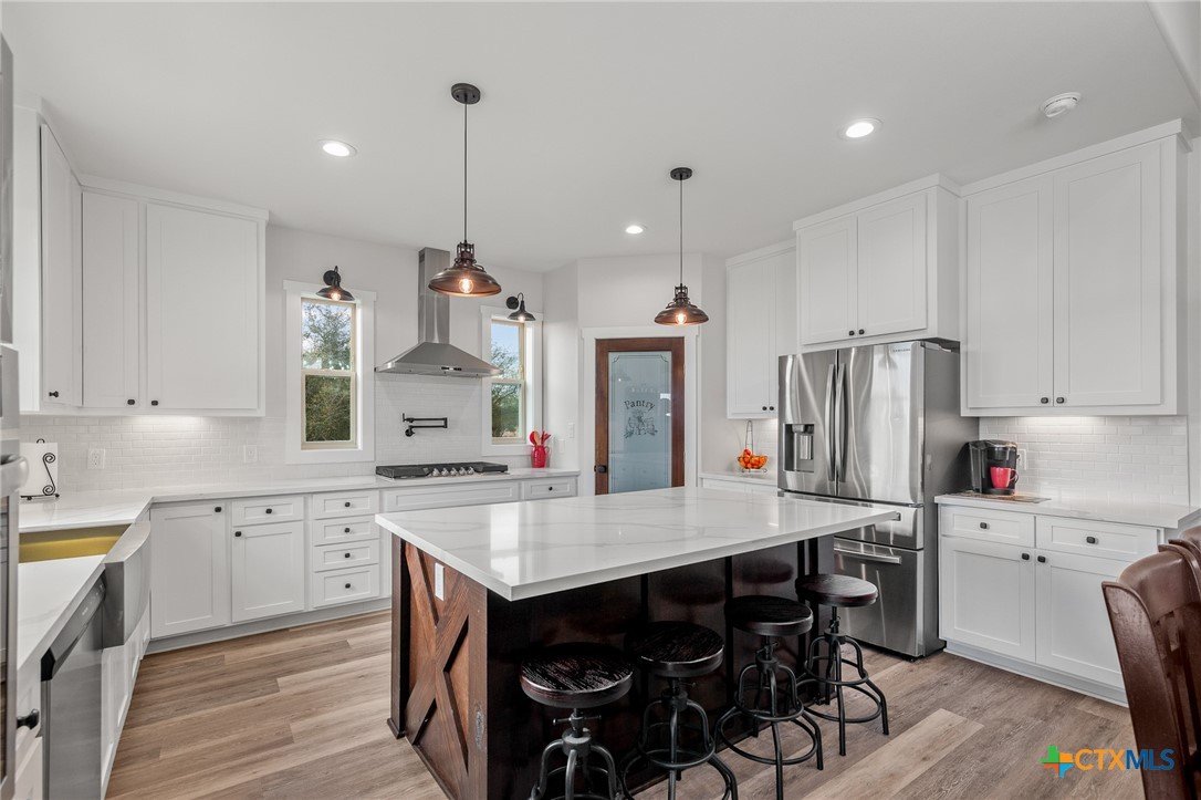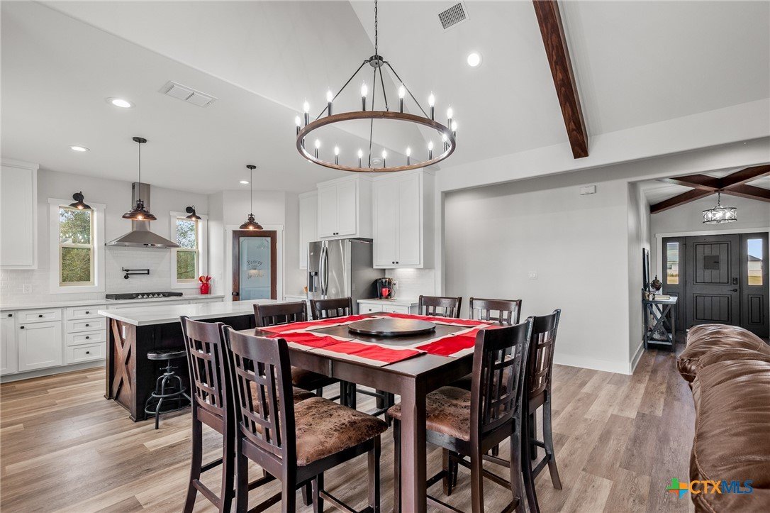 Beautiful 4-Bedroom Home on approximately 2.35 Acres in Fannin Texas, Goliad County! Just 20 minutes from Victoria, this stunning 4-bedroom, 3-bathroom home offers the perfect combination of modern amenities and serene country living. Designed with a thoughtful split floor plan, the home features vaulted ceilings accented by decorative wood beams and elegant wood details throughout. The spacious kitchen is equipped with custom cabinetry, under-cabinet lighting, quartz countertops, and a large island. High-quality stainless steel appliances include double ovens, gas stove with extendable pot filler, a dual-compartment deep sink, and a new dishwasher. The upstairs features a large second living area along with additional air conditioned space not included in square footage.The home also incorporates energy-efficient features such as spray foam insulation, energy-efficient windows, and a tankless on-demand water heater. Dual AC units with a dehumidifier and separate controls for upstairs and downstairs provide year-round comfort and efficiency. The home also includes a finished garage with insulated garage doors, a water softener system, and both hot and soft water exterior faucets, offering convenience for washing your car or bathing your pets. Attention to detail is evident throughout the construction, with over 25 piers and an investment of more than $15,000 in site soil to help with a solid foundation and long-term stability. The exterior of the home is finished with durable stone and James Hardi siding, ensuring low-maintenance living and lasting beauty. With such a huge spacious lot, this property offers plenty of room for relaxation, entertaining, or enjoying the quiet countryside.