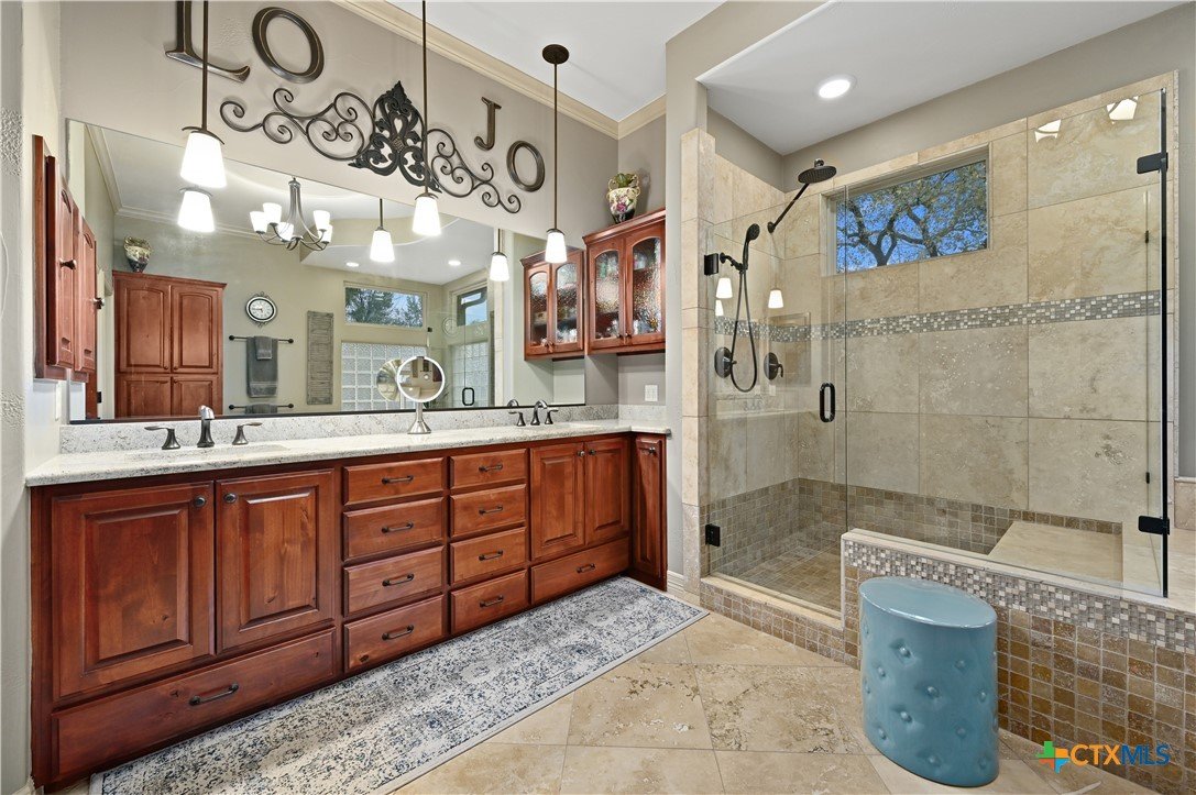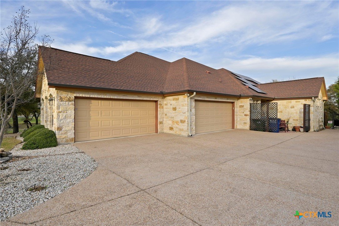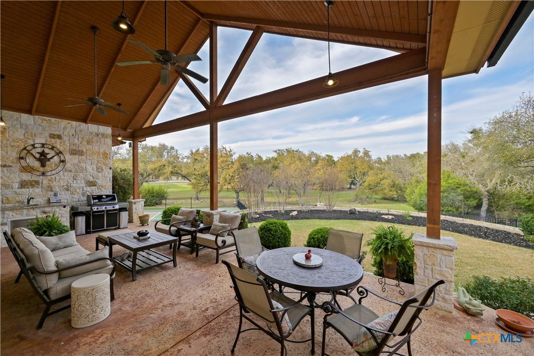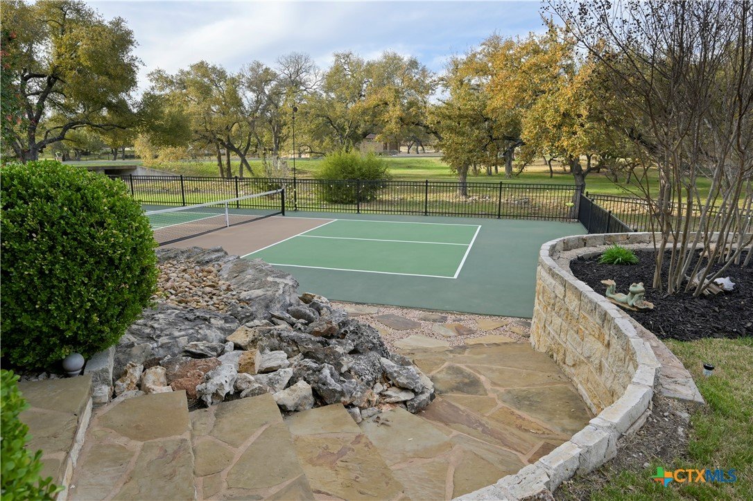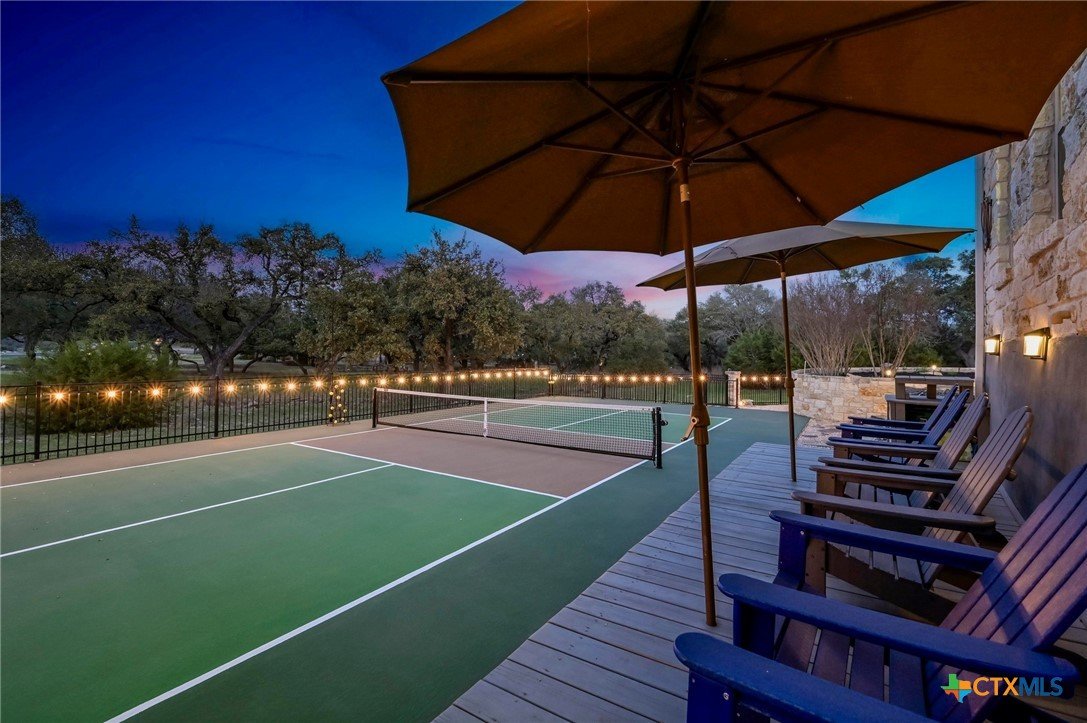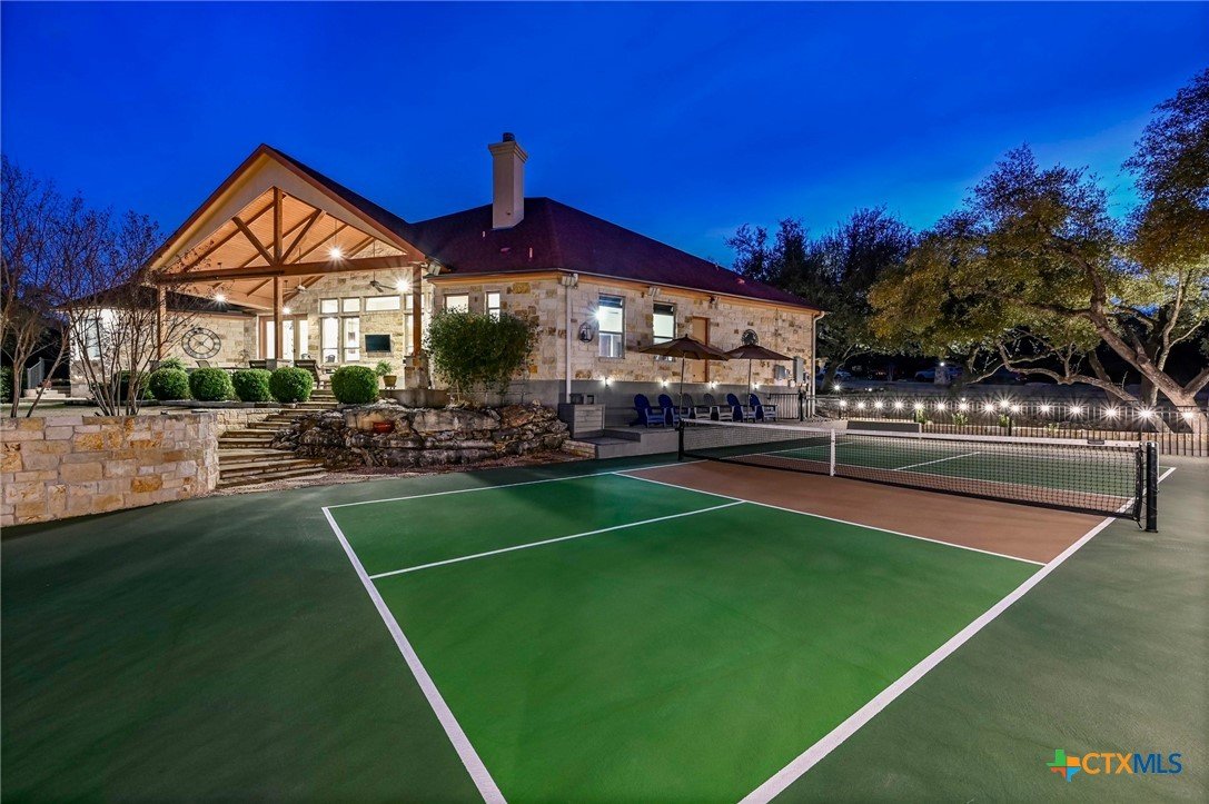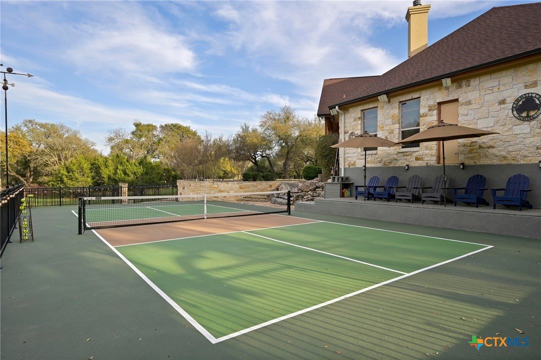 Perfectly placed on 1.3 acres of quiet, wooded serenity, this exquisite home is a true sanctuary—but the real showstopper? Your very own private pickleball court! Whether you're perfecting your serve, enjoying a friendly match, or hosting a tournament under the open sky, this court transforms your backyard into the ultimate recreation space.Mature trees surround the property, creating a private haven where luxury meets nature. Plus, with solar panels and a reverse osmosis system, you’ll enjoy energy efficiency and pure water. Step inside to soaring ceilings, expansive windows, and an open floor plan bathed in natural light. The spacious living room features a floor-to-ceiling stone fireplace and breathtaking backyard views. A gourmet kitchen boasts granite countertops, a large island, rich stained wood cabinetry with pullout drawers, stainless steel appliances, & a walk-in pantry.Retreat to the primary suite, where a private balcony invites you to unwind. The spa-like ensuite bathroom is positively palatial, with a generous closet to match. Three additional bedrooms provide versatility—one with beamed ceilings and backyard access, another with an ensuite bath, perfect for guests or a home office.Step outside to an entertainer’s dream. After a competitive match or a casual game on the pickleball court, cool off in the outdoor shower, tucked away for privacy. The expansive covered patio with an outdoor kitchen is perfect for post-game refreshments, while the fire pit sets the scene for evening gatherings. Beyond the court, lush landscaping, mature trees, & no backyard neighbors create a peaceful, natural escape.An oversized 4-car garage with a workshop ensures ample space for vehicles, hobbies, and storage. With luxury finishes, thoughtful design, and unparalleled outdoor amenities, this home offers the perfect balance of seclusion, recreation, and sophistication. Backs up to large ~5-acre tracts—what you see is how it will be! SO MANY MORE PHOTOS IN THE VIRTUAL TOUR!