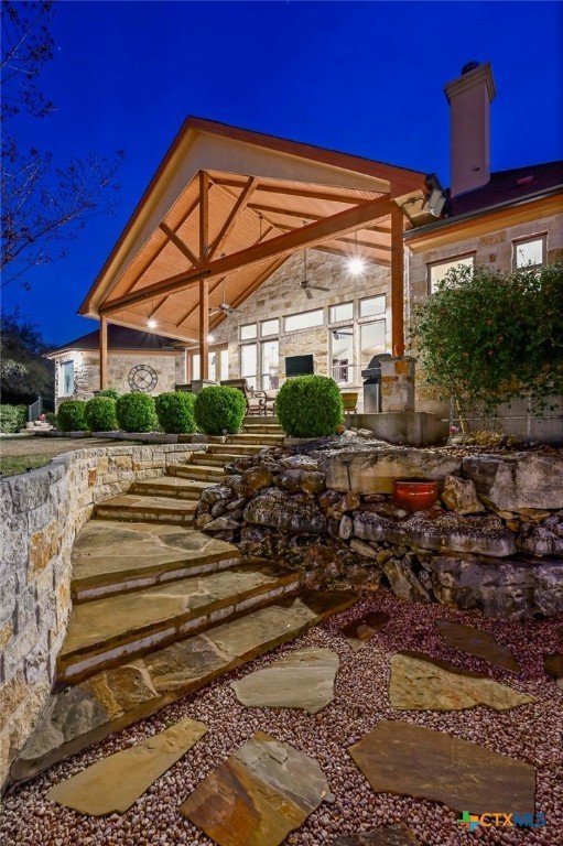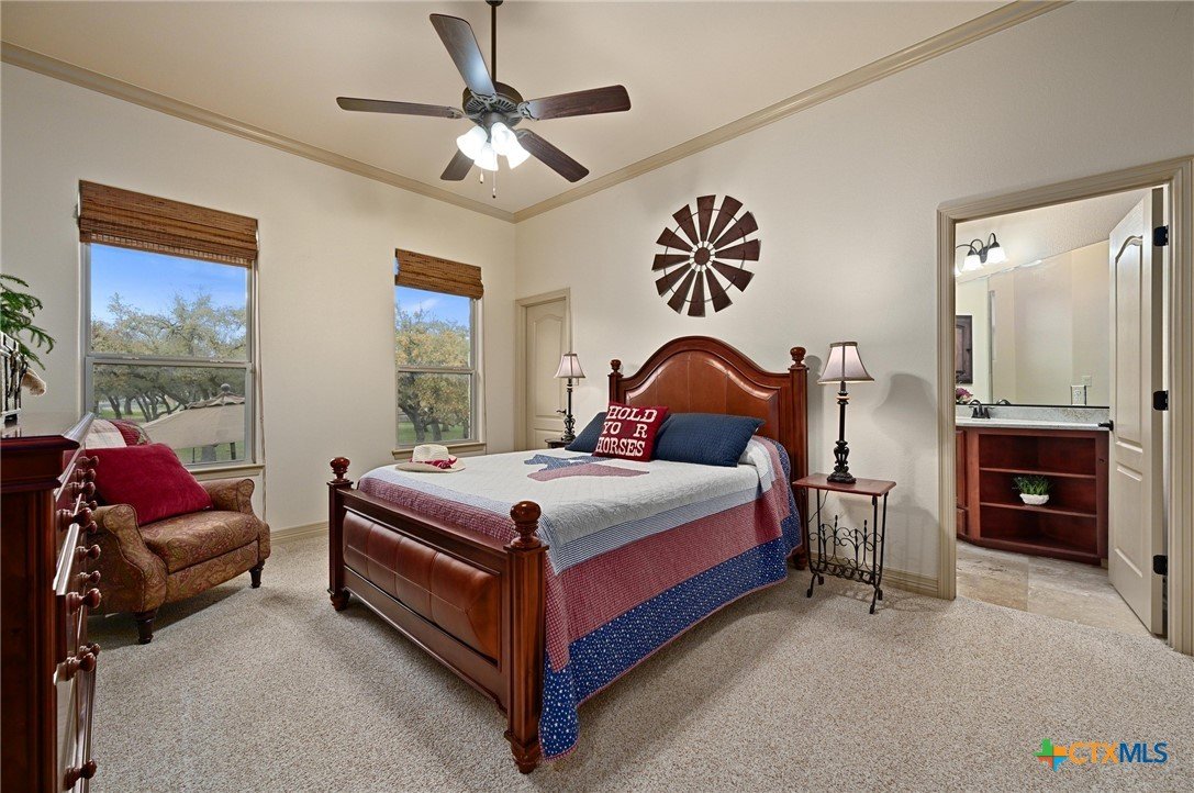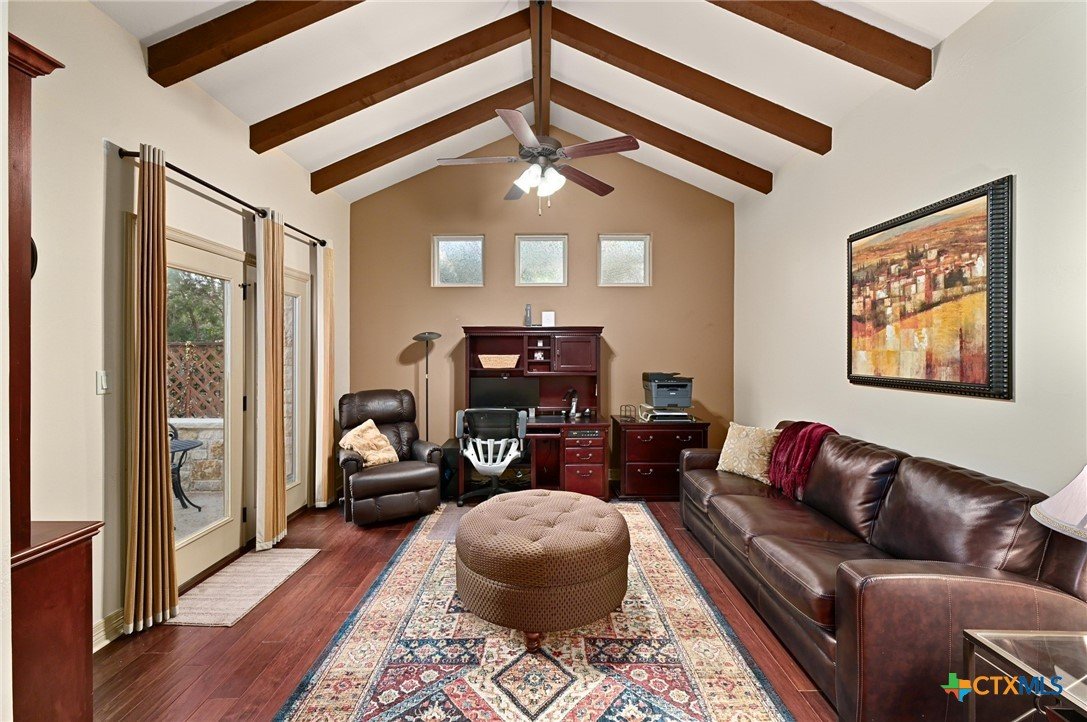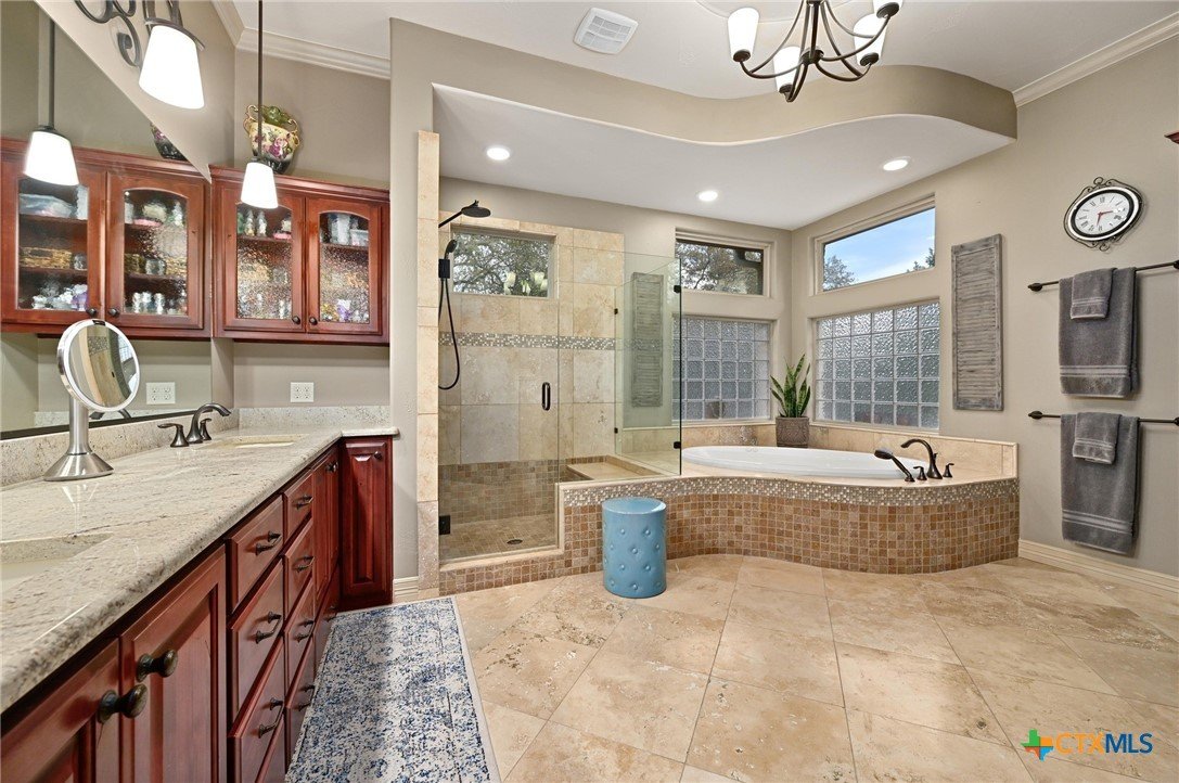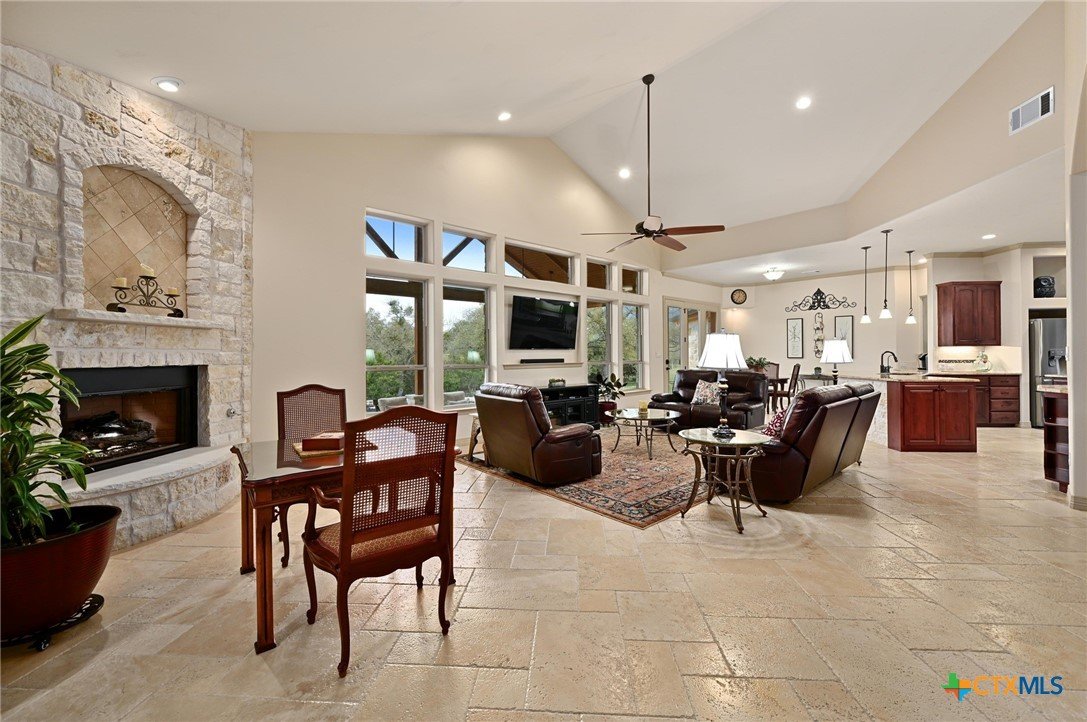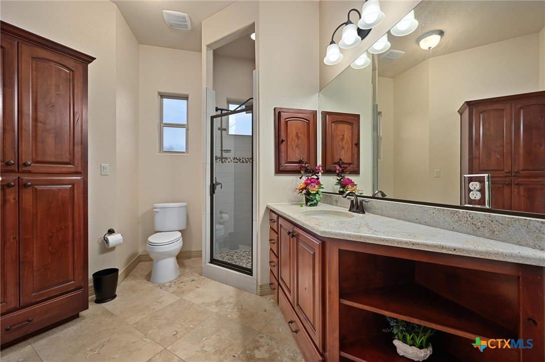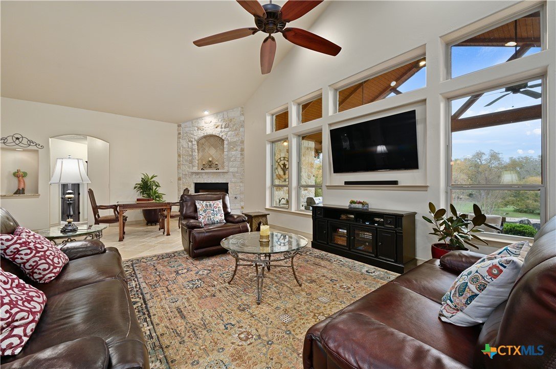 Perfectly placed on 1.3 acres of quiet, wooded serenity, this exquisite home is a true sanctuary—but the real showstopper? Your very own private pickleball court! Whether you're perfecting your serve, enjoying a friendly match, or hosting a tournament under the open sky, this court transforms your backyard into the ultimate recreation space.Mature trees surround the property, creating a private haven where luxury meets nature. Plus, with solar panels and a reverse osmosis system, you’ll enjoy energy efficiency and pure water. Step inside to soaring ceilings, expansive windows, and an open floor plan bathed in natural light. The spacious living room features a floor-to-ceiling stone fireplace and breathtaking backyard views. A gourmet kitchen boasts granite countertops, a large island, rich stained wood cabinetry with pullout drawers, stainless steel appliances, & a walk-in pantry.Retreat to the primary suite, where a private balcony invites you to unwind. The spa-like ensuite bathroom is positively palatial, with a generous closet to match. Three additional bedrooms provide versatility—one with beamed ceilings and backyard access, another with an ensuite bath, perfect for guests or a home office.Step outside to an entertainer’s dream. After a competitive match or a casual game on the pickleball court, cool off in the outdoor shower, tucked away for privacy. The expansive covered patio with an outdoor kitchen is perfect for post-game refreshments, while the fire pit sets the scene for evening gatherings. Beyond the court, lush landscaping, mature trees, & no backyard neighbors create a peaceful, natural escape.An oversized 4-car garage with a workshop ensures ample space for vehicles, hobbies, and storage. With luxury finishes, thoughtful design, and unparalleled outdoor amenities, this home offers the perfect balance of seclusion, recreation, and sophistication. Backs up to large ~5-acre tracts—what you see is how it will be! SO MANY MORE PHOTOS IN THE VIRTUAL TOUR!