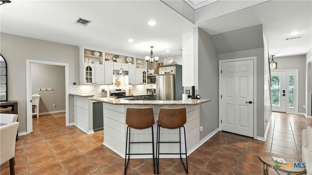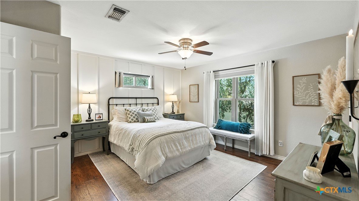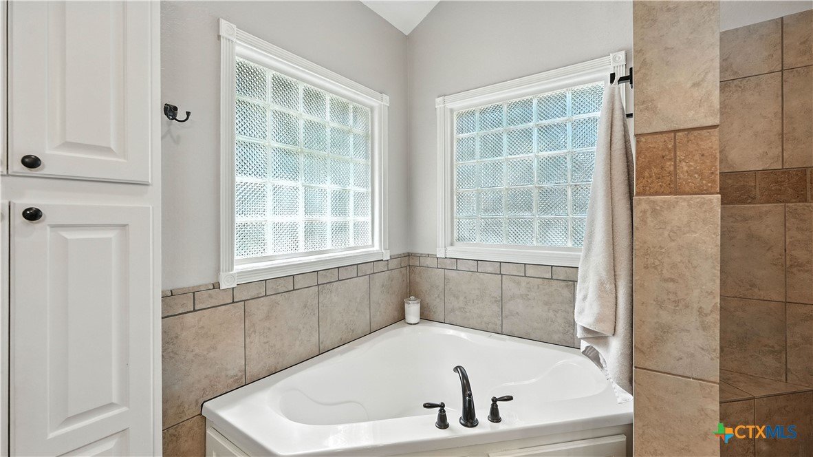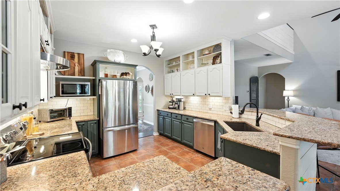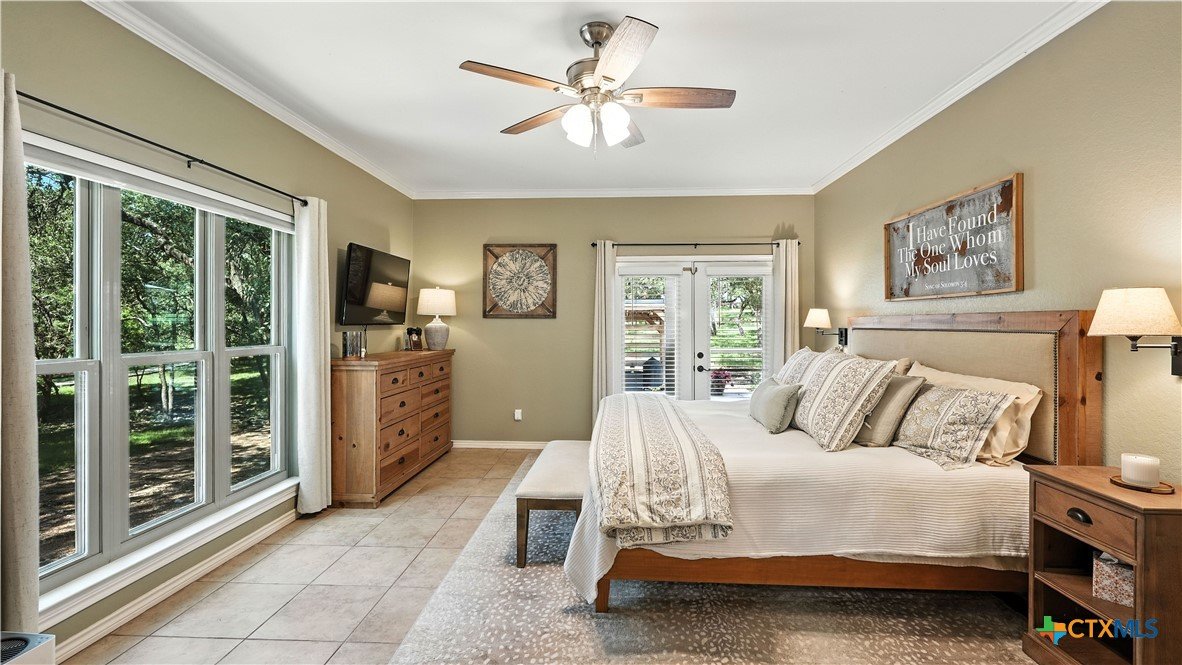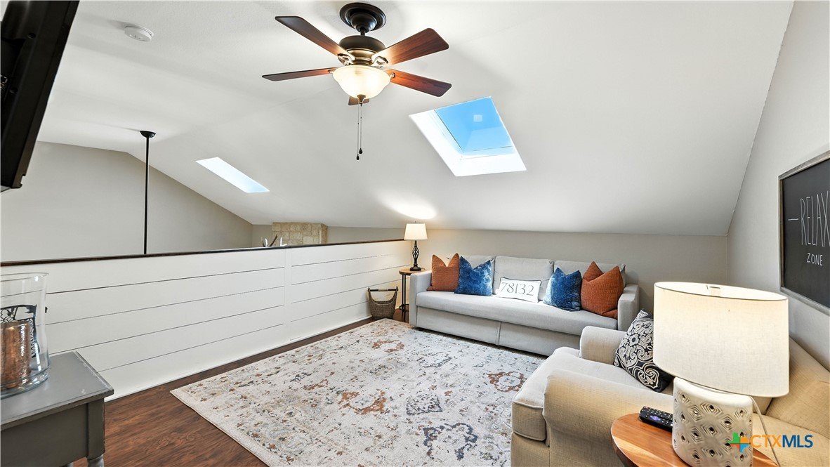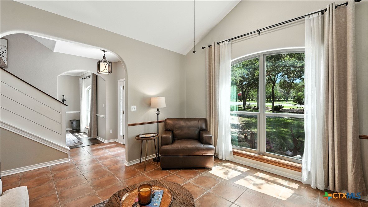 Welcome to this beautifully updated home in the highly desirable Pinnacle community! From the moment you step into the inviting main living area, you're greeted by a stunning floor-to-ceiling stone fireplace and an abundance of natural light streaming through large windows, creating a warm and welcoming atmosphere. The updated eat-in kitchen is perfect for both daily living and entertaining, featuring granite countertops, stainless steel appliances, and ample cabinet space. A formal dining room offers a touch of elegance, while the home study/office provides a quiet retreat for remote work or reading. The spacious primary suite is a true sanctuary with rich wood flooring, patio doors leading to the outdoor oasis, multiple closets, and a large en suite bath complete with a soaking tub, separate shower, and double vanities. Upstairs, enjoy a bright open loft family room, two generously sized bedrooms, and a full bath. A split-bedroom design includes an additional 14'x10' climate-controlled flex room-ideal for holiday decor storage, a hobby room, or creative studio. Step outside to a thoughtfully designed outdoor living area, recently updated with a low-maintenance composite deck, multiple seating areas, roller shades, a cabana with TV, and a charming flagstone walkway-perfect for hosting or unwinding. Notable updates include permanent LED holiday lights (app-controlled), spray foam insulation added at the garage, interior lighting upgrades, exterior stucco painted, new windows (2021), and metal roof (2019). Additional features include water softener, gutters, irrigation system, and storage shed. Nestled on a serene, 1 acre wooded lot, this property offers plenty of mature trees for privacy and shade, along with a picturesque dry weather creek that adds charm and a peaceful, natural backdrop to the outdoor living space. All of this is offered below the 2023 appraisal value - move-in ready home in one of the area's most desirable neighborhoods.