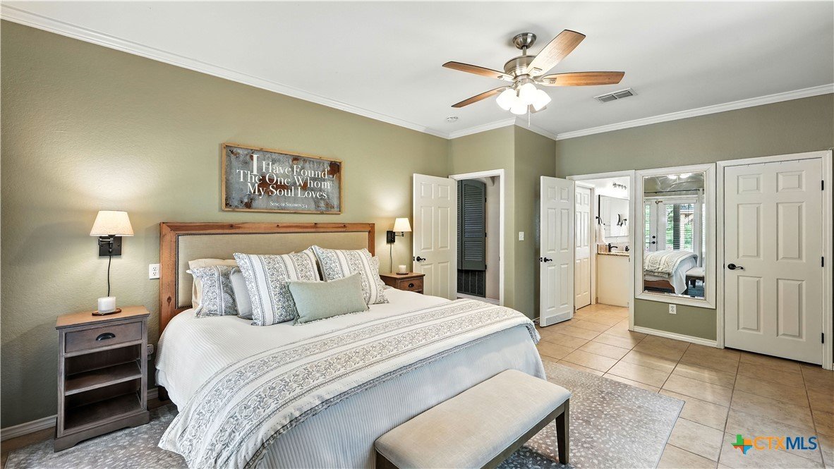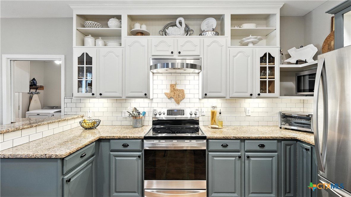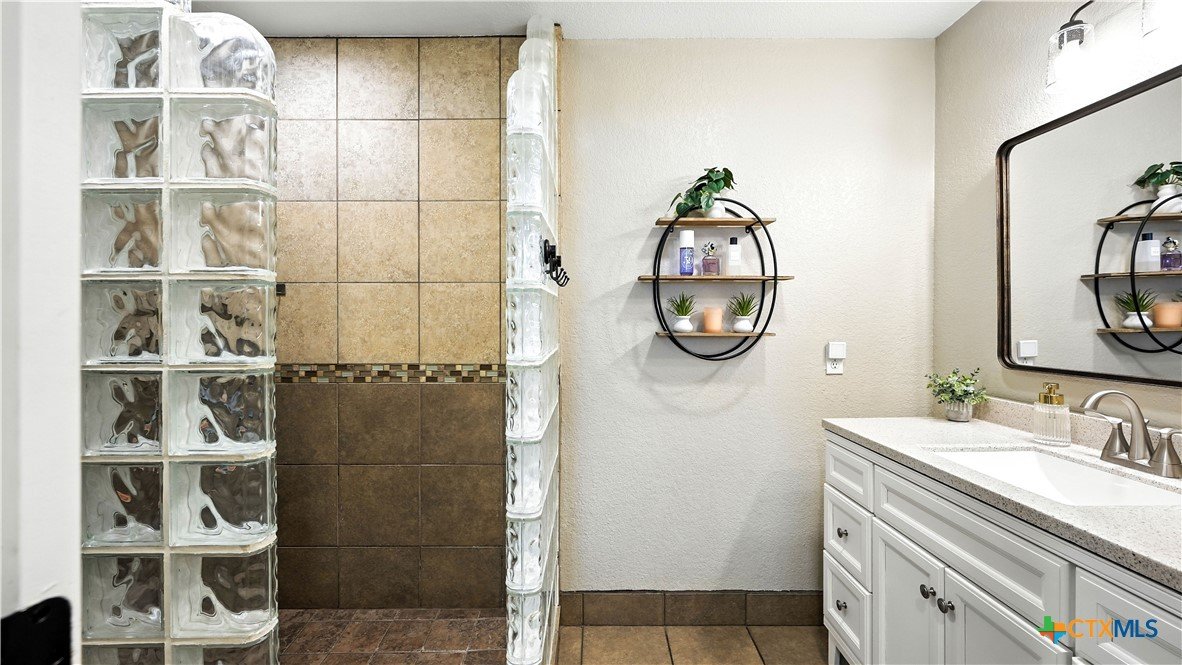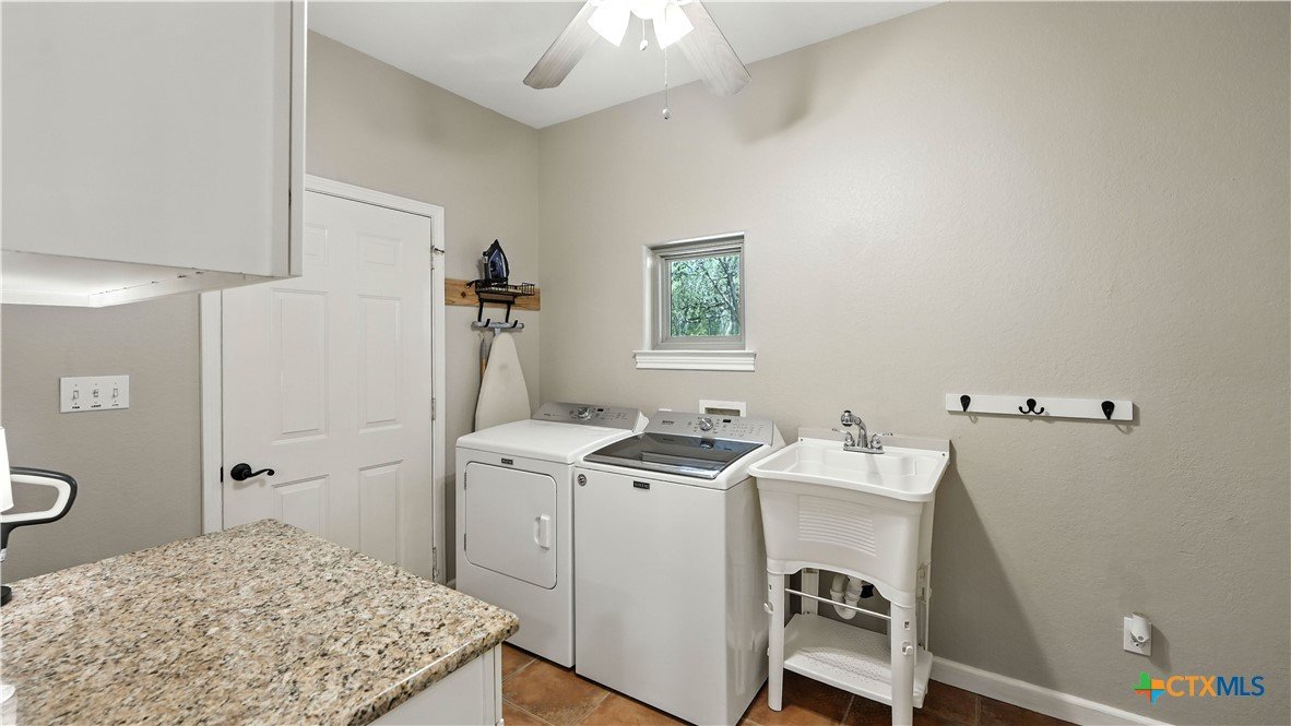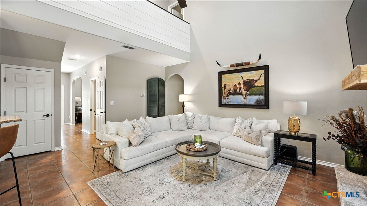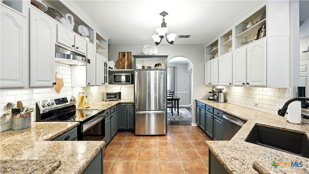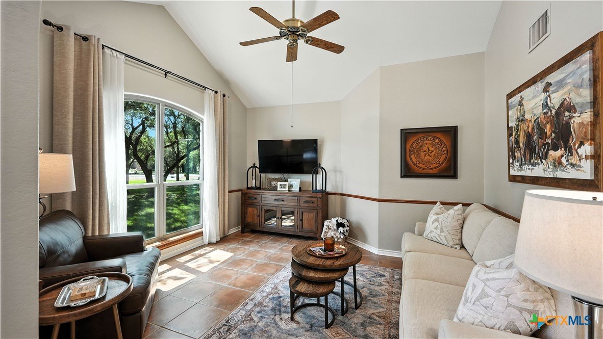 Welcome to this beautifully updated home in the highly desirable Pinnacle community! From the moment you step into the inviting main living area, you're greeted by a stunning floor-to-ceiling stone fireplace and an abundance of natural light streaming through large windows, creating a warm and welcoming atmosphere. The updated eat-in kitchen is perfect for both daily living and entertaining, featuring granite countertops, stainless steel appliances, and ample cabinet space. A formal dining room offers a touch of elegance, while the home study/office provides a quiet retreat for remote work or reading. The spacious primary suite is a true sanctuary with rich wood flooring, patio doors leading to the outdoor oasis, multiple closets, and a large en suite bath complete with a soaking tub, separate shower, and double vanities. Upstairs, enjoy a bright open loft family room, two generously sized bedrooms, and a full bath. A split-bedroom design includes an additional 14'x10' climate-controlled flex room-ideal for holiday decor storage, a hobby room, or creative studio. Step outside to a thoughtfully designed outdoor living area, recently updated with a low-maintenance composite deck, multiple seating areas, roller shades, a cabana with TV, and a charming flagstone walkway-perfect for hosting or unwinding. Notable updates include permanent LED holiday lights (app-controlled), spray foam insulation added at the garage, interior lighting upgrades, exterior stucco painted, new windows (2021), and metal roof (2019). Additional features include water softener, gutters, irrigation system, and storage shed. Nestled on a serene, 1 acre wooded lot, this property offers plenty of mature trees for privacy and shade, along with a picturesque dry weather creek that adds charm and a peaceful, natural backdrop to the outdoor living space. All of this is offered below the 2023 appraisal value - move-in ready home in one of the area's most desirable neighborhoods.