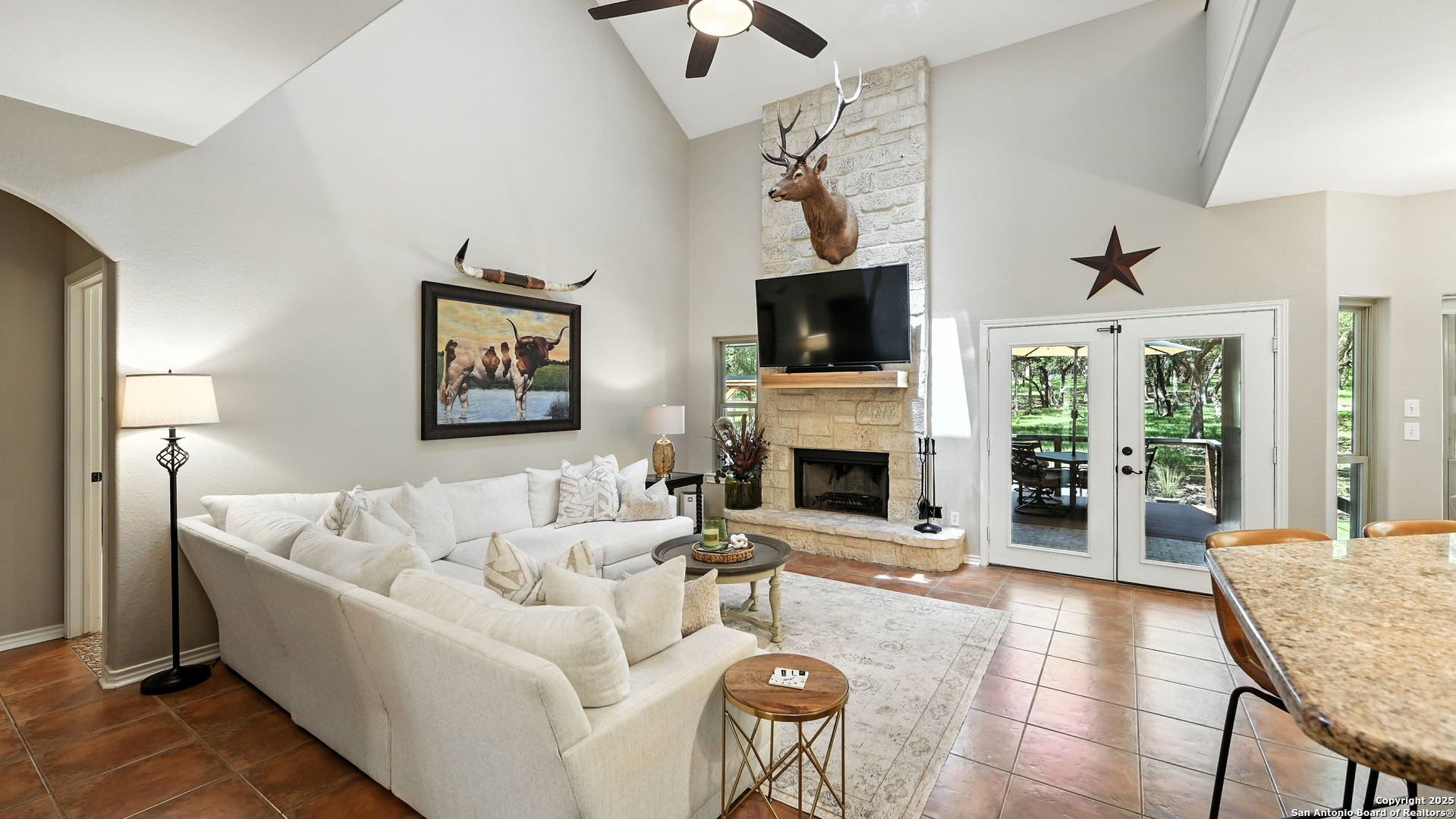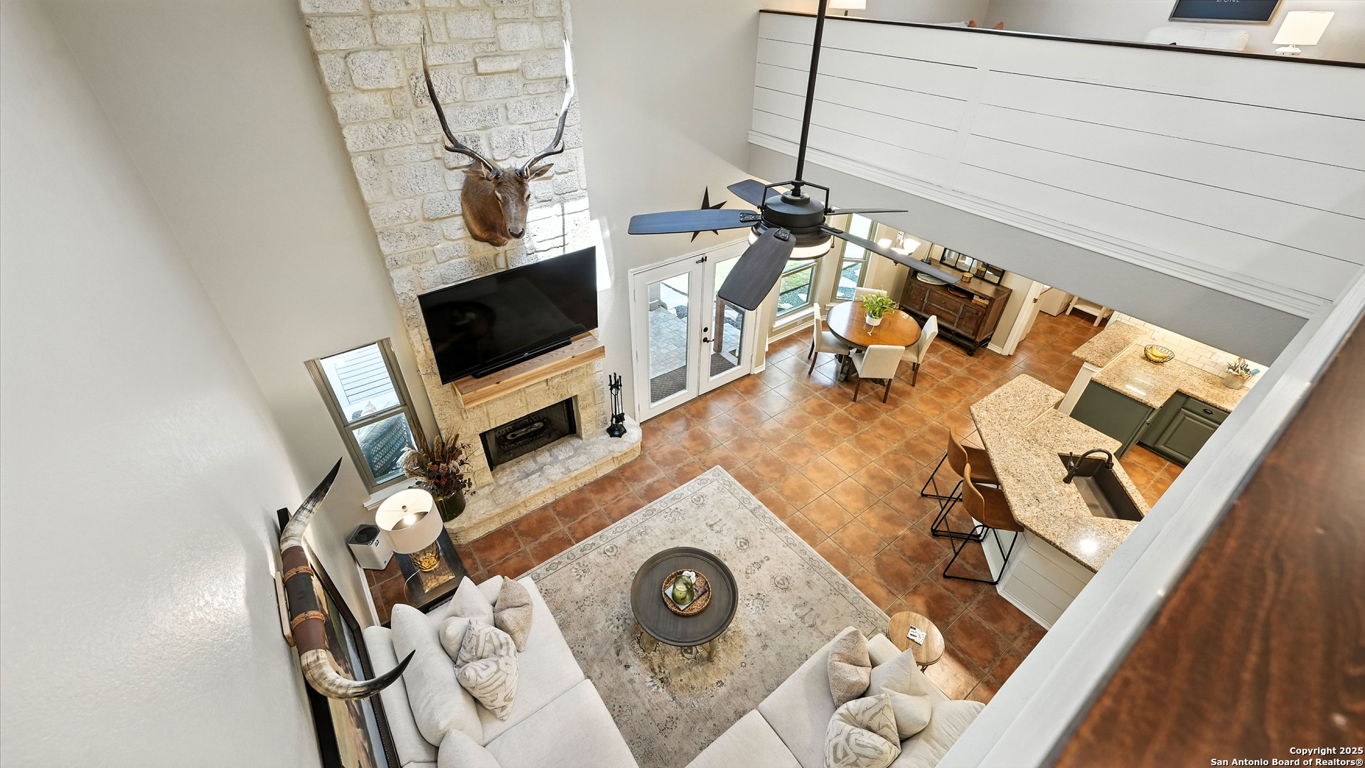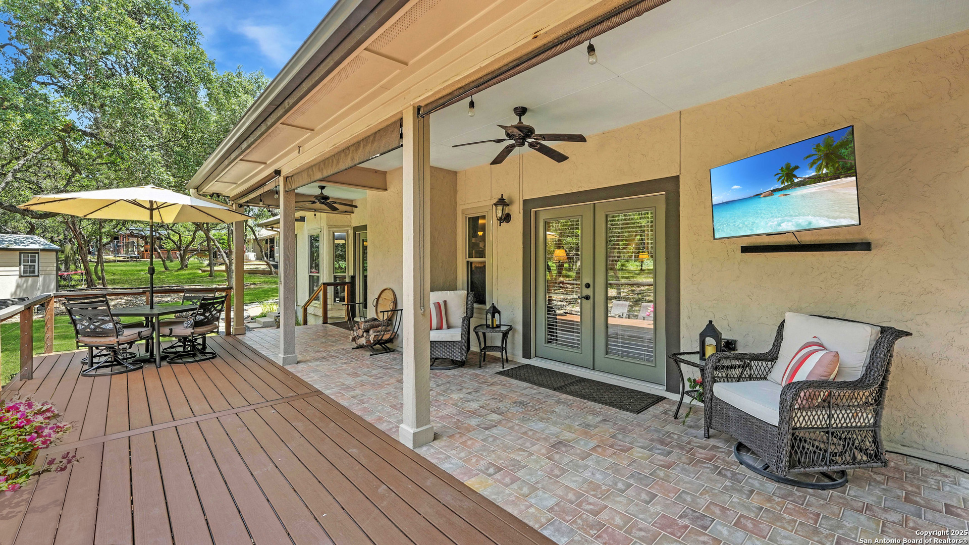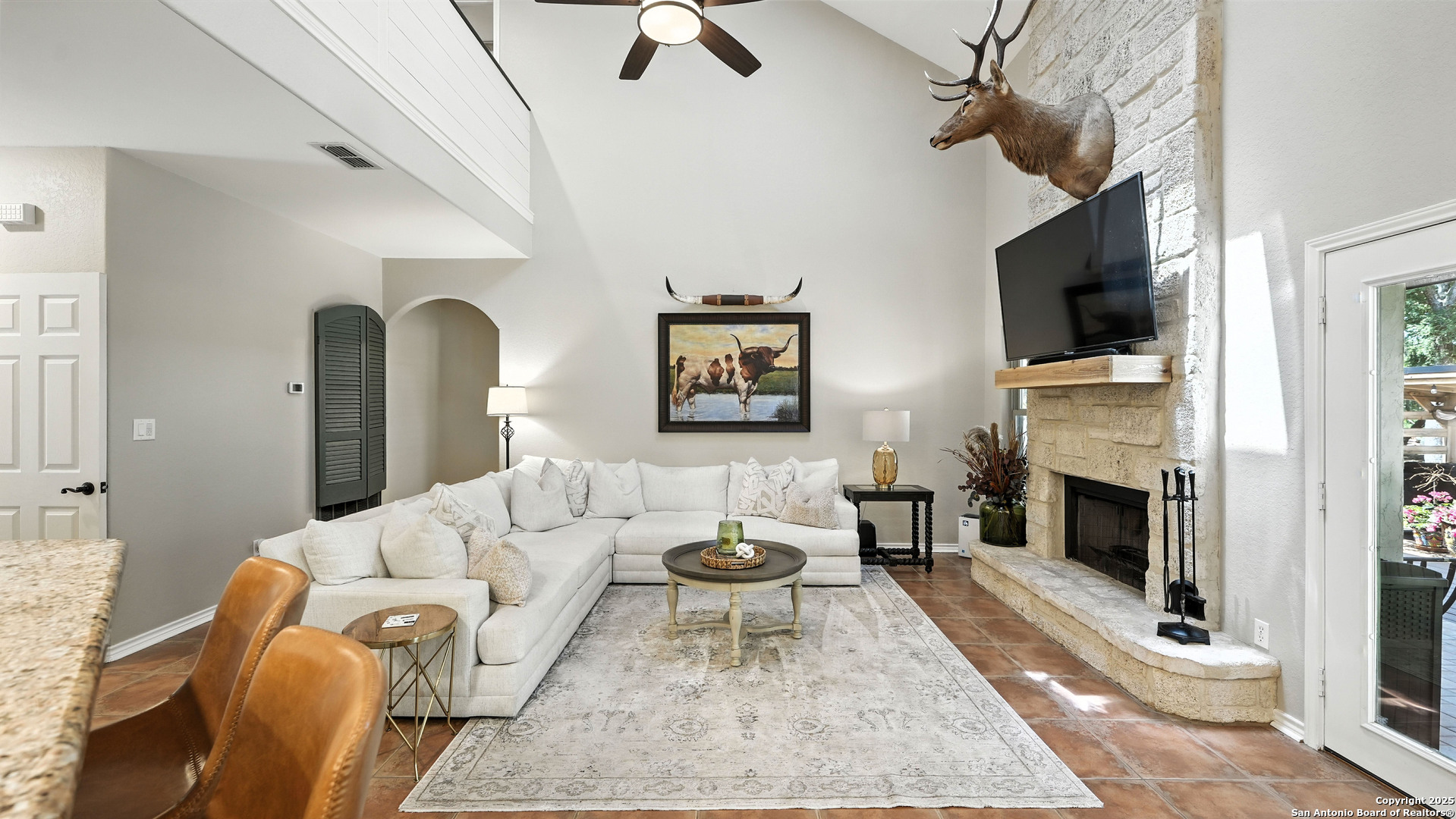 Welcome to this beautifully updated home nestled in the highly desirable Pinnacle community! From the moment you step into the inviting main living area, you're greeted by a stunning floor-to-ceiling stone fireplace and an abundance of natural light streaming through large windows, creating a warm and welcoming atmosphere. The updated eat-in kitchen is perfect for both daily living and entertaining, featuring granite countertops, stainless steel appliances, and ample cabinet space. A formal dining room offers a touch of elegance, while the home study/office provides a quiet retreat for remote work or reading. The spacious primary suite is a true sanctuary with rich wood flooring, patio doors leading to the outdoor oasis, multiple closets, and a large en suite bath complete with a soaking tub, separate shower, and double vanities. Upstairs, enjoy a bright open loft family room, two generously sized bedrooms, and a full bath. A split-bedroom design includes an additional 14'x10' climate-controlled bonus room-ideal for holiday decor storage, a hobby room, or creative studio. Step outside to a thoughtfully designed outdoor living area, recently updated with a low-maintenance composite deck, multiple seating areas, roller shades, a cabana with TV, and a charming flagstone walkway-perfect for hosting or unwinding. Notable updates include permanent LED holiday lights (app-controlled), spray foam insulation added at the garage, interior lighting upgrades, exterior stucco painted, new windows (2021), and metal roof (2019). Additional features include water softener, gutters, irrigation system, and storage shed. Nestled on a serene, 1 acre wooded lot, this property offers plenty of mature trees for privacy and shade, along with a picturesque dry weather creek that adds charm and a peaceful, natural backdrop to the outdoor living space. All of this is offered below the 2023 appraisal value-a fantastic opportunity to own a thoughtfully maintained, move-in ready home in one of the area's most desirable neighborhoods. Don't miss your chance to experience the perfect blend of charm, comfort, and modern updates. Schedule your private tour today!