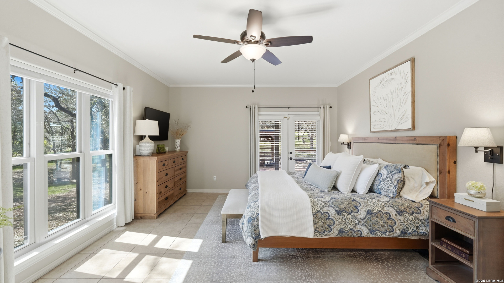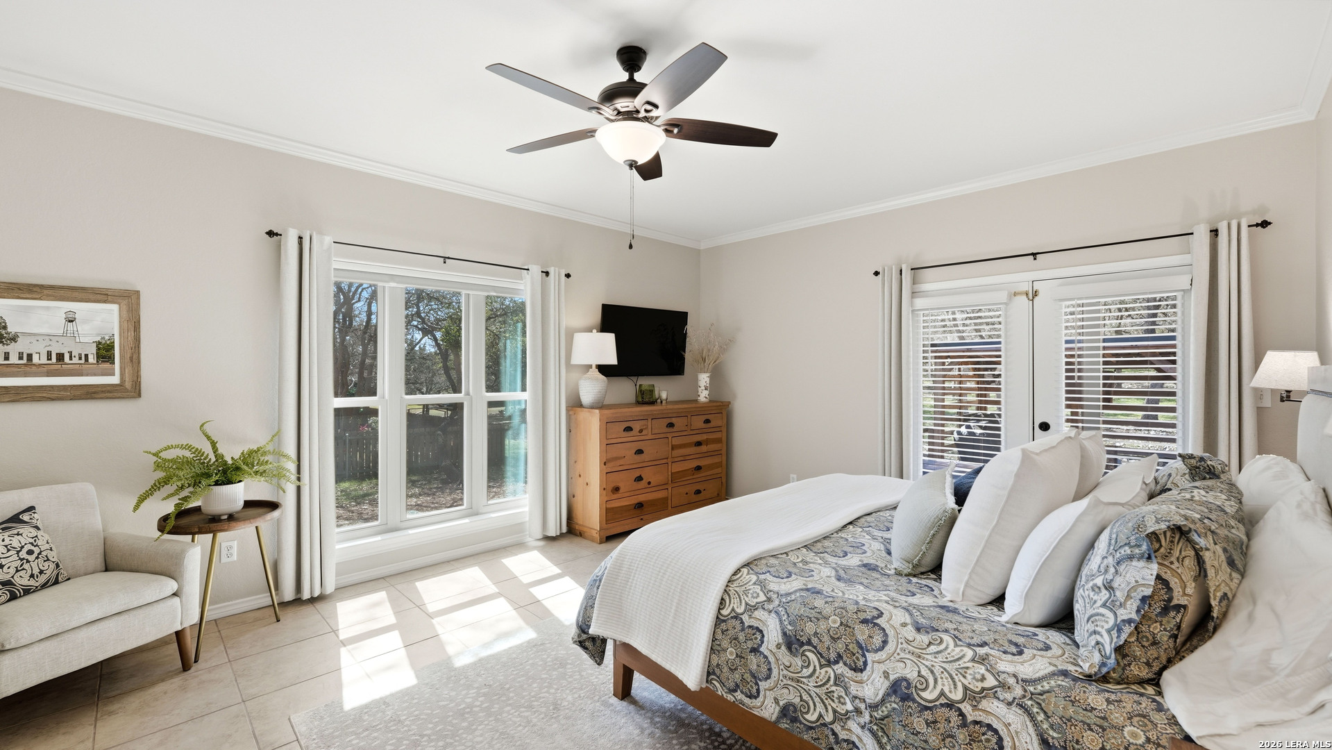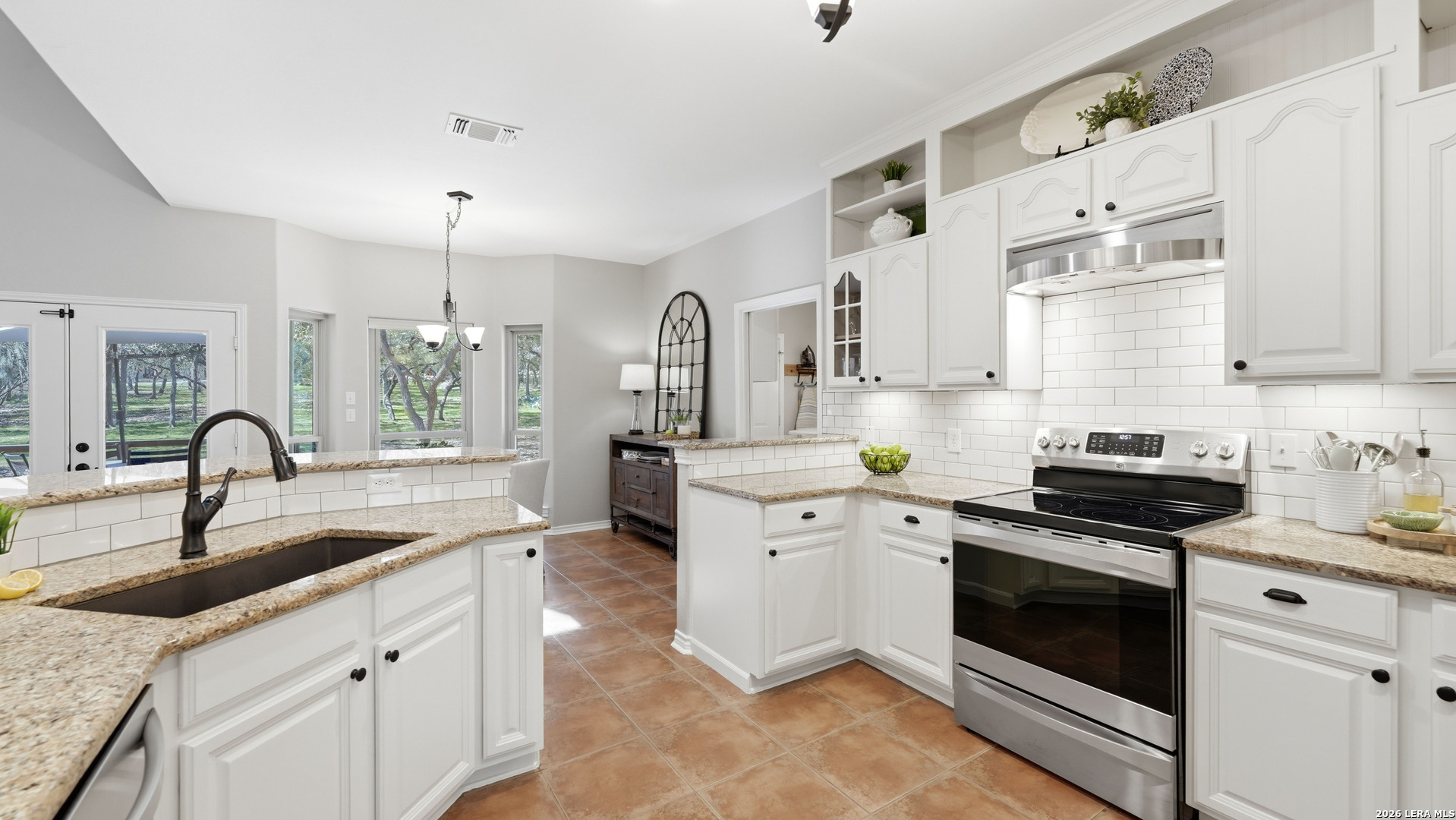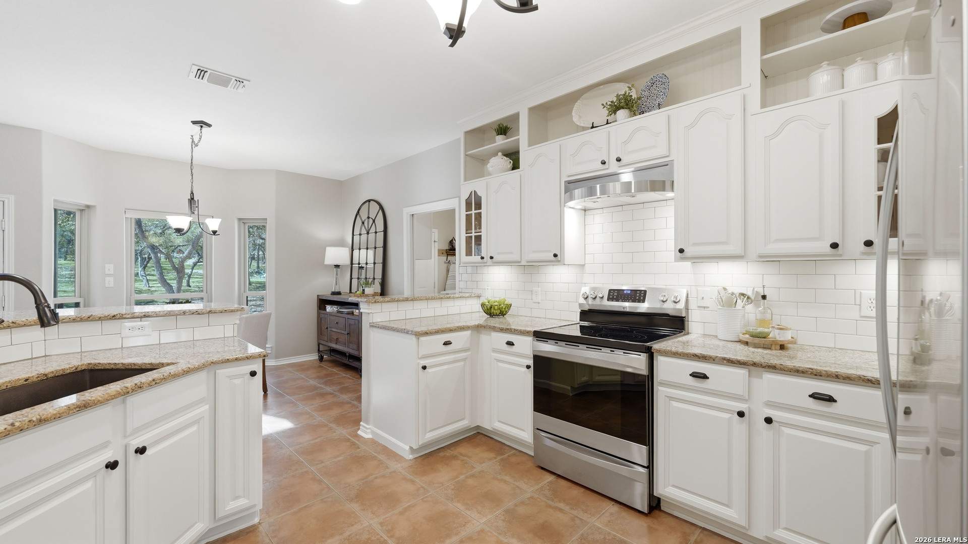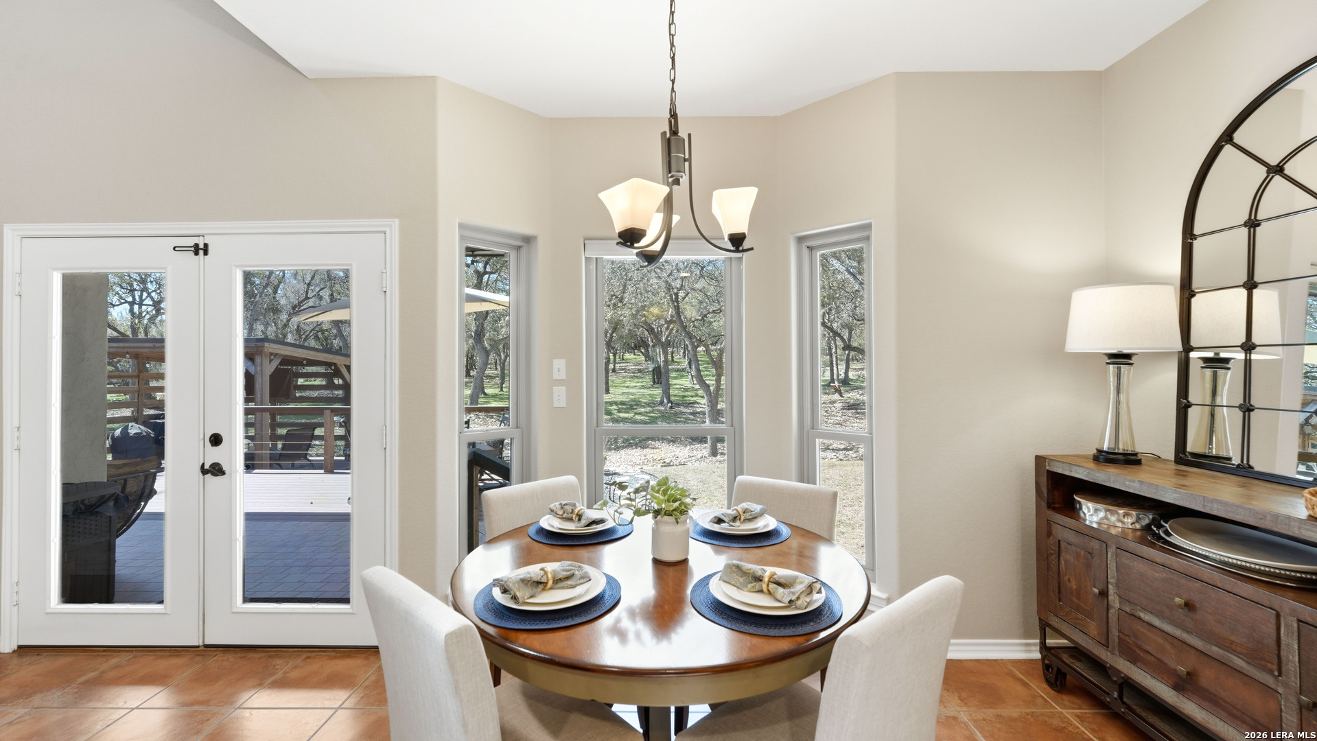 Welcome to this beautifully updated home nestled on a serene one-acre wooded lot in the highly desirable Pinnacle community! From the moment you step inside, the inviting main living area showcases a stunning floor-to-ceiling stone fireplace and large windows that fill the home with natural light, creating a warm and welcoming atmosphere. The updated eat-in kitchen is perfect for everyday living and entertaining, featuring granite countertops, stainless steel appliances, and abundant cabinet space. A formal dining room adds a touch of elegance, while the dedicated study provides the ideal space for working from home or quiet reading. The spacious primary suite serves as a true retreat with rich wood flooring, multiple closets, and private patio access leading to the outdoor living area. The en-suite bath offers a relaxing soaking tub and plenty of space to unwind. The split-bedroom design provides added privacy and includes an upstairs retreat featuring a secondary living area, two bedrooms, a full bath, and a 14' x 10' climate-controlled bonus room ideal for holiday storage, crafts, or hobbies. Step outside to a thoughtfully designed outdoor oasis featuring a low-maintenance composite deck, multiple seating areas, roller shades, a cabana with TV, and a charming flagstone walkway - perfect for entertaining or relaxing under the shade of mature trees. Recent updates include new windows (2021), metal roof (2019), exterior stucco paint, interior paint and lighting upgrades, spray foam insulation in the garage, and permanent app-controlled LED holiday lighting. Additional features include a water softener, irrigation system, gutters, and storage shed. The picturesque dry-weather creek and abundance of mature trees create a peaceful natural setting while still being conveniently located near shopping, dining, and schools. Offered well below the 2023 lender-appraised value, this move-in ready home presents an exceptional opportunity in one of the area's most sought-after neighborhoods. Schedule your private tour today and experience the perfect blend of Hill Country charm, comfort, and modern updates.