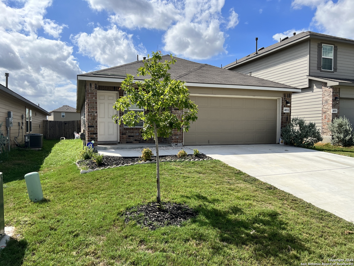 Owner financing available. Features include a bright and open floor plan, perfect for gatherings and entertaining guests. Welcome home to a modern single-story residence built in 2020, nestled in the peaceful community of Cobalt Canyon in Saint Hedwig. Step into an open-concept living space where the living room flows easily into the kitchen and dining area-ideal for both everyday living and entertaining. The home showcases luxury vinyl flooring in high-traffic "wet" zones for durability, while bedrooms are carpeted for comfort. The kitchen is a highlight: sleek granite countertops, stainless appliances, and a well-designed workspace make it a true functional centerpiece. The primary bedroom includes a walk-in closet and its own full bath with a vanity setup. This home is built with four-sided brick masonry and sits on a slab foundation. The windows are low-emissivity (Low E), and LED lighting is used throughout, which helps keep energy costs down and contributes to a more comfortable, climate-controlled interior. Outside, you'll find a two-car garage and the lot size gives you ample outdoor room without too much upkeep-ideal for relaxation, a small garden, or a play area. Locationwise, you're just minutes from major corridors (IH-10 & 1604 or IH-35) and about 7 minutes from Randolph AFB or Ft. Sam-easy commuting in either direction whether you're heading into San Antonio or out toward Austin. A nearly new home (built in 2020) that combines modern upgrade features with practical layout. Smart floor-plan: one level, no stairs, which adds accessibility and ease. Energy-efficient touches and durable finishes throughout. Country-like setting with the convenience of suburban access. Ideal for a range of buyers: first-time homeowner, military/affiliates needing proximity, or anyone seeking a manageable yard and strong value.