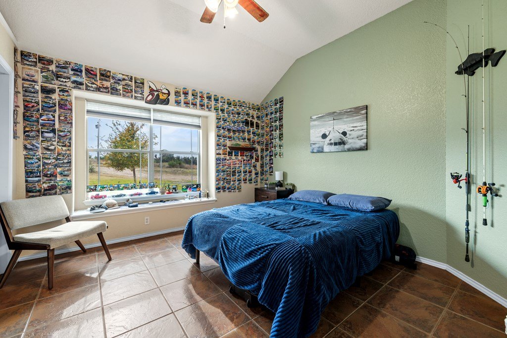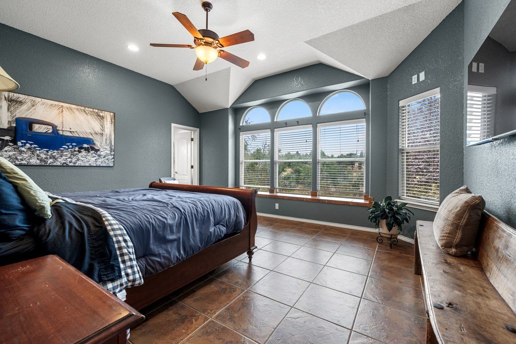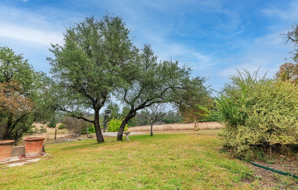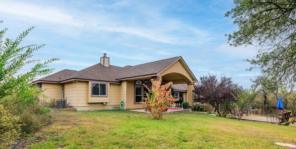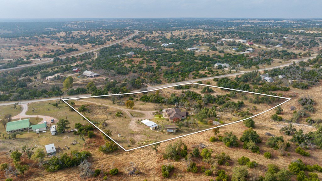 Situated on 6.29 acres along a paved county road just 5.1 miles from Fredericksburg, this inviting stucco home offers generous space, practical amenities, and country view. Custom built in 2004 and measuring 2,396 square feet (per GCAD), the residence features high ceilings throughout, creating an open and airy feel. The floor plan includes 4 bedrooms, 2 baths, a comfortable breakfast area, and a dedicated dining area, all centered around a spacious family room with a gas log fireplace and charming bay window. The well-designed kitchen offers an island, abundant cabinet space, granite countertops, a propane range, and a walk-in pantry. The master suite includes a large window seat, a bath with double sinks, a jetted tub, a separate shower, and a walk-in closet. Additional conveniences include a 2-car attached garage, a 4 car detached carport, a workshop, and a tool barn. Outdoor living is enhanced by a back covered patio overlooking a cross-fenced pasture accented by unique limestone outcroppings and a wet-weather creek. The property is fully fenced and cross-fenced, offering versatility for a variety of uses.