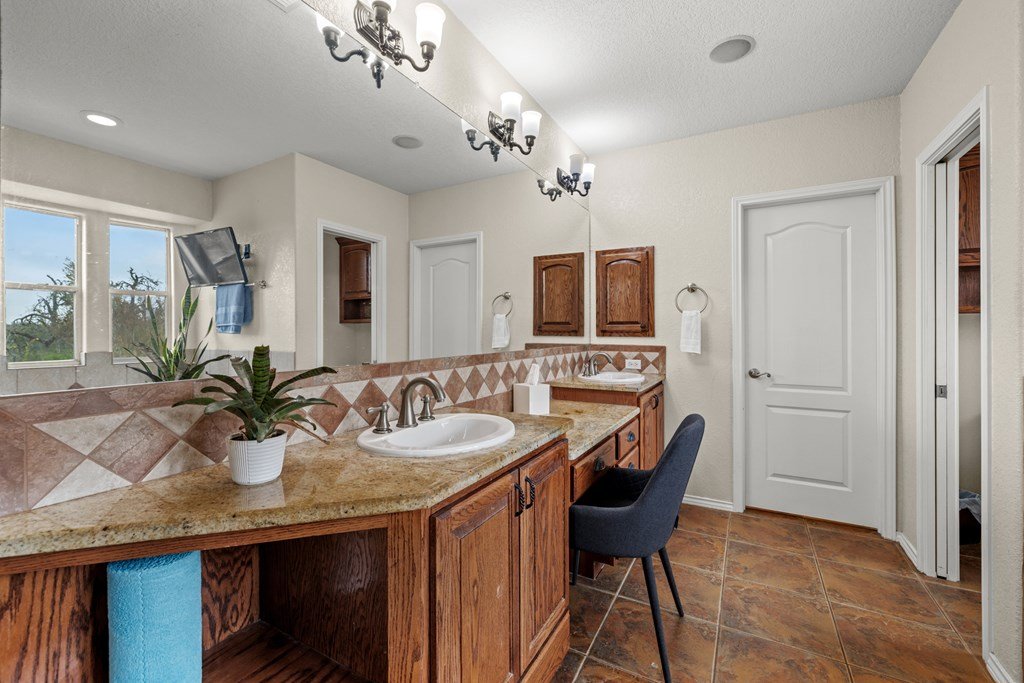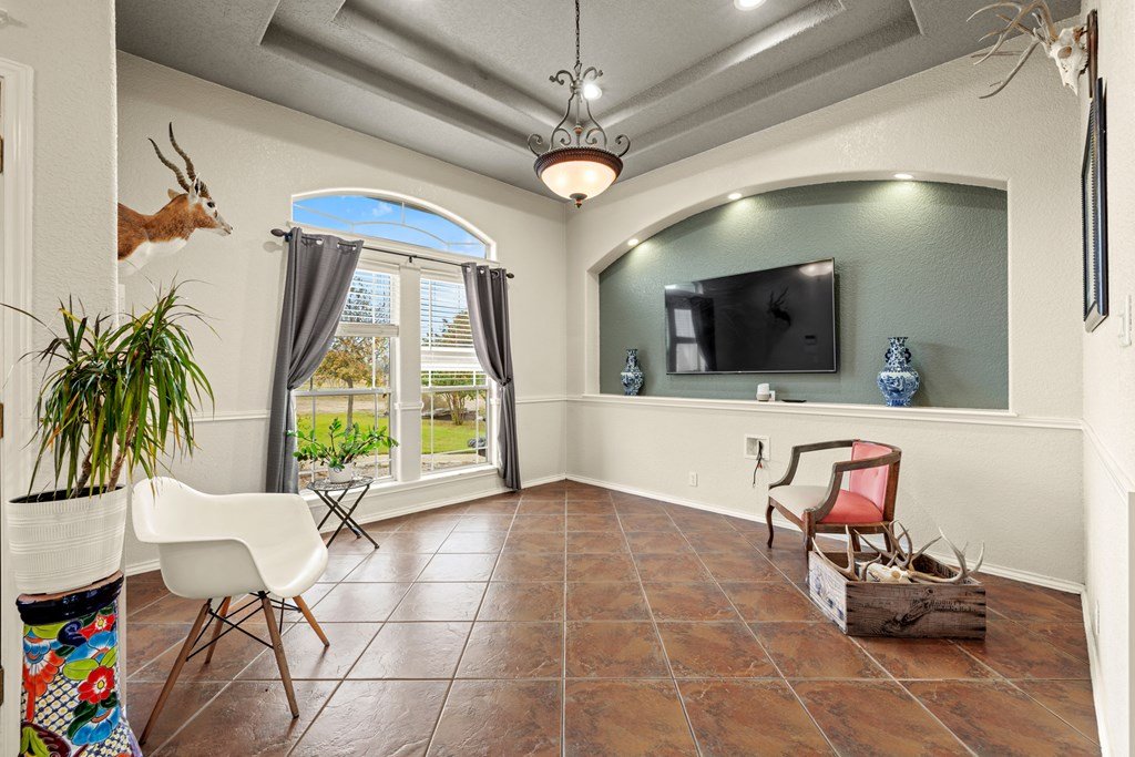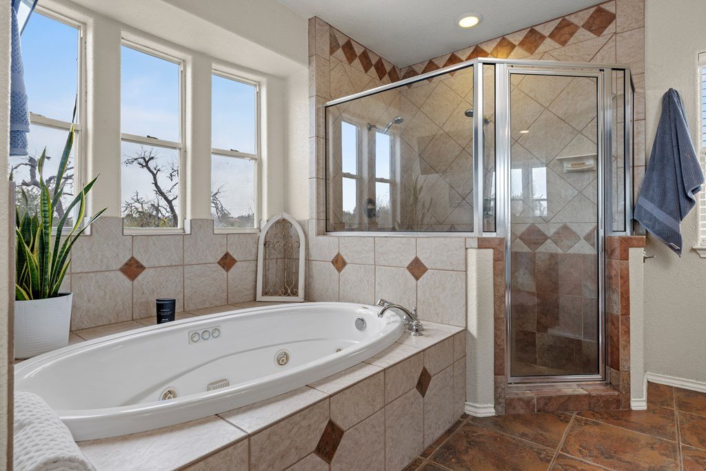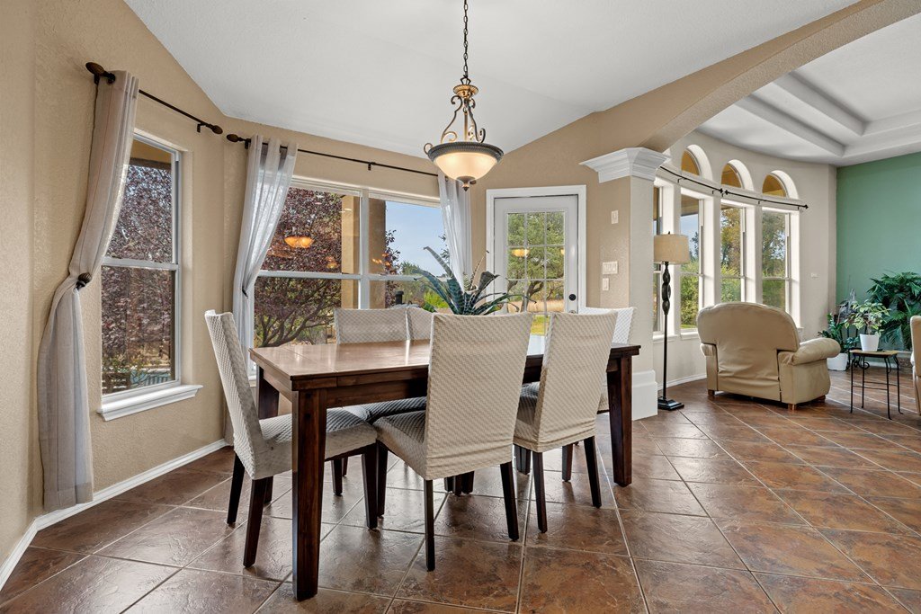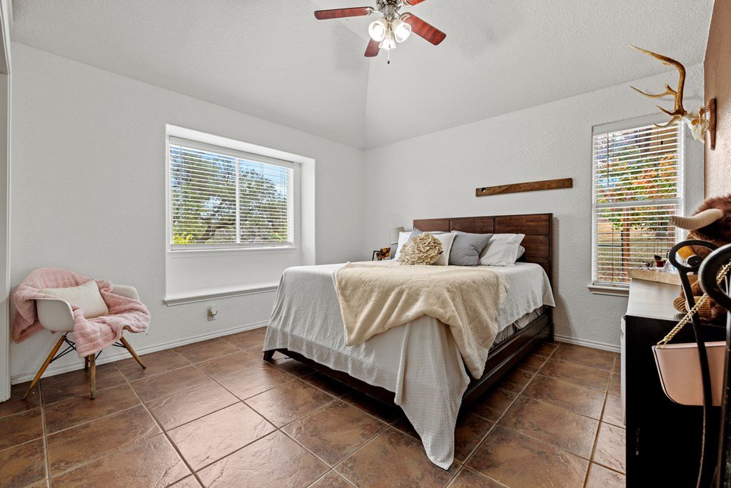Situated on 6.29 acres along a paved county road just 5.1 miles from Fredericksburg, this inviting stucco home offers generous space, practical amenities, and country view. Custom built in 2004 and measuring 2,396 square feet (per GCAD), the residence features high ceilings throughout, creating an open and airy feel. The floor plan includes 4 bedrooms, 2 baths, a comfortable breakfast area, and a dedicated dining area, all centered around a spacious family room with a gas log fireplace and charming bay window. The well-designed kitchen offers an island, abundant cabinet space, granite countertops, a propane range, and a walk-in pantry. The master suite includes a large window seat, a bath with double sinks, a jetted tub, a separate shower, and a walk-in closet. Additional conveniences include a 2-car attached garage, a 4 car detached carport, a workshop, and a tool barn. Outdoor living is enhanced by a back covered patio overlooking a cross-fenced pasture accented by unique limestone outcroppings and a wet-weather creek. The property is fully fenced and cross-fenced, offering versatility for a variety of uses.