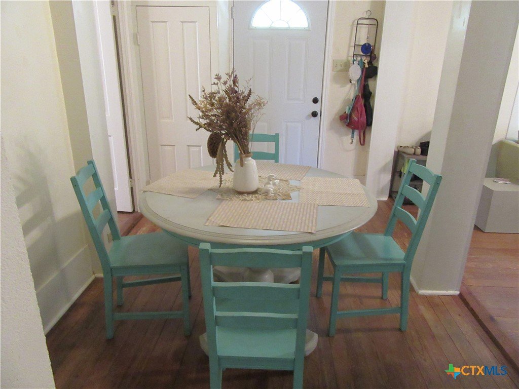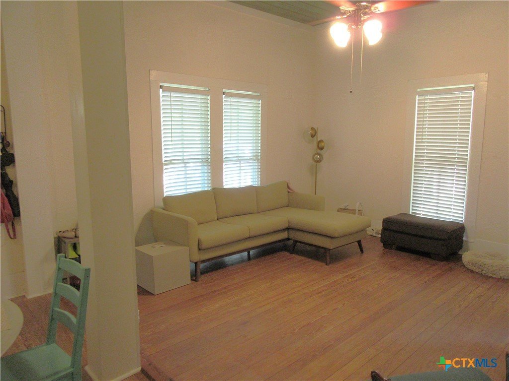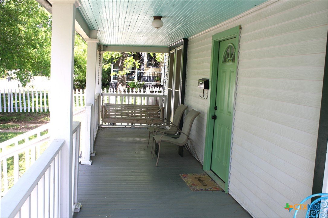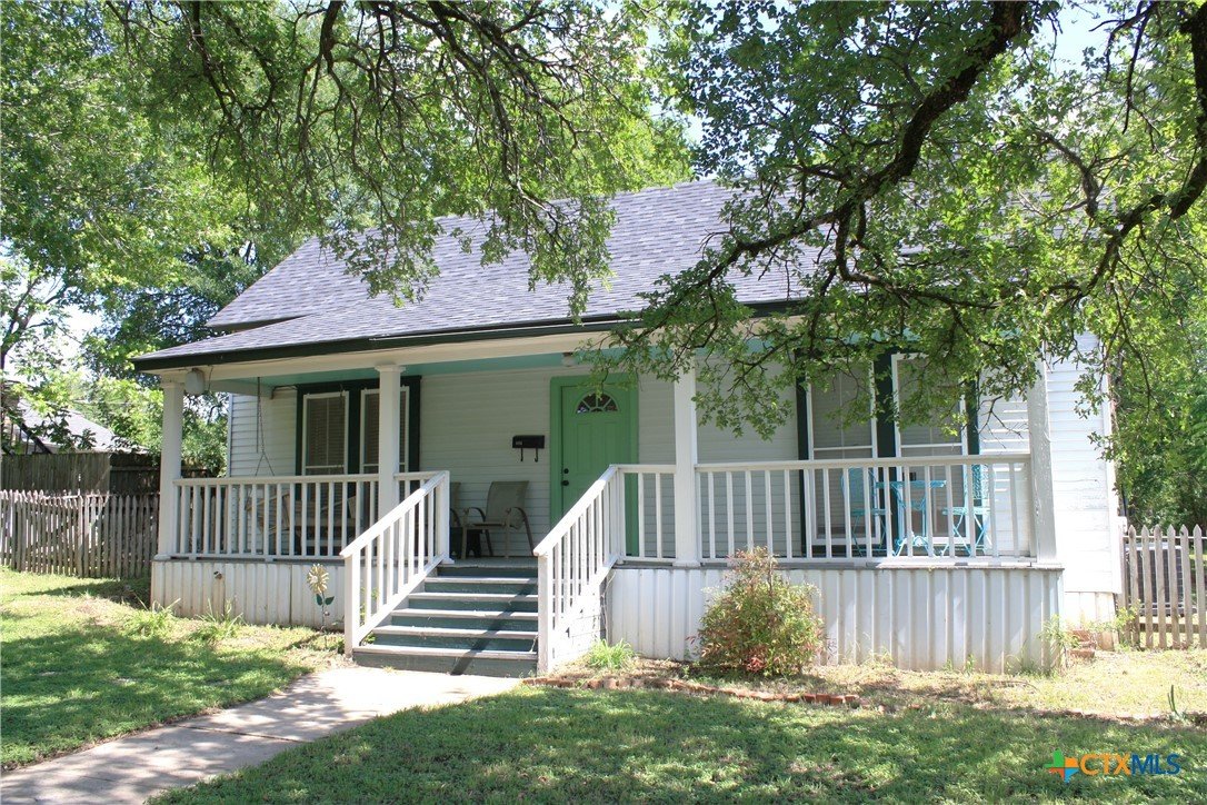 Enchanting home with historic charm close to UMHB in beautiful Belton Texas. Charming curb appeal being nestled under mature trees this little cottage has a dream front porch with the classic porch swing for enjoying a good book or conversations with loved ones. Walk into the large living/dining combo with original hardwood floors and high ceilings. Expansive bedroom flooded with natural light and boasting handy extra storage areas. Flex space currently used as a bedroom that would make the perfect office or area for crafts or exercise. Cute kitchen with a lovely stained-glass window in front of the sink. Separate laundry room that leads out to the covered back porch. The "outback" is special with a huge fenced back yard, lots of trees, a dog pen and a very nice 10 X 12 Morgan storage shed with an added open storage area for your lawn mower and more. There's lots of room for a garden and would be a great place for entertaining your friends. Close to all things Belton.