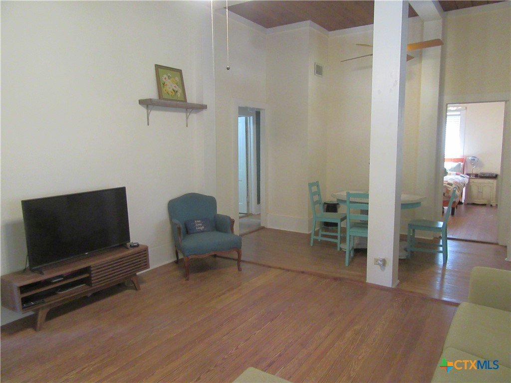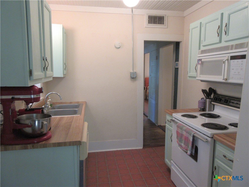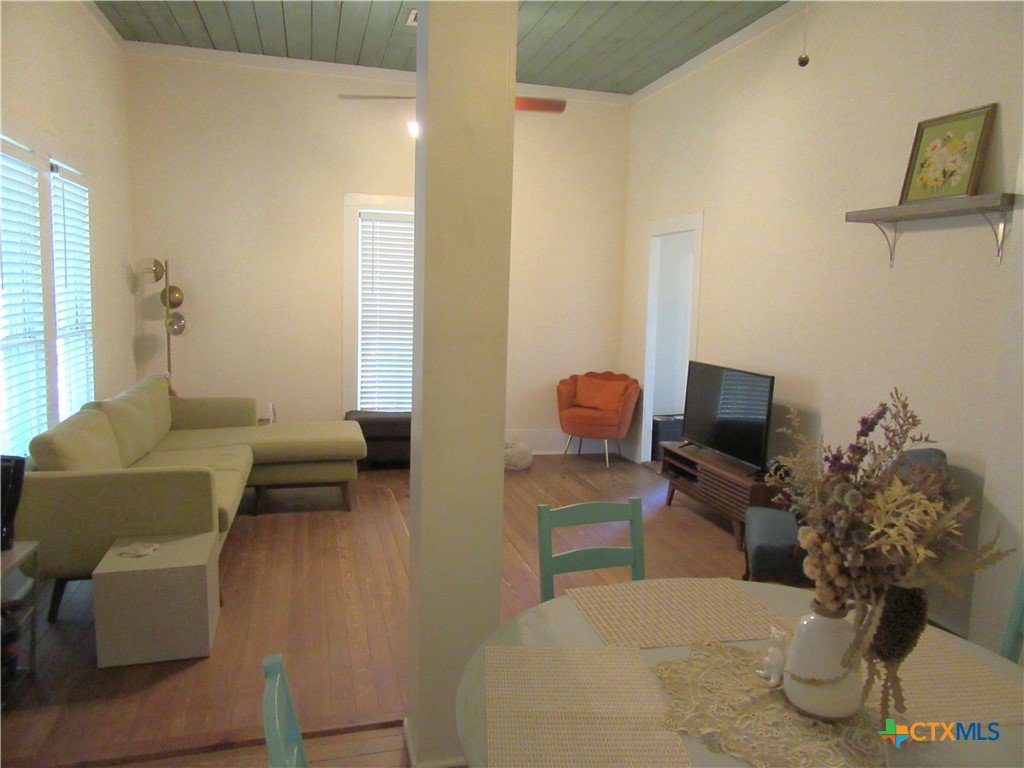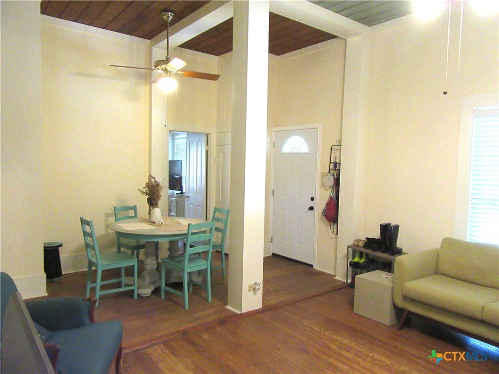 Enchanting home with historic charm close to UMHB in beautiful Belton Texas. Charming curb appeal being nestled under mature trees this little cottage has a dream front porch with the classic porch swing for enjoying a good book or conversations with loved ones. Walk into the large living/dining combo with original hardwood floors and high ceilings. Expansive bedroom flooded with natural light and boasting handy extra storage areas. Flex space currently used as a bedroom that would make the perfect office or area for crafts or exercise. Cute kitchen with a lovely stained-glass window in front of the sink. Separate laundry room that leads out to the covered back porch. The "outback" is special with a huge fenced back yard, lots of trees, a dog pen and a very nice 10 X 12 Morgan storage shed with an added open storage area for your lawn mower and more. There's lots of room for a garden and would be a great place for entertaining your friends. Close to all things Belton.