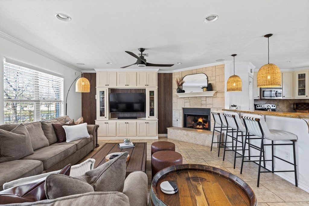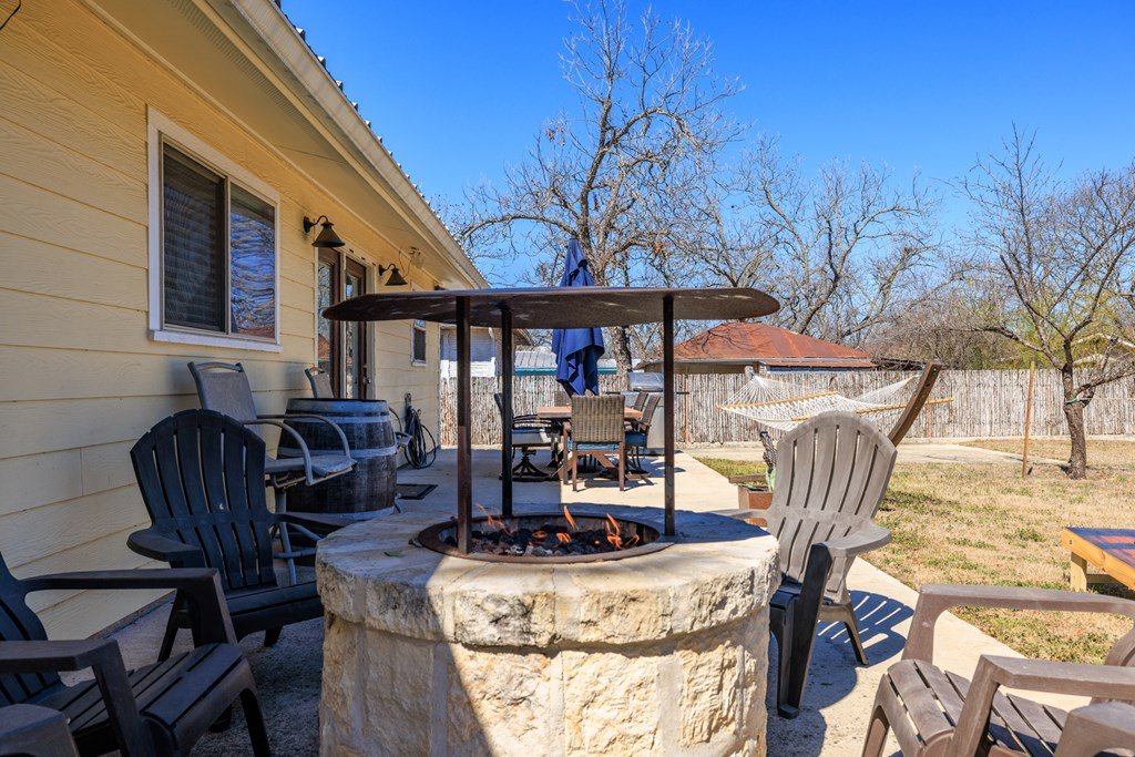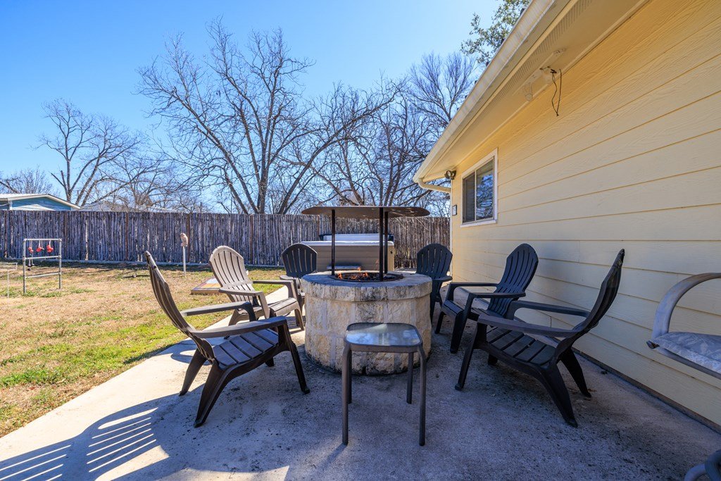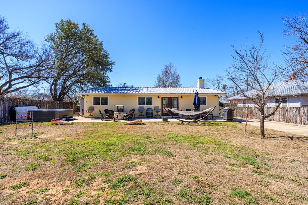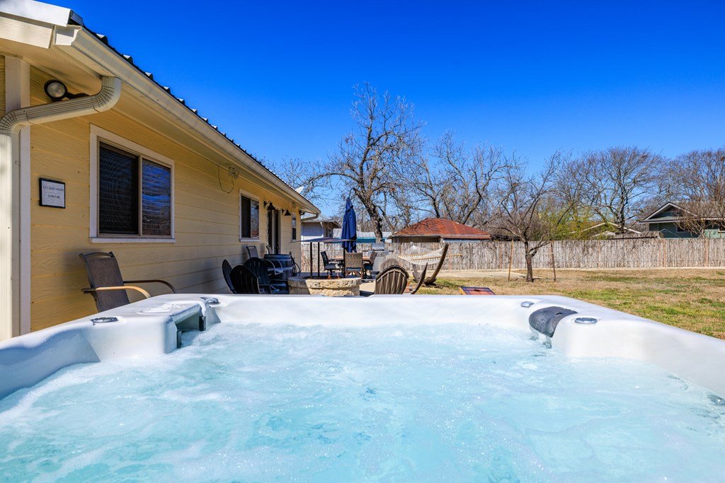Experience the best of Hill Country living in the heart of Fredericksburg! This fully renovated 3-bedroom, 2-bathroom home sits on a large .3245-acre lot with an active STR permit (#8056001379). Boasting a track record of five-star reviews on Airbnb and VRBO, this property is a proven gem. The open floor plan integrates the living, dining, and kitchen areas, featuring sleek tile flooring and abundant natural light. Relax in the spacious living room with a built-in entertainment center and cozy stone fireplace. The gourmet kitchen offers custom cabinetry, granite countertops, a center island, breakfast bar, corner pantry, and high-end stainless-steel appliances. Both bathrooms feature luxurious double vanities, while the primary bedroom is a true retreat with a separate tub and shower. Outside, enjoy the oversized backyard with a privacy fence, perfect for outdoor entertainment or future expansion, plus a hot tub for relaxation. With a nearly new water heater, peace of mind is guaranteed. Furnishings and future bookings are included, ensuring a smooth transition into your dream home or investment property. Schedule a showing today!
