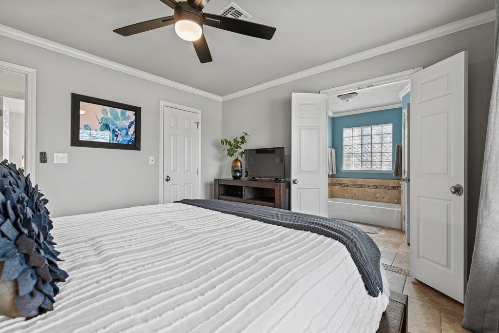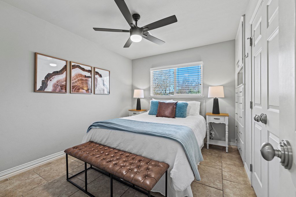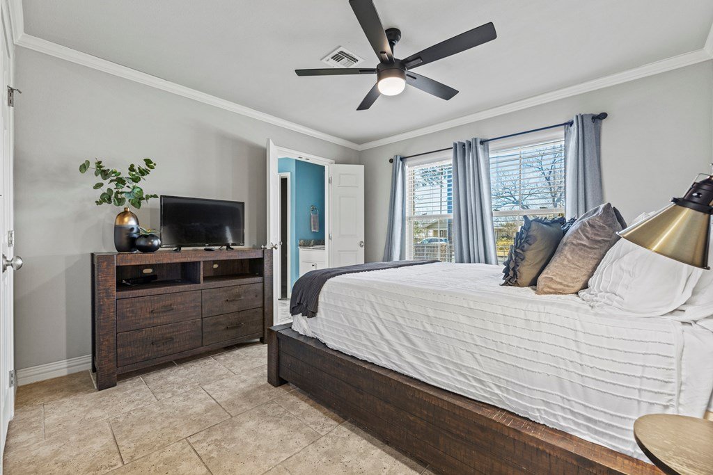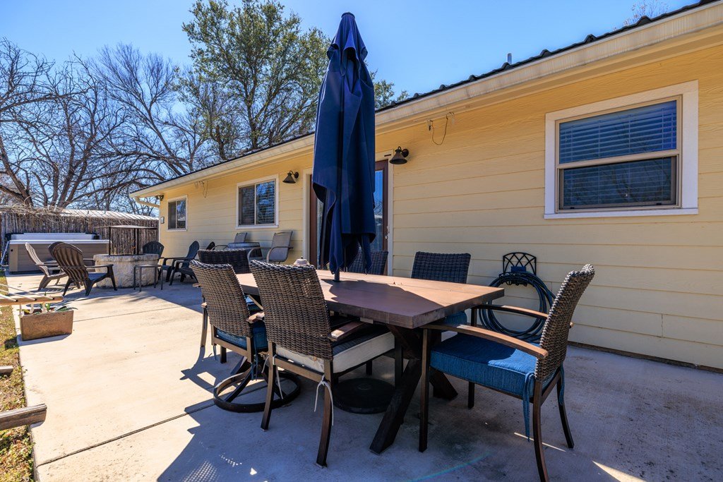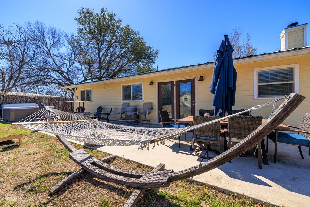Experience the best of Hill Country living in the heart of Fredericksburg! This fully renovated 3-bedroom, 2-bathroom home sits on a large .3245-acre lot with an active STR permit (#8056001379). Boasting a track record of five-star reviews on Airbnb and VRBO, this property is a proven gem. The open floor plan integrates the living, dining, and kitchen areas, featuring sleek tile flooring and abundant natural light. Relax in the spacious living room with a built-in entertainment center and cozy stone fireplace. The gourmet kitchen offers custom cabinetry, granite countertops, a center island, breakfast bar, corner pantry, and high-end stainless-steel appliances. Both bathrooms feature luxurious double vanities, while the primary bedroom is a true retreat with a separate tub and shower. Outside, enjoy the oversized backyard with a privacy fence, perfect for outdoor entertainment or future expansion, plus a hot tub for relaxation. With a nearly new water heater, peace of mind is guaranteed. Furnishings and future bookings are included, ensuring a smooth transition into your dream home or investment property. Schedule a showing today!