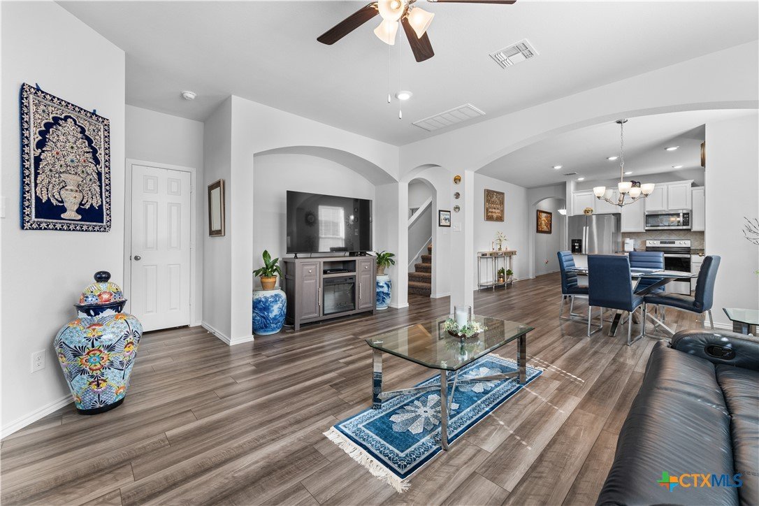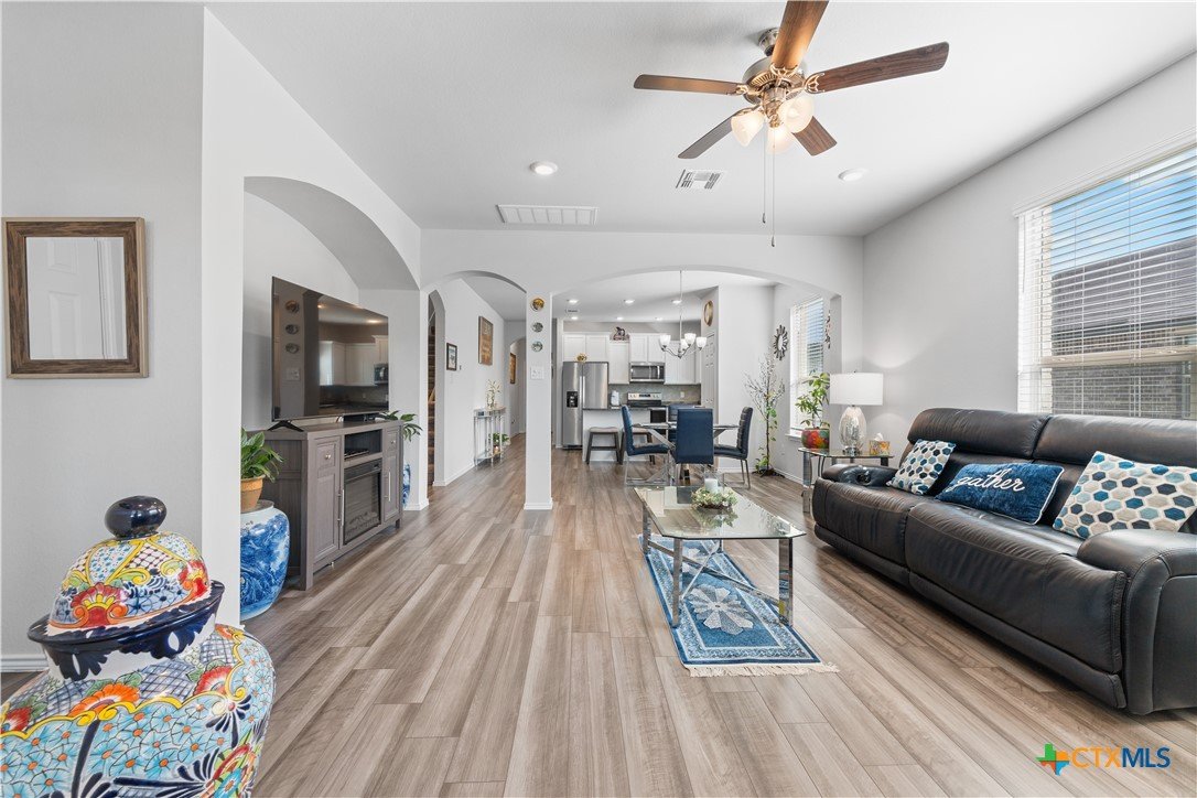 ****Over 3,100 Sq Ft with Flex Room, &New Roof!**** This stunning 5-bedroom, 3-bath home with a dedicated office and flex room offers over 3,100 sq ft of thoughtful design. Built in 2021, it showcases architectural details like graceful interior arches and a flowing floor plan that balances elegance with everyday function. Designed with expansive living in mind, the layout offers distinct areas for work, relaxation, and gathering. The kitchen features granite countertops, stainless steel appliances, and a breakfast bar that flows naturally into the main living area. Architectural arches add character, while the upstairs loft creates additional flexibility—perfect for a second living area, media room, or play space. The owner’s suite includes a soaking tub, separate shower, and dual vanities, complemented by three additional bedrooms. Outdoors, a covered patio extends the home’s living space into the backyard. Minutes from Fort Hood gates, Killeen–Fort Hood Airport, and shopping, this home blends space, style, and convenience in a prime location.