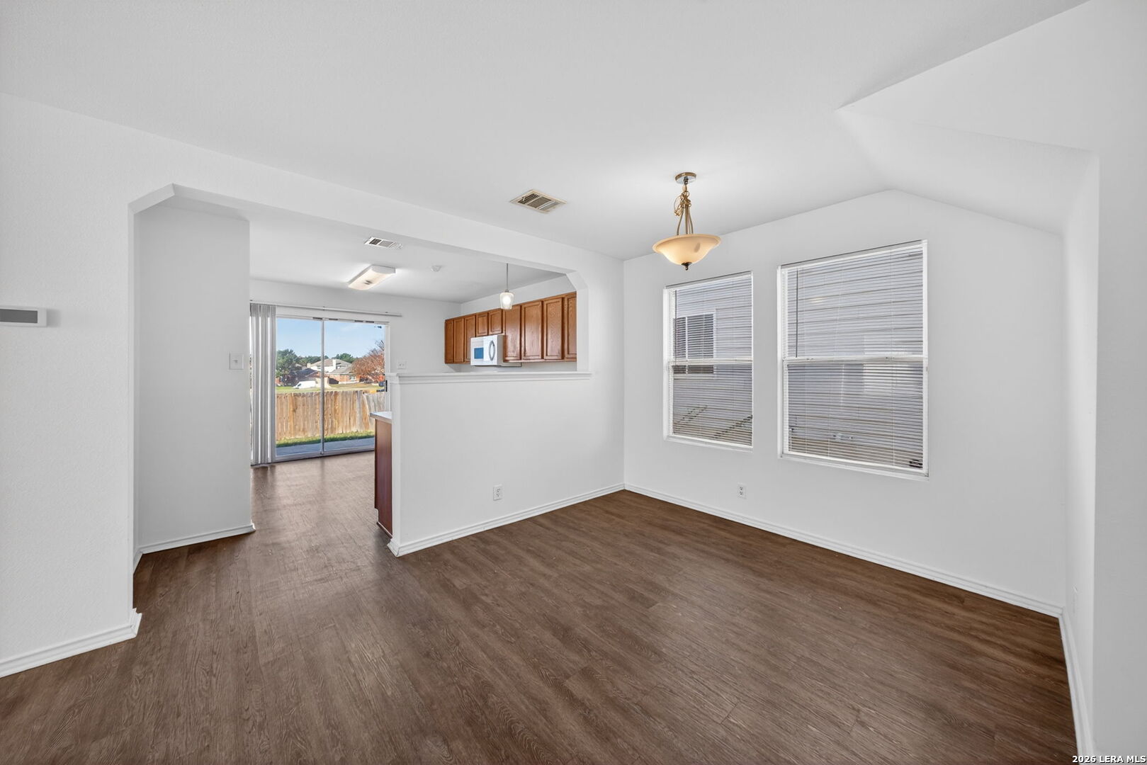 This charming two-story residence offers a thoughtful layout featuring 4 spacious bedrooms and 3 full baths. The heart of the home is an inviting, open-concept downstairs, where the living and dining areas flow seamlessly into a kitchen complete with a convenient breakfast bar-perfect for busy mornings or hosting friends. Unique to this floor plan, you'll find a secondary bedroom on the main level, ideal for guests or a home office. Upstairs, the private primary suite awaits alongside an additional bedroom and a versatile game room for movie nights or play. Step outside to your fenced backyard and enjoy the serene views, as the property backs directly to a greenspace with no rear neighbors. Welcome home!