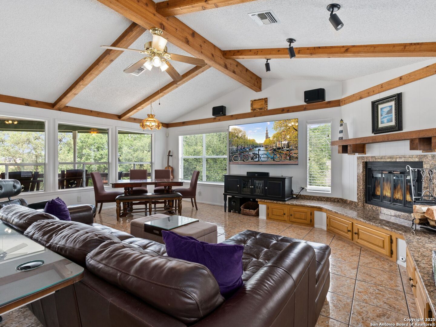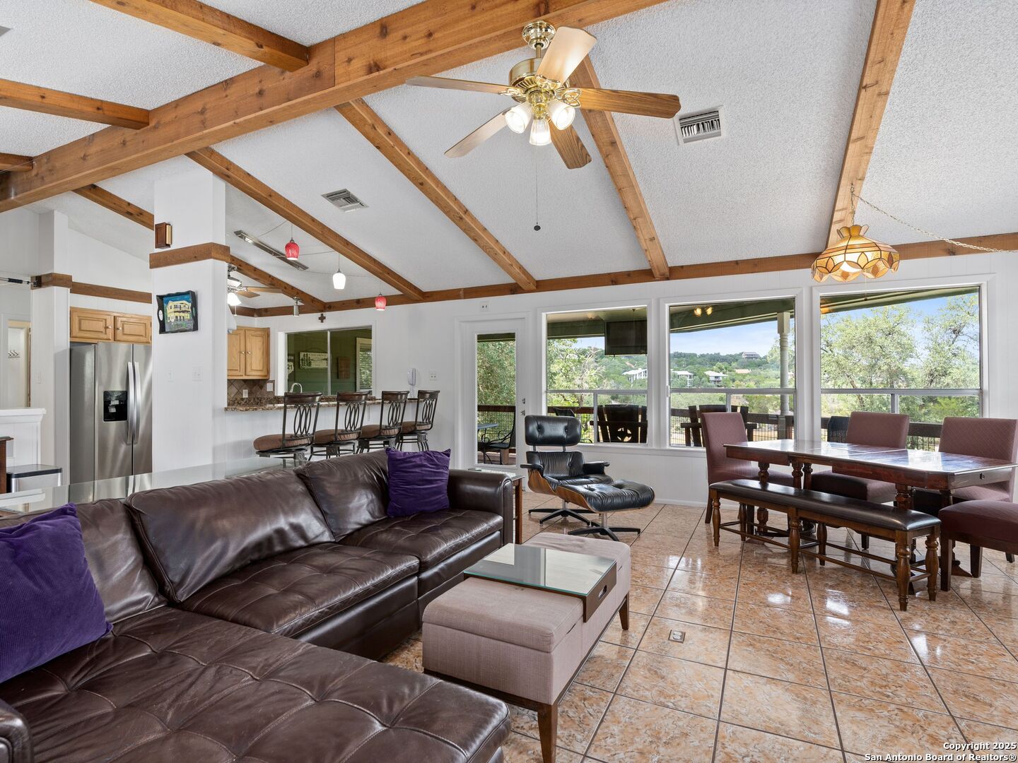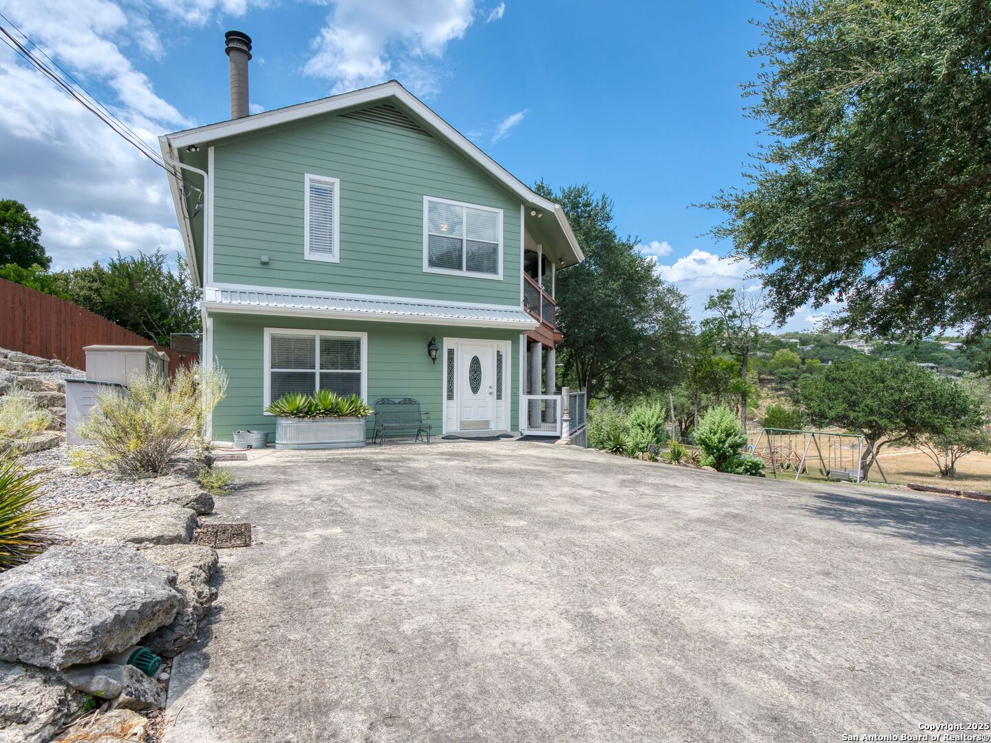 This is your chance to own a one-of-a-kind waterfront retreat with 275 feet of shoreline on the south side of the lake! Nestled on nearly 3 acres-two platted lots combined into one-this property offers unmatched space and privacy. Outdoor living takes center stage at 407 Nancy, with a gravel road for vehicle access to the water's edge, two expansive decks, a bocce court, and a charming gazebo. Inside, the home boasts a bright, open layout with the living room, kitchen, dining area, primary suite, and a secondary bedroom all on the main level. The lower level features a large bedroom, a full bath, a versatile flex space, and an office that can easily serve as a fourth bedroom. Both living spaces open to covered patios- where you can soak in sweeping views of the lake and surrounding hills. Practicality meets convenience with abundant storage and parking, including a detached oversized two-car garage, covered boat storage, and a fully fenced property. A dedicated dog run with direct access to the home makes it pet-friendly, too. Located near the Turkey Cove boat ramp, this lake house offers easy access to the water. It is just a short drive to Canyon Lake's dining and entertainment, the Guadalupe River, New Braunfels, Gruene, and Whitewater Amphitheater. Whether you're looking for a full-time residence, a weekend getaway, or an income-producing short-term rental, this property delivers. A true lakeside paradise-don't miss this rare opportunity!