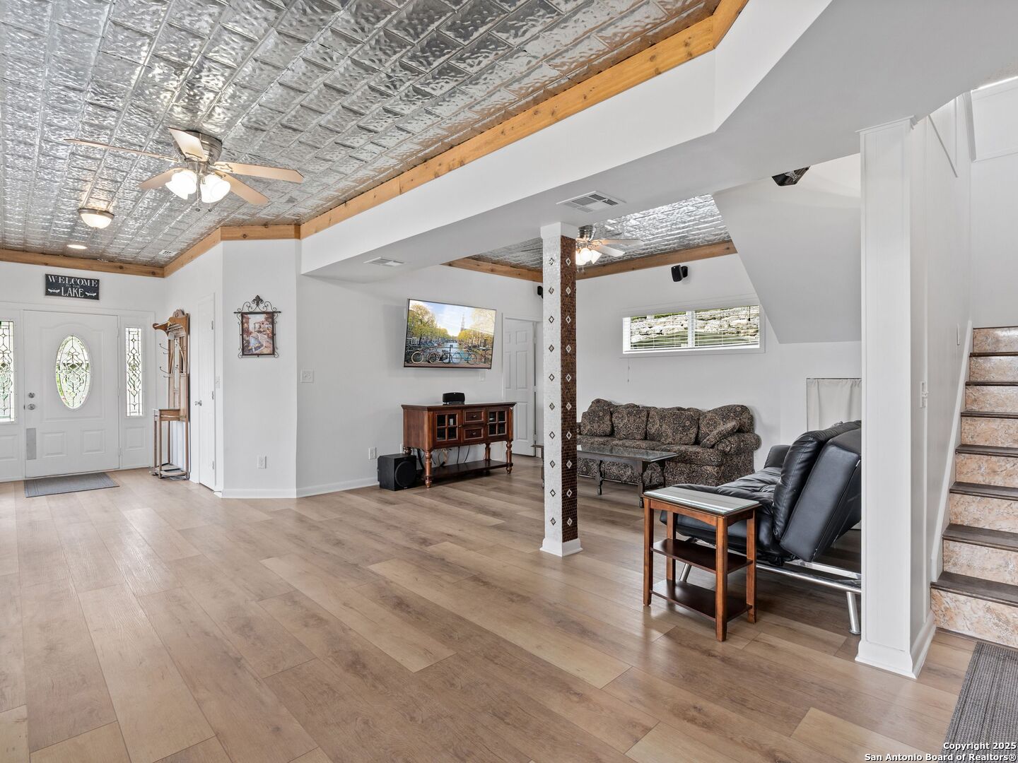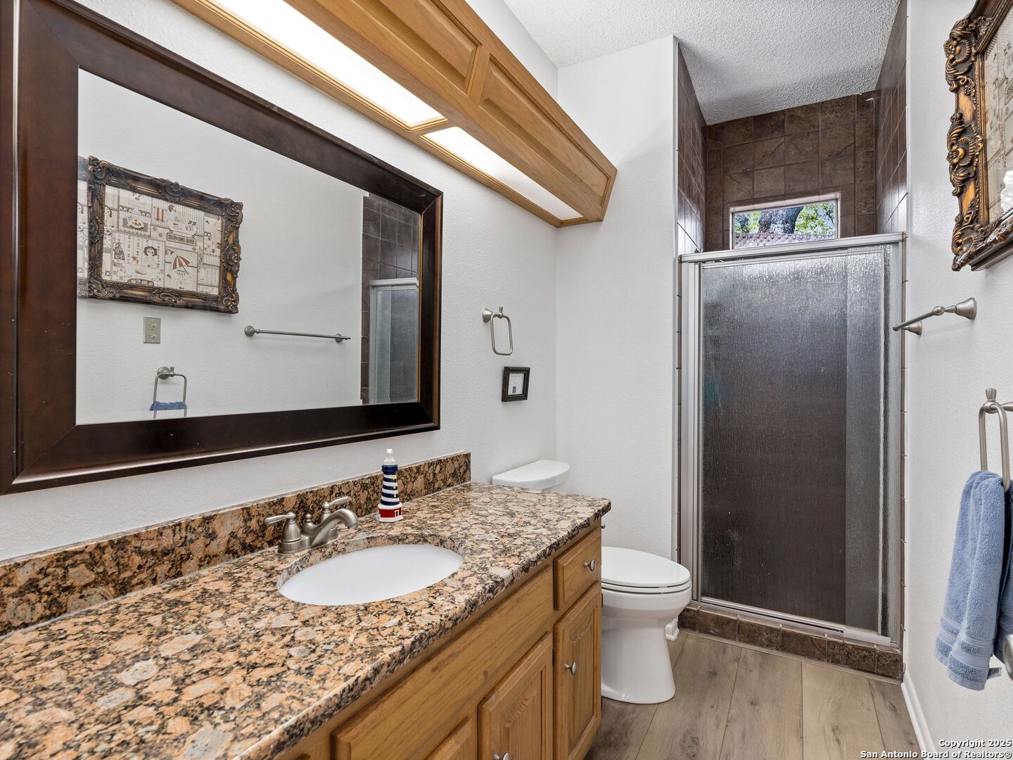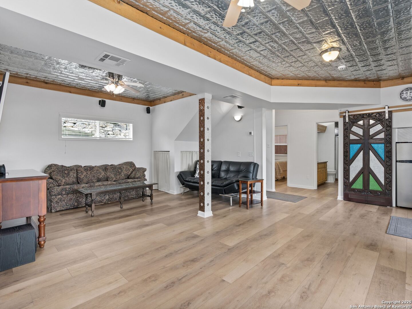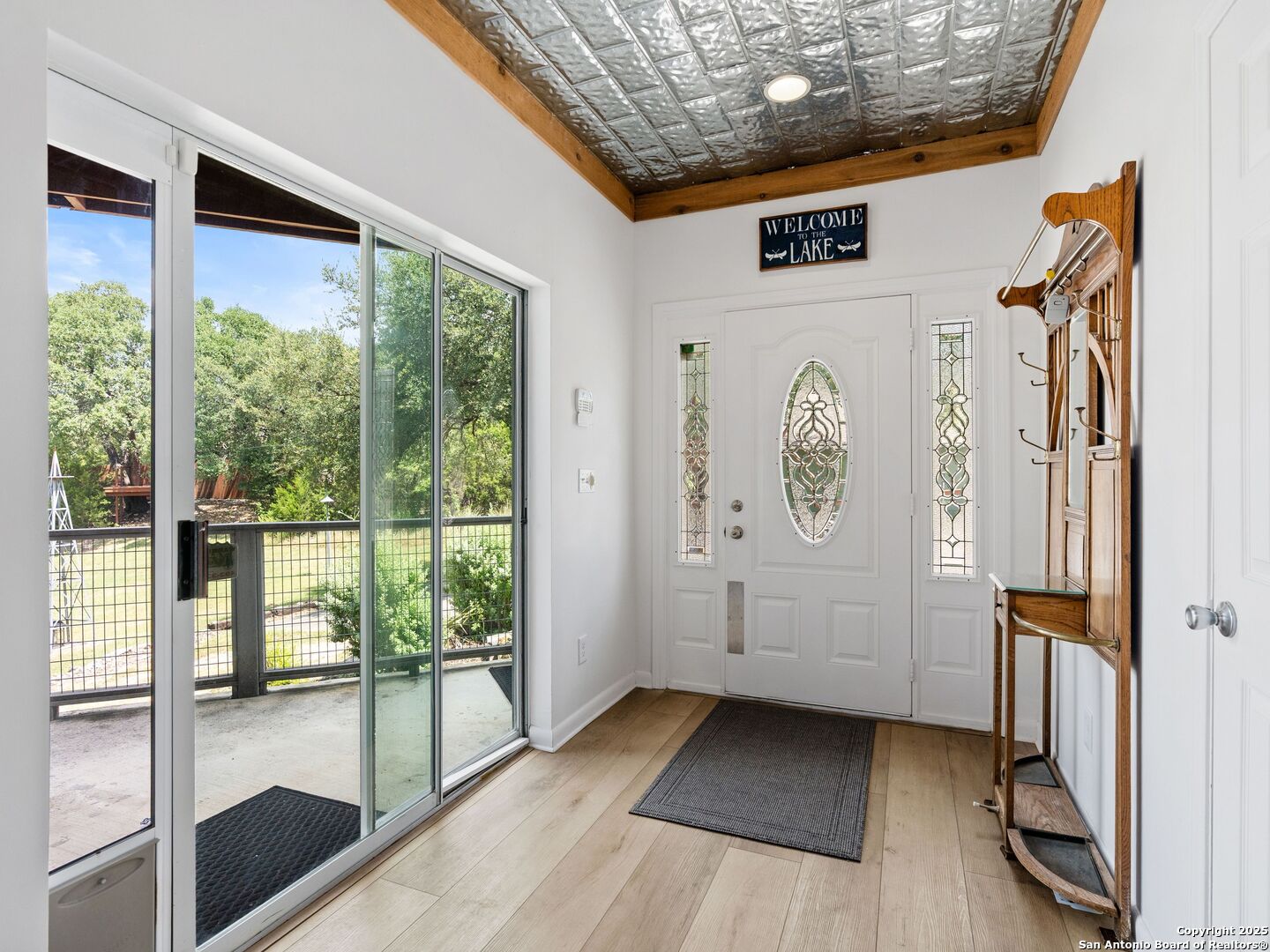 This is your chance to own a one-of-a-kind waterfront retreat with 275 feet of shoreline on the south side of the lake! Nestled on nearly 3 acres-two platted lots combined into one-this property offers unmatched space and privacy. Outdoor living takes center stage at 407 Nancy, with a gravel road for vehicle access to the water's edge, two expansive decks, a bocce court, and a charming gazebo. Inside, the home boasts a bright, open layout with the living room, kitchen, dining area, primary suite, and a secondary bedroom all on the main level. The lower level features a large bedroom, a full bath, a versatile flex space, and an office that can easily serve as a fourth bedroom. Both living spaces open to covered patios- where you can soak in sweeping views of the lake and surrounding hills. Practicality meets convenience with abundant storage and parking, including a detached oversized two-car garage, covered boat storage, and a fully fenced property. A dedicated dog run with direct access to the home makes it pet-friendly, too. Located near the Turkey Cove boat ramp, this lake house offers easy access to the water. It is just a short drive to Canyon Lake's dining and entertainment, the Guadalupe River, New Braunfels, Gruene, and Whitewater Amphitheater. Whether you're looking for a full-time residence, a weekend getaway, or an income-producing short-term rental, this property delivers. A true lakeside paradise-don't miss this rare opportunity!