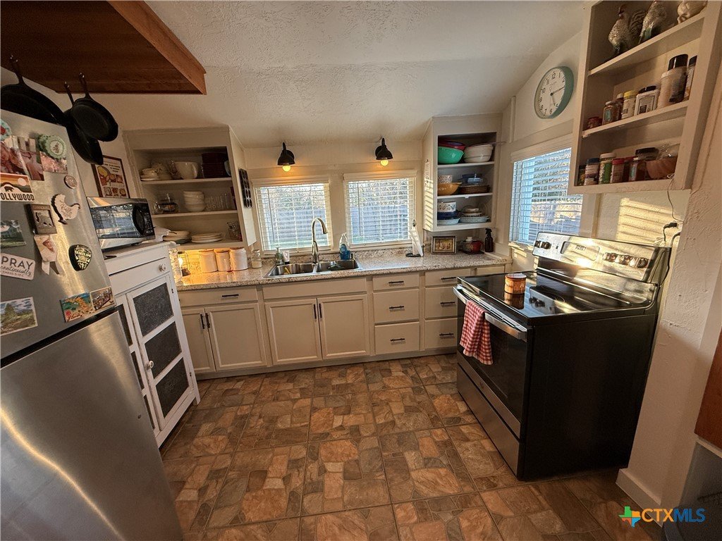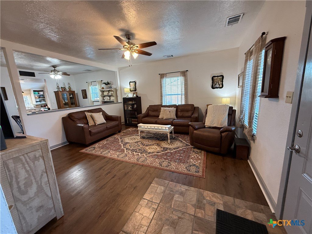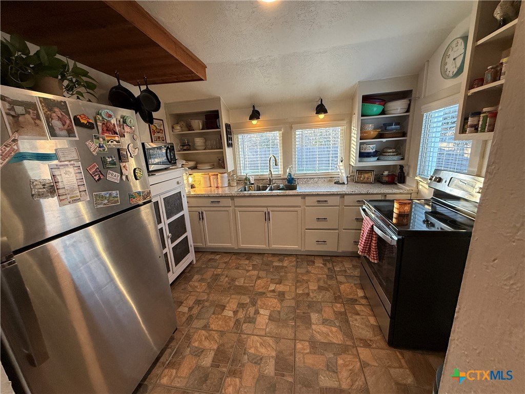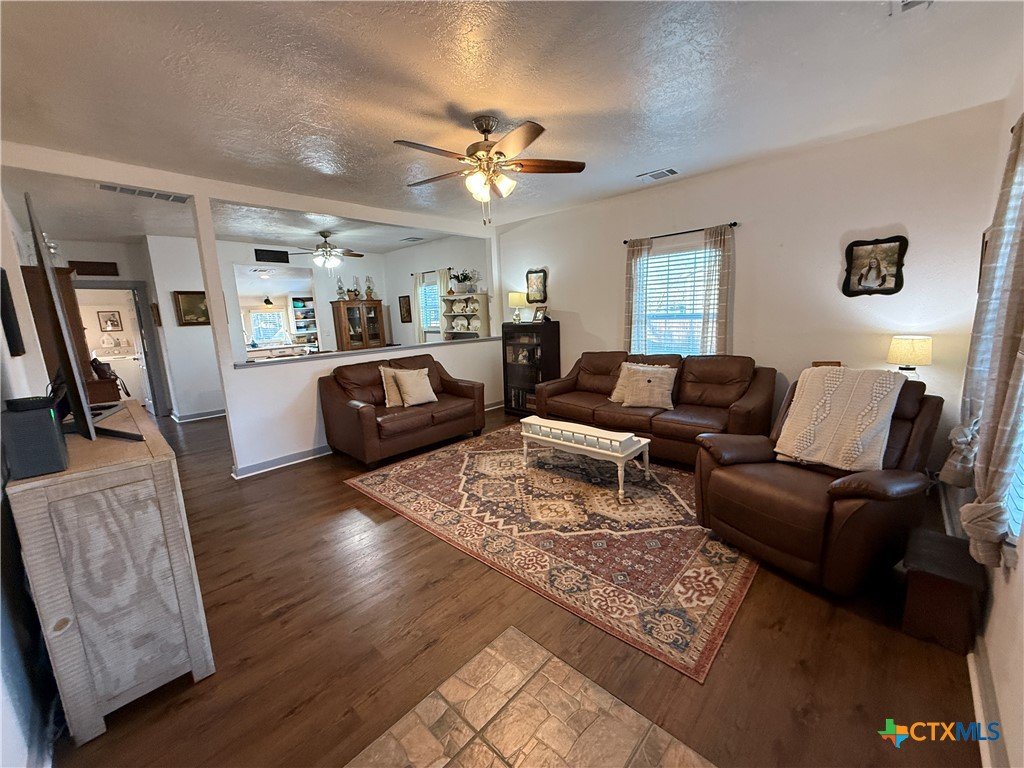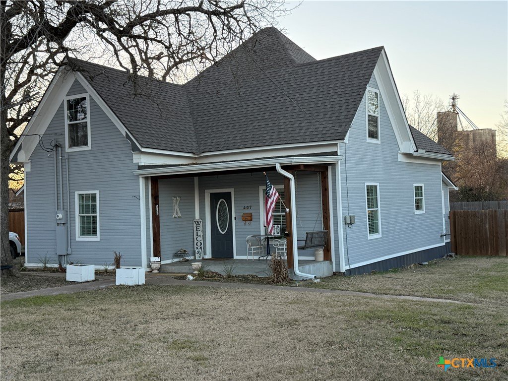 Cute wood frame home that has been well maintained. There have been many updates done in the last few years. Those updates include the roof, HVAC, tankless water heater with propane, workshop, and storage building. This is a 3 bedroom, 2 bath home with approximately 1,440 sq ft of living space. There is a separate living and dining room, and a laundry room off the back door. Nice size back yard fenced for privacy. A small storage building with electricity has a bathroom that has been plumbed and could be finished out to make an office or whatever one chooses. The metal workshop has slab foundation with roll-up door. One can plant a garden or do landscaping in beds in front yard.