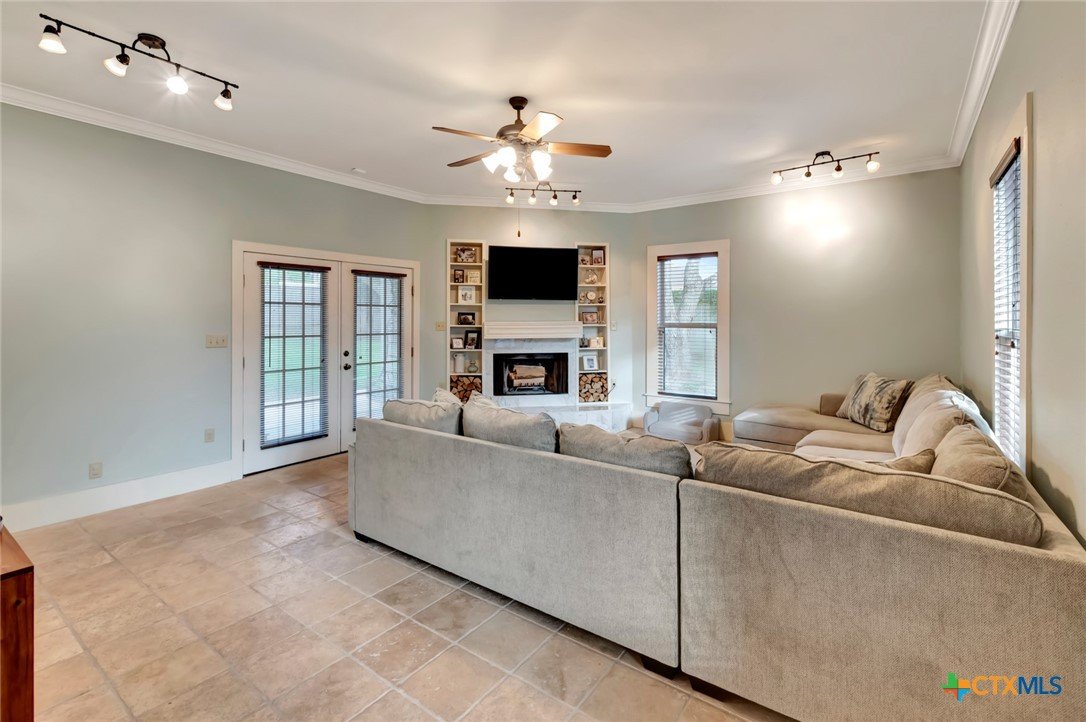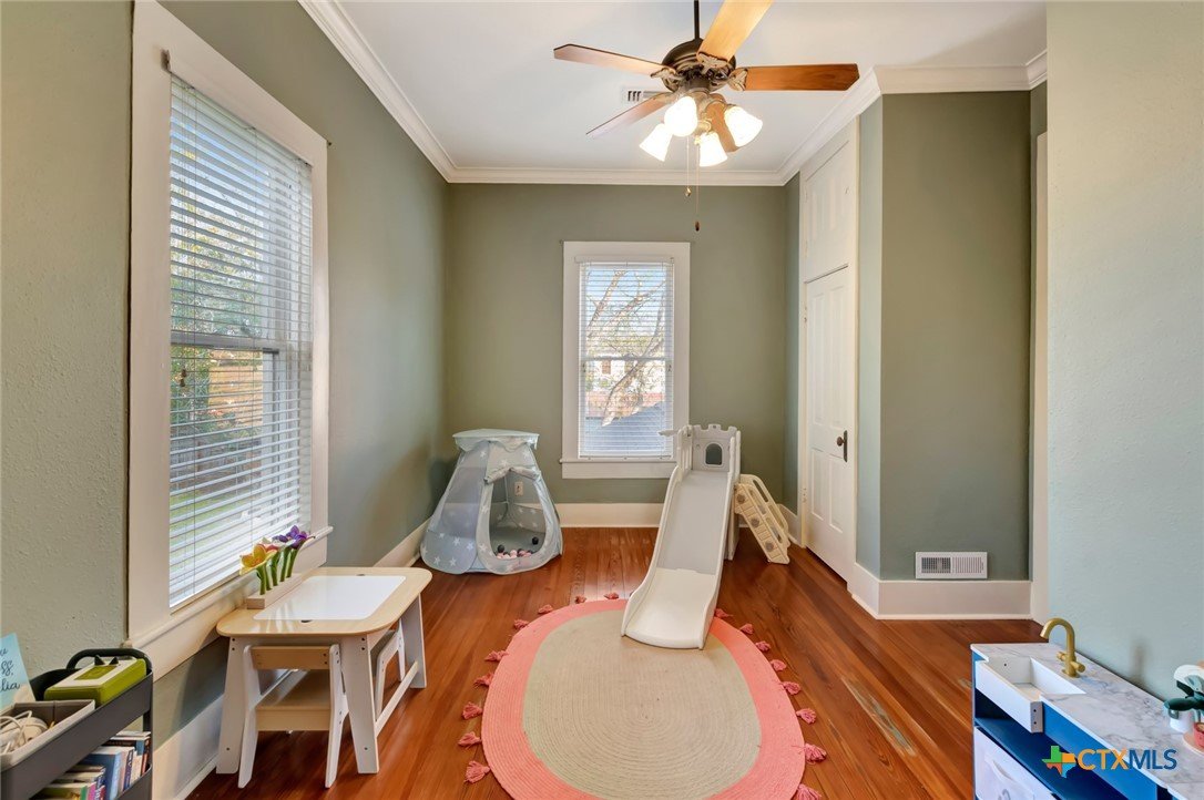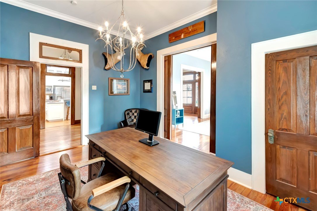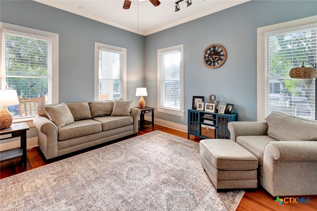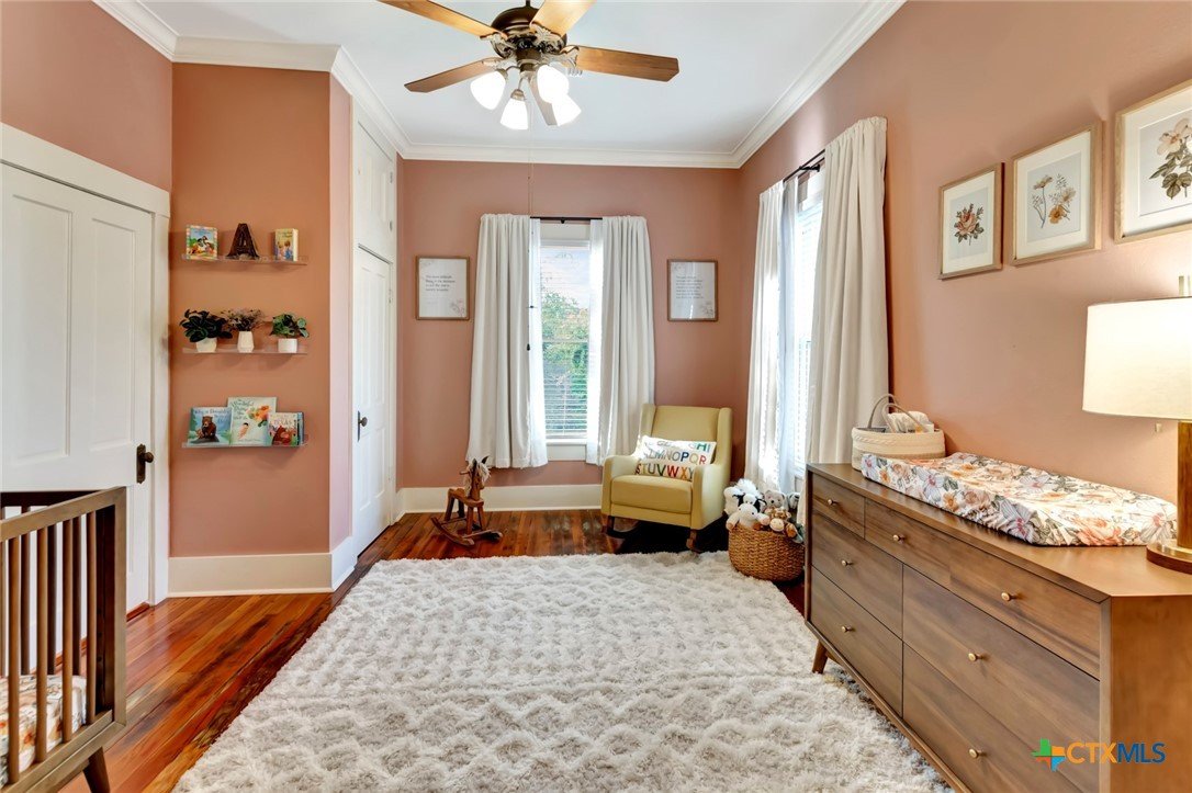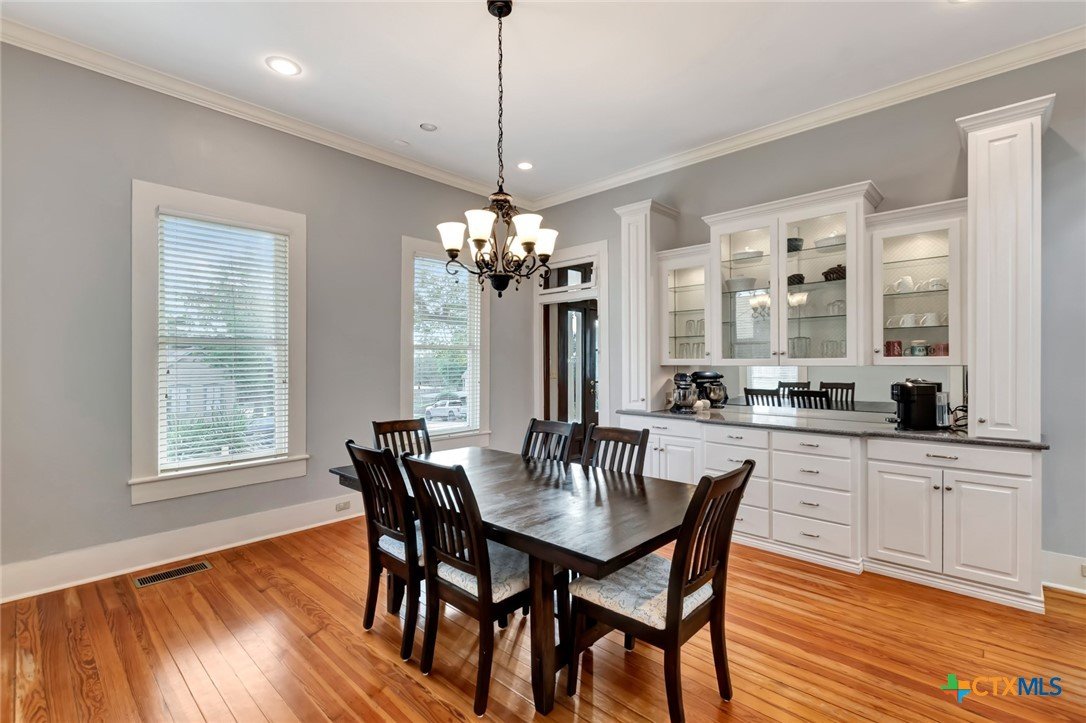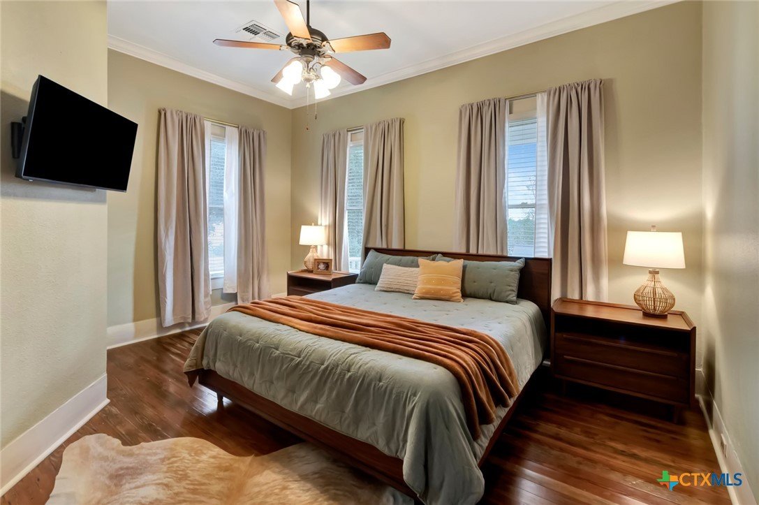 Circa 1850, the historic Old Casino Hall, also known as the Charles Hewitt House, embodies the charm of Victorian architecture while offering modern comforts. Upon entering, the spacious ground floor welcomes you with formal living and dining rooms, featuring pristine pocket doors. The chef's kitchen, complete with Silestone countertops, a gas range, and a large island, provides ample space for culinary gatherings. A cozy den on the main floor, complete with a full bathroom, opens onto an expansive back porch overlooking the generous backyard. The second floor features four well-appointed bedrooms, two full baths, and a thoughtfully designed laundry room equipped with two full-size washers and two full-size dryers, all included in the sale. On the third floor, you'll find ample storage, an additional bedroom, and a full bath, ideal for guests or a private retreat. The oversized three-car garage offers a great in home gym and a spacious apartment above with a full bath and kitchenette. Enjoy all that 408 W. Forrest has to offer, located in the heart of Old Victoria.