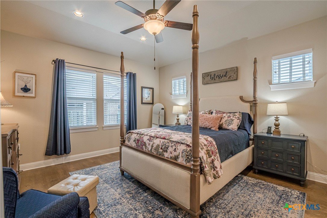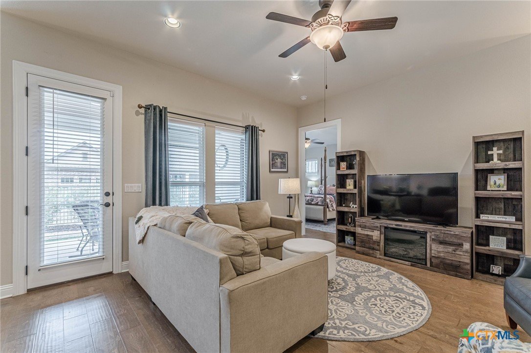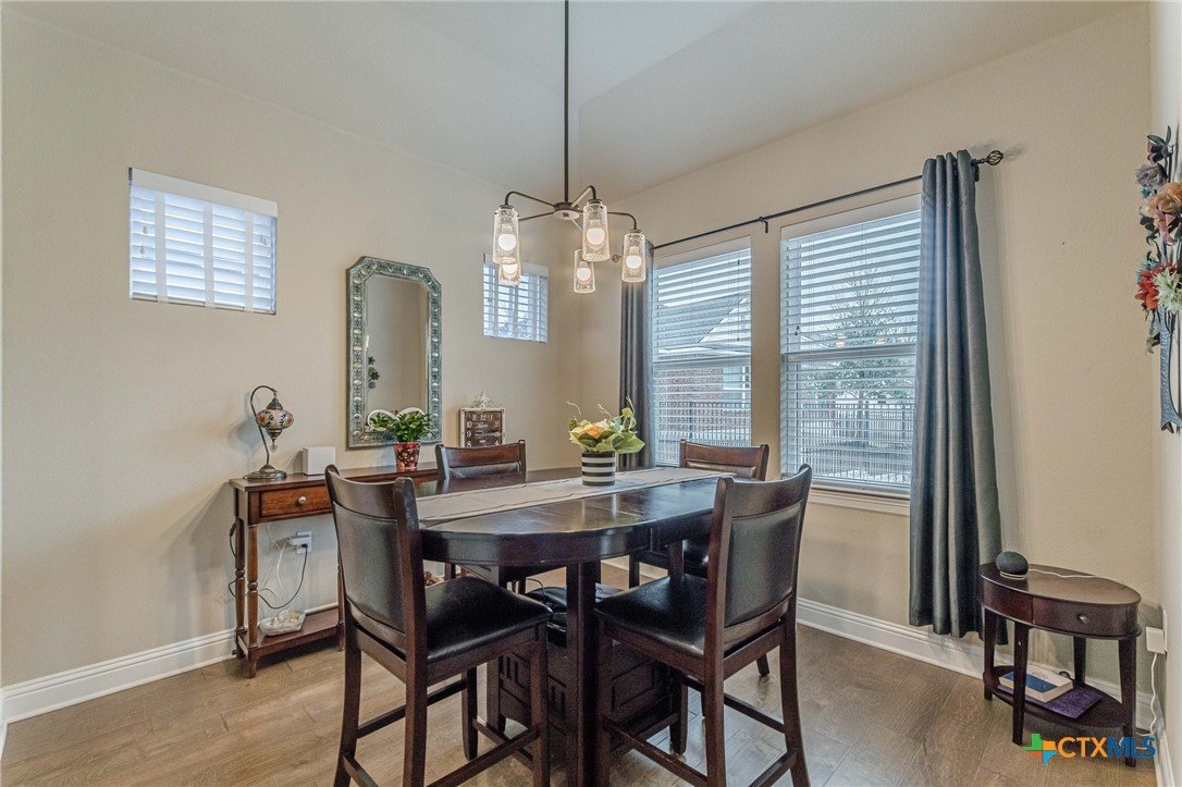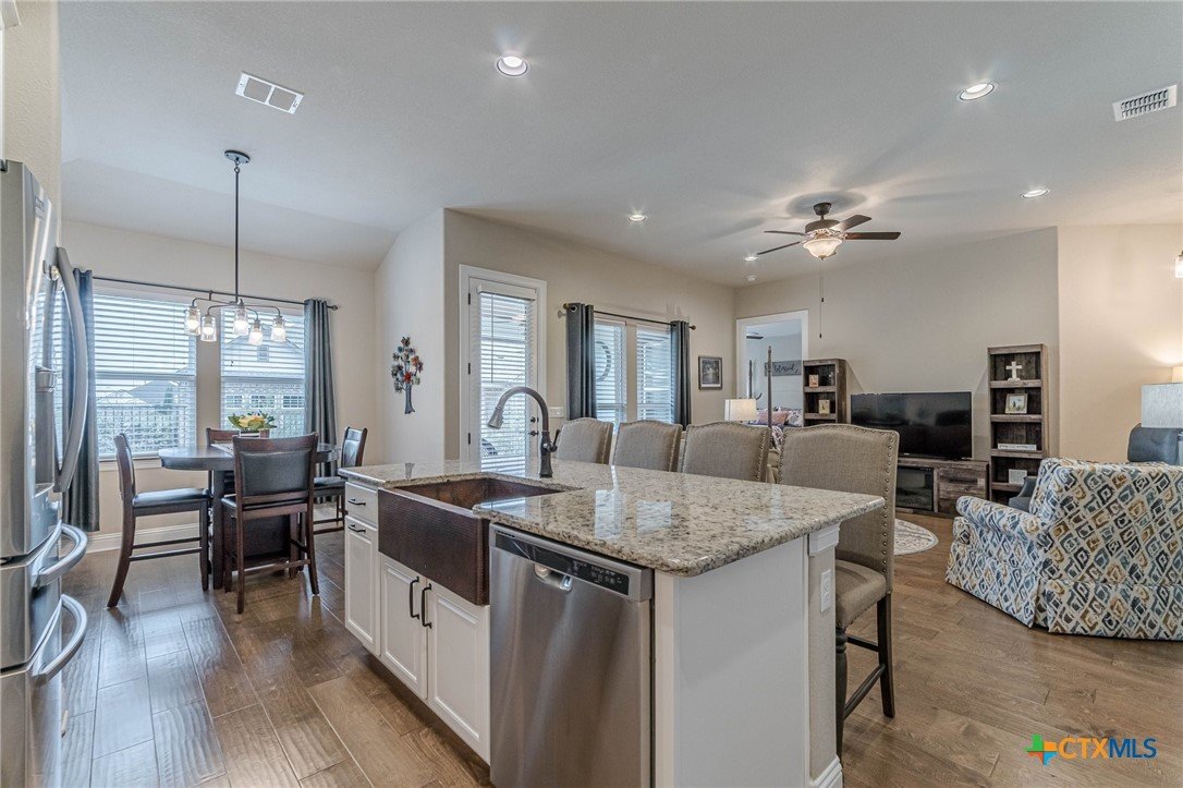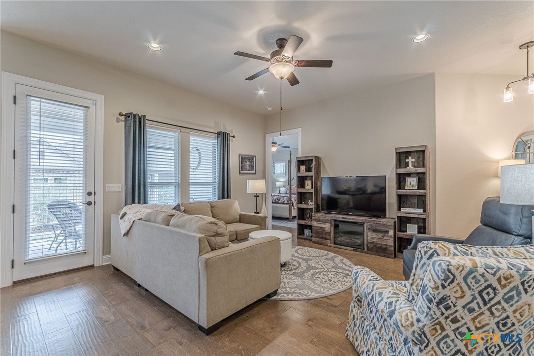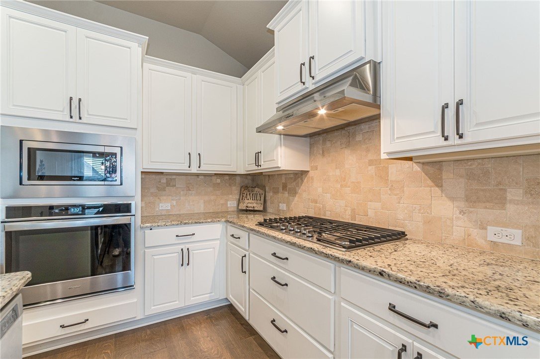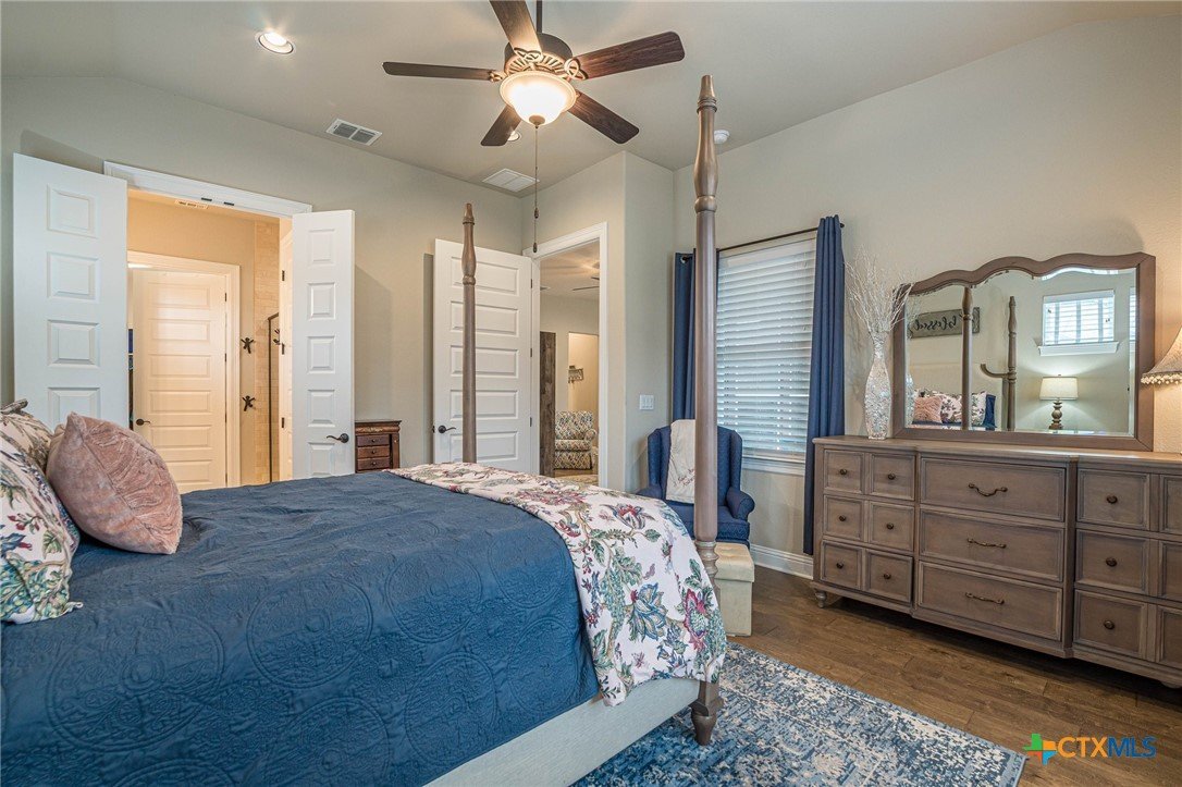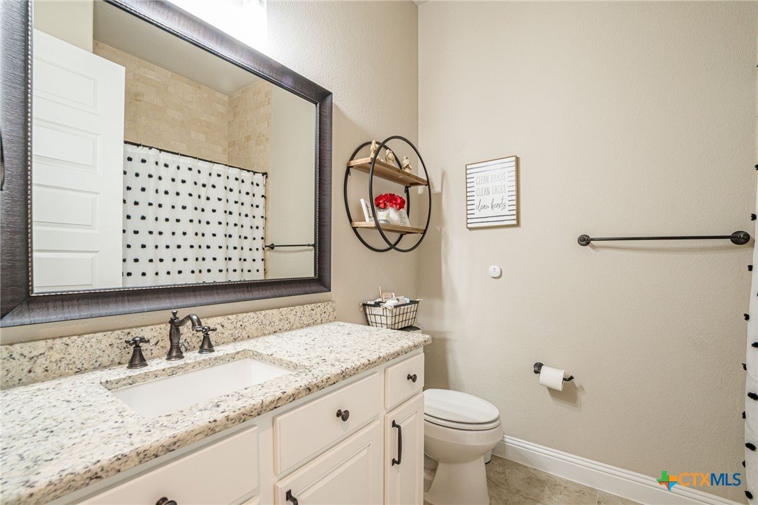 This beautifully upgraded home features a desirable split floor plan with 9' ceilings, 8' doors, a clay roof, engineered hardwood & tile floors. The stylish kitchen boasts granite countertops, large pantry, 5-burner gas cooktop, stainless steel appliances, bar seating for 4 & a dining area overlooking the back yard. The spacious primary suite offers a luxurious walk-in shower with bench seating, walk-in closet & lots of natural light. The home also includes a salt-free whole-house water softener/conditioner & a new row of bushes along the back for privacy. Living in Kissing Tree isn’t just about the home—it’s about the lifestyle. Residents enjoy 20 acres of resort-style amenities, including a resort-style pool, an indoor/outdoor activity pool, an 18-hole Troon golf course, a café, a restaurant, multiple bars, and a Biergarten. The community also offers a state-of-the-art fitness center, 18 pickleball courts, and a vibrant social scene with weekly live music, food trucks, and numerous social clubs and organized activities. This is an incredible opportunity to own a home in one of the most sought-after communities. Don’t miss out—schedule your tour today!