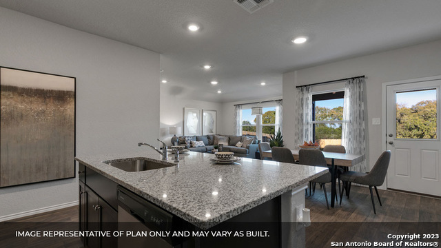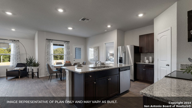 MOVE IN READY. LOCATED NEXT TO I-35! The Denton is a single story home offering 1,566 sq. ft. of living space across 3 bedrooms and 2 bathrooms. The kitchen features Quartz countertops, stainless steel appliances, decorative tile backsplash, and a walk-in pantry. The large kitchen island is open to the dining area and family room, perfect for entertaining. The main bedroom, bedroom 1, is off the dining area and features a huge walk-in closet and walk-in shower. The secondary bedrooms are on the opposite si