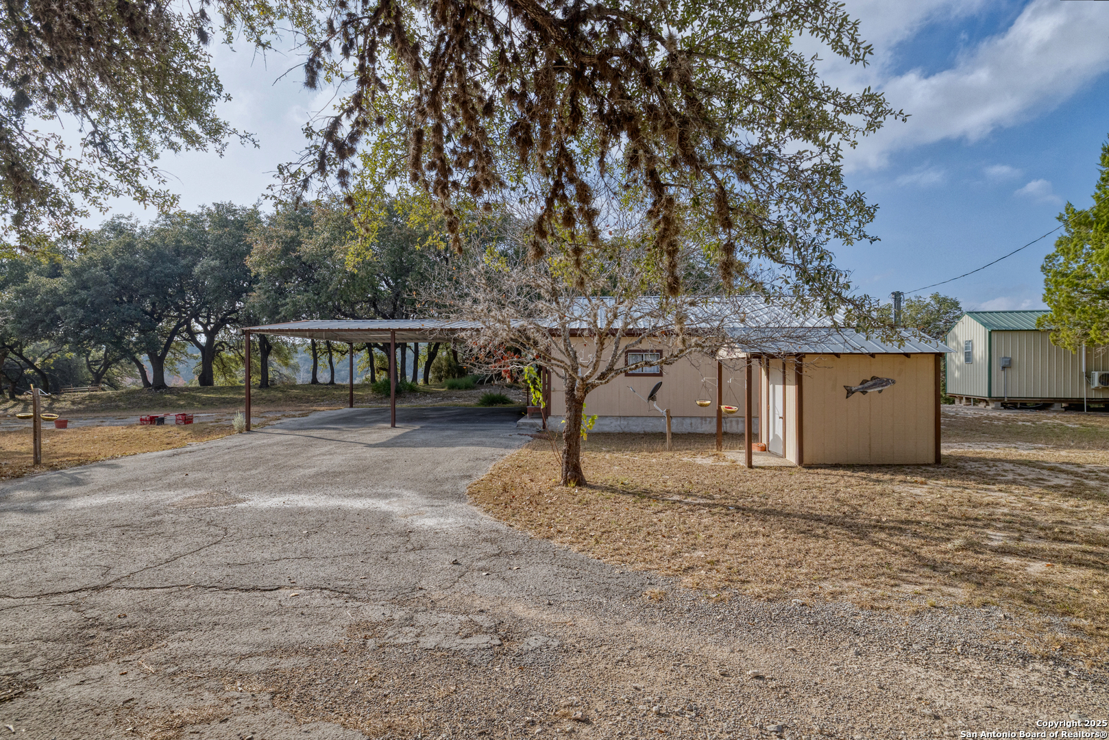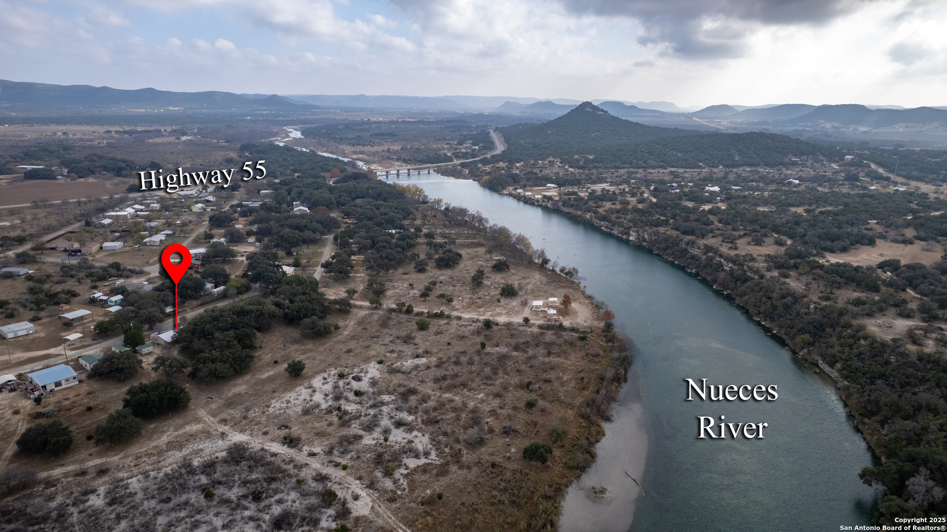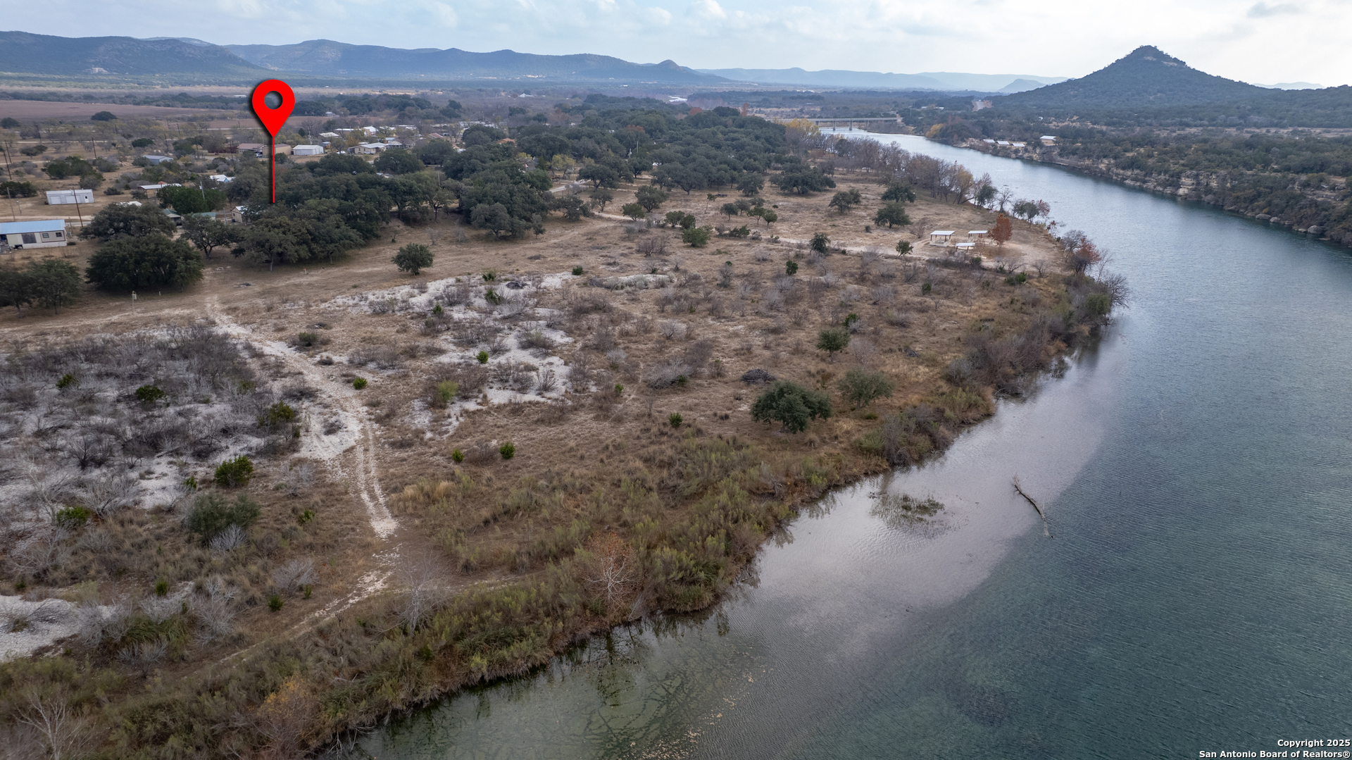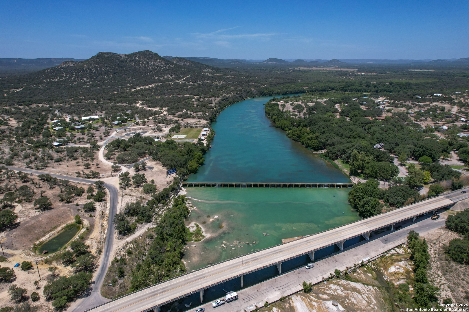 Looking for a waterfront getaway that doesn't break the bank? Priced to sell, this charming 720 square-foot cottage in Nueces Leisure Estates is ideal for getaways or even a retirement home. Open concept living/dining area has a nicely-equipped kitchen. Central air/heat, bathroom with laundry area, bedroom with ceiling fan. Outside is a generous 2-car carport, covered front porch, covered patio with bbq grill, and a storage shed. This dammed-up portion of the Nueces River is beautiful and has rolling hills that surround the glistening water view. Won't last long!