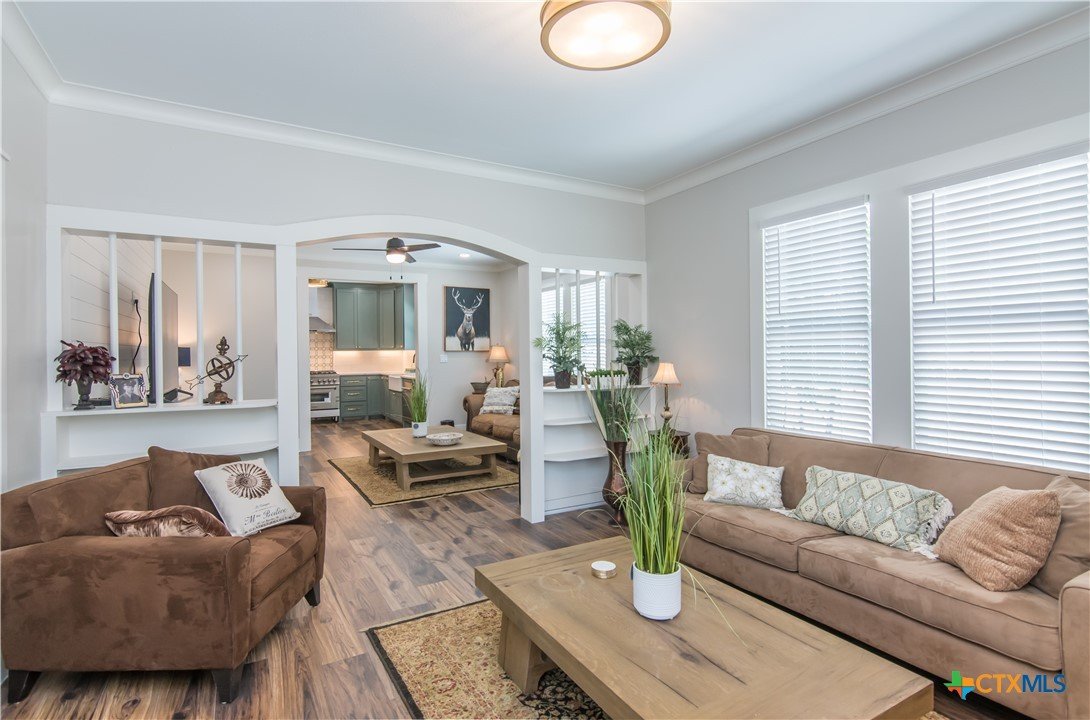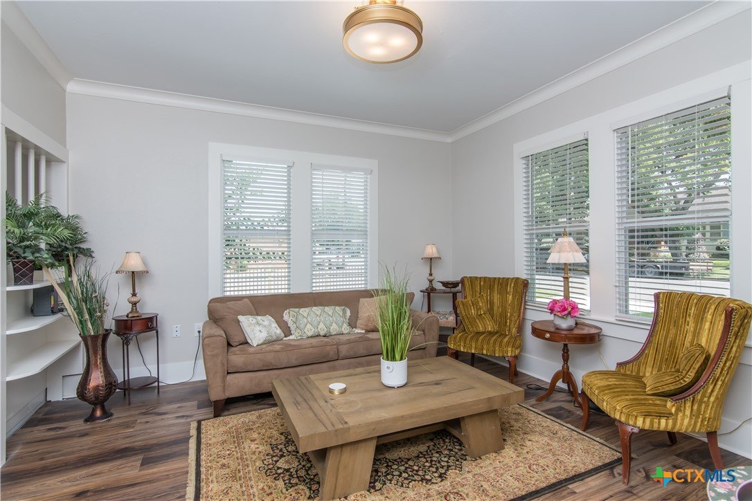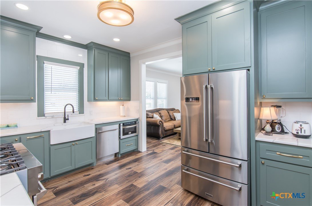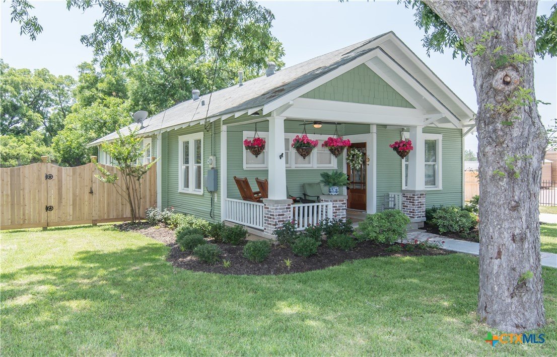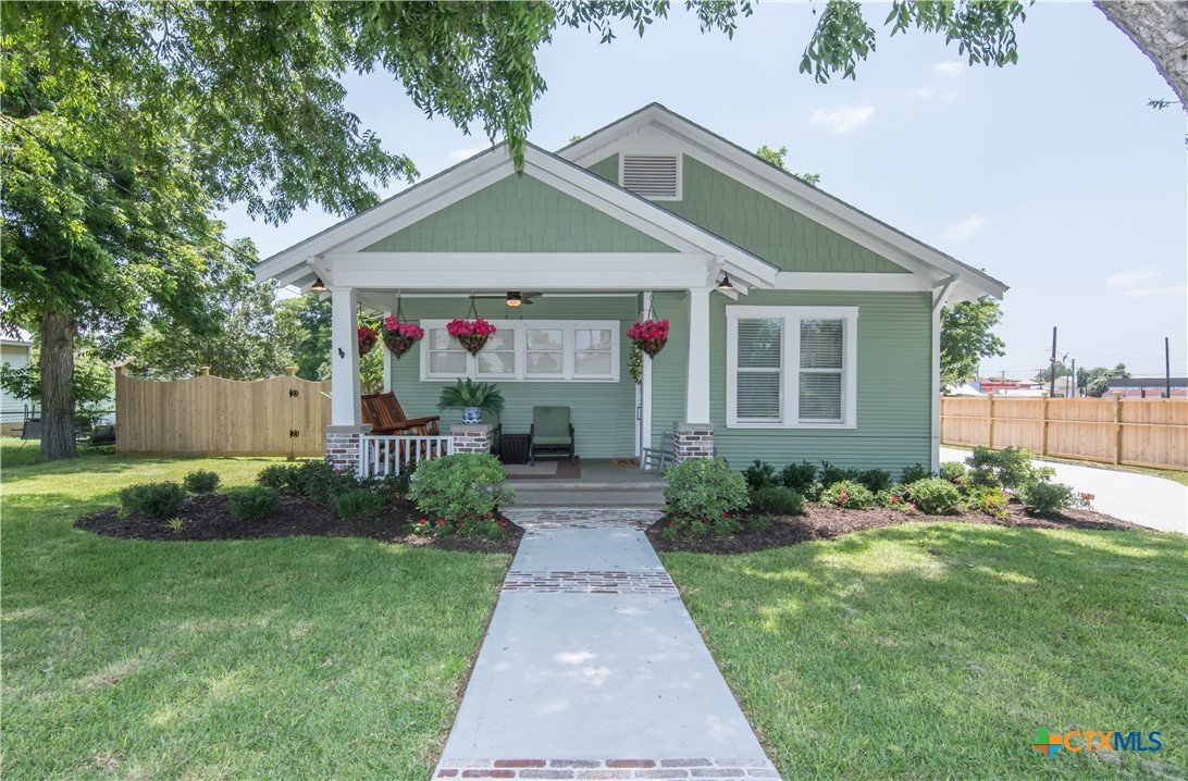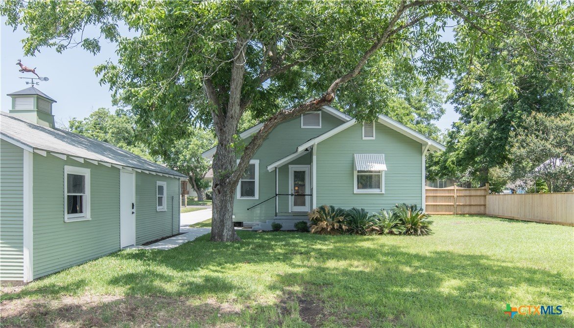 2 bedroom 2 bath, 1,484 sqft remodeled Craftsman Style home located in the heart of Shiner. This gem of a home is move in ready to be loved! RECENT ADDITIONS AND UPDATES: Double pane vinyl windows all the way around the home, the house has been recently leveled, crown moulding, new subfloor and high end engineered floors, new paint throughout the house, new glass paneled front door, updated plumbing and electrical KITCHEN: new 6 burner Z-Line gas range, Thor vent hood, under cabinet lighting, quartz backsplash, quartzite countertops (kitchen, living and baths), deep single basin farm sink, new Z-Line dishwasher, new Z-Line microwave, custom cabinets, recessed lighting, coffee bar, new Z-Line refrigerator with two freezer drawers. DINING ROOM has custom wood wainscoting GUEST BATH has split dual vanities, penny tile flooring, custom tile surround with glass door in the shower/bath combo. MASTER BEDROOM AND ENSUITE features a beautiful paint scheme, ensuite has a single vanity, private water closet and custom step in shower UTILITY ROOM: the large utility room has a washer and dryer and and gas on demand water heater. EXTERIOR FEATURES: .26 acre lot, 20x30 detached garage/workshop, new 7 foot privacy fence, newly landscaped flowerbeds, newly painted exterior on the home and garage, newly placed St. Augustine grass in the front and partially in the back of the home