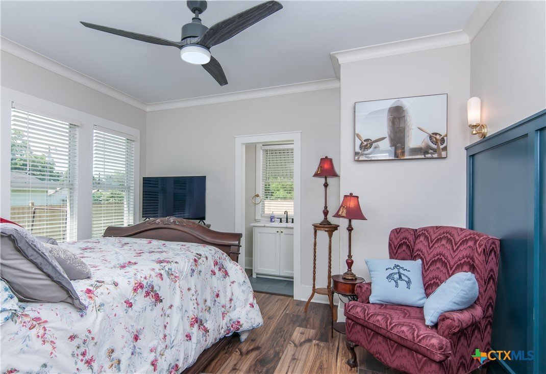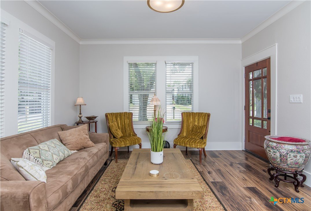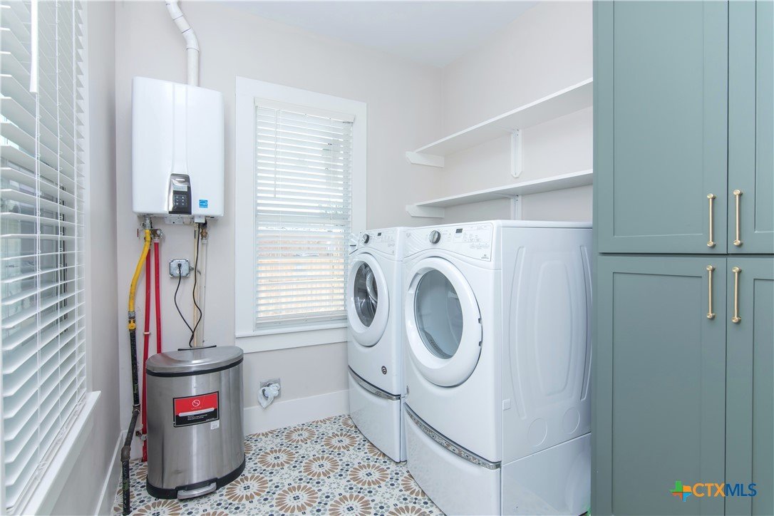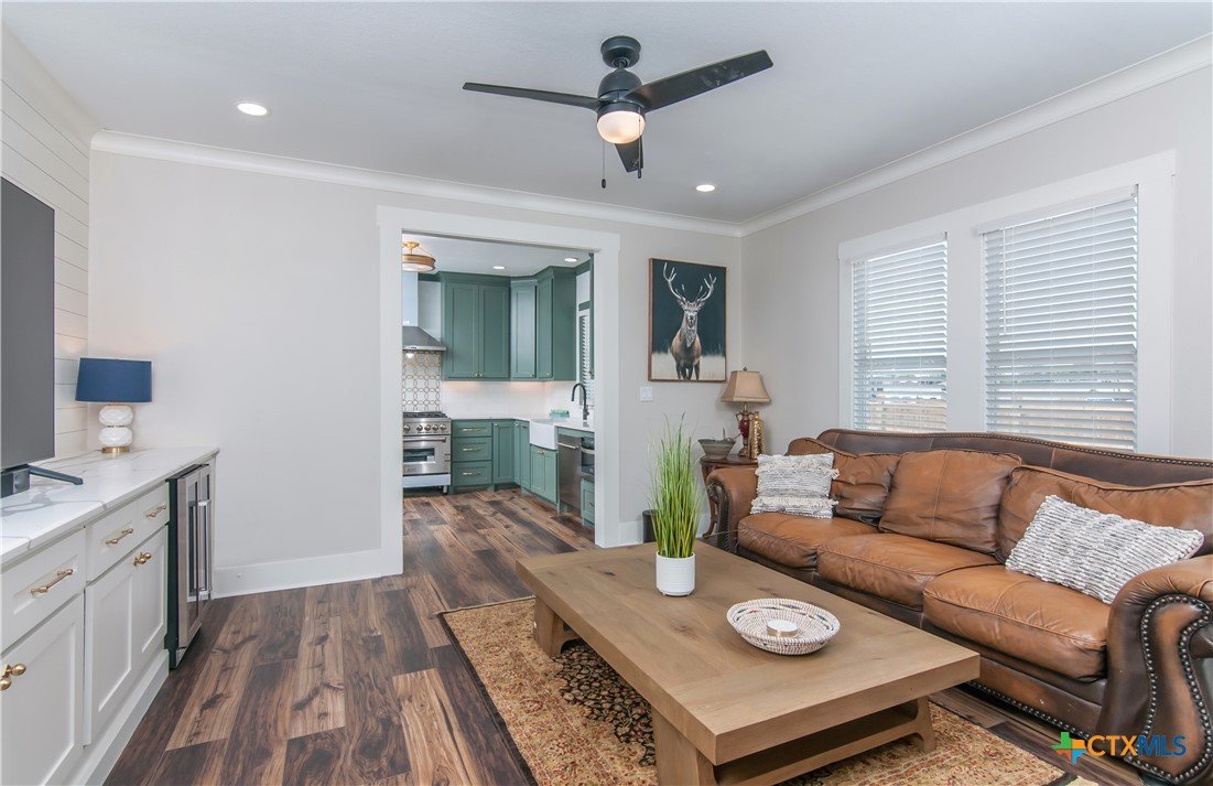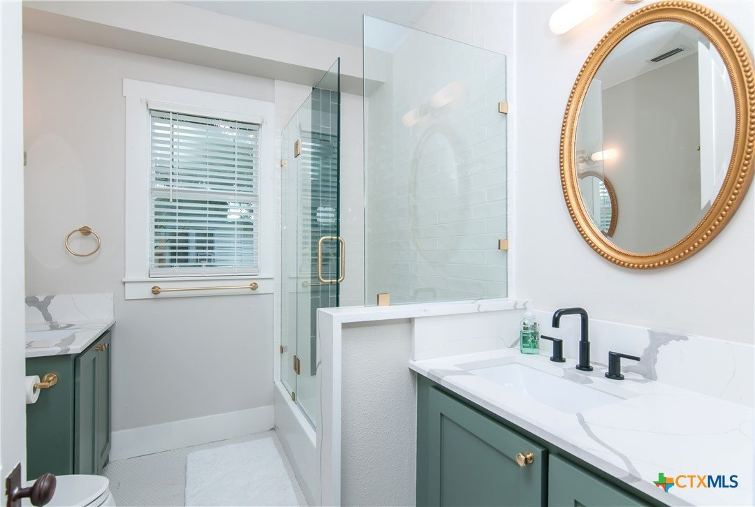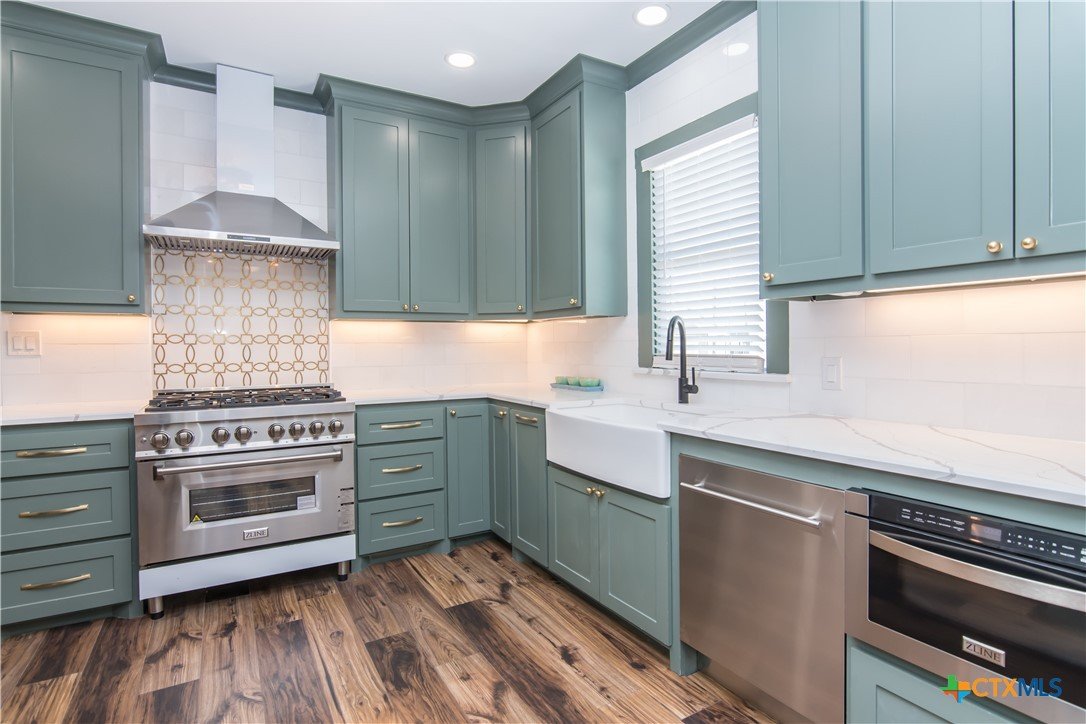 2 bedroom 2 bath, 1,484 sqft remodeled Craftsman Style home located in the heart of Shiner. This gem of a home is move in ready to be loved! RECENT ADDITIONS AND UPDATES: Double pane vinyl windows all the way around the home, the house has been recently leveled, crown moulding, new subfloor and high end engineered floors, new paint throughout the house, new glass paneled front door, updated plumbing and electrical KITCHEN: new 6 burner Z-Line gas range, Thor vent hood, under cabinet lighting, quartz backsplash, quartzite countertops (kitchen, living and baths), deep single basin farm sink, new Z-Line dishwasher, new Z-Line microwave, custom cabinets, recessed lighting, coffee bar, new Z-Line refrigerator with two freezer drawers. DINING ROOM has custom wood wainscoting GUEST BATH has split dual vanities, penny tile flooring, custom tile surround with glass door in the shower/bath combo. MASTER BEDROOM AND ENSUITE features a beautiful paint scheme, ensuite has a single vanity, private water closet and custom step in shower UTILITY ROOM: the large utility room has a washer and dryer and and gas on demand water heater. EXTERIOR FEATURES: .26 acre lot, 20x30 detached garage/workshop, new 7 foot privacy fence, newly landscaped flowerbeds, newly painted exterior on the home and garage, newly placed St. Augustine grass in the front and partially in the back of the home
