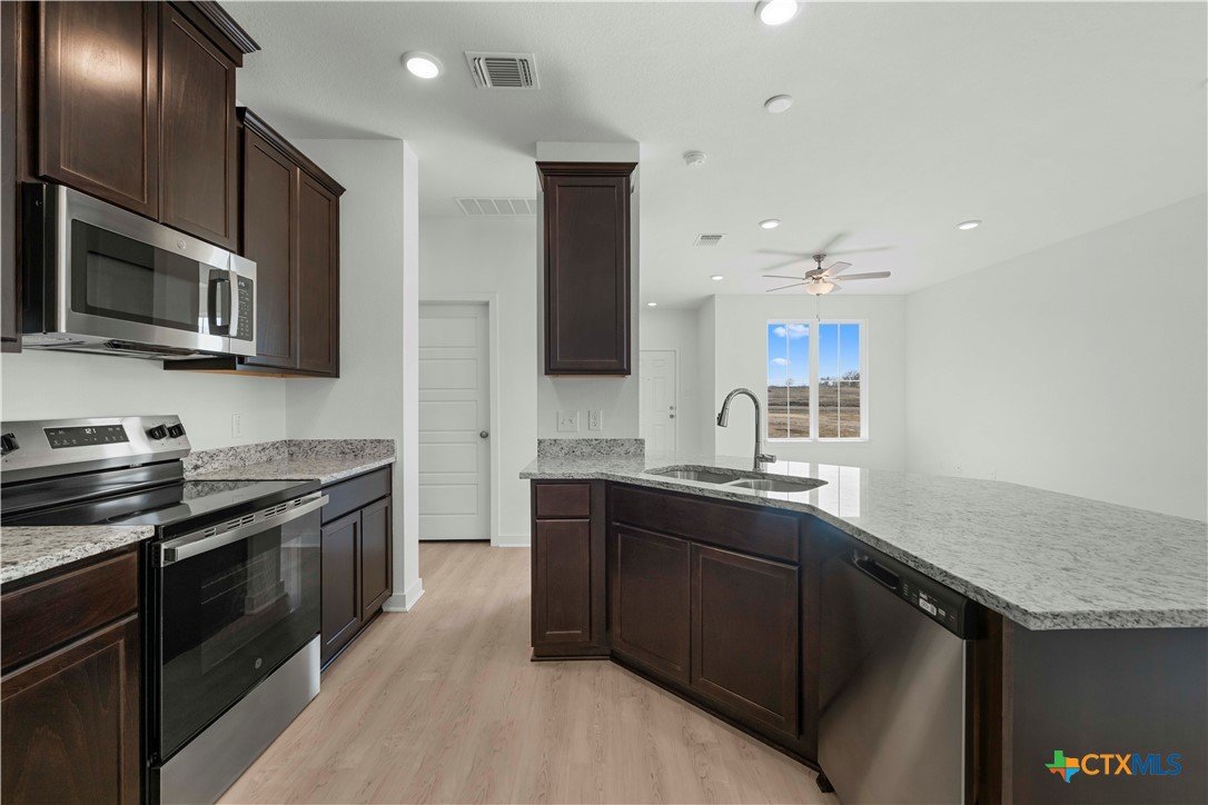 This home is one of our most popular floor plans, and for good reason! We love the way the corner kitchen looks out into the open concept living room and dining area, giving you the opportunity to feel connected with those in your home. We’ve maximized your space to give everyone in your family ample room. From your vast walk-in closet in the primary bedroom, and a separate garden tub and shower, to the large cabinet and granite countertop in the utility room, this home is luxurious without an enormous price tag. Additional options included: Integral miniblinds in the rear door, a dual primary bathroom vanity, a ceiling fan, additional led recessed lighting, kitchen is prewired for pendant lighting, 42" kitchen cabinets, and stainless steel appliances
