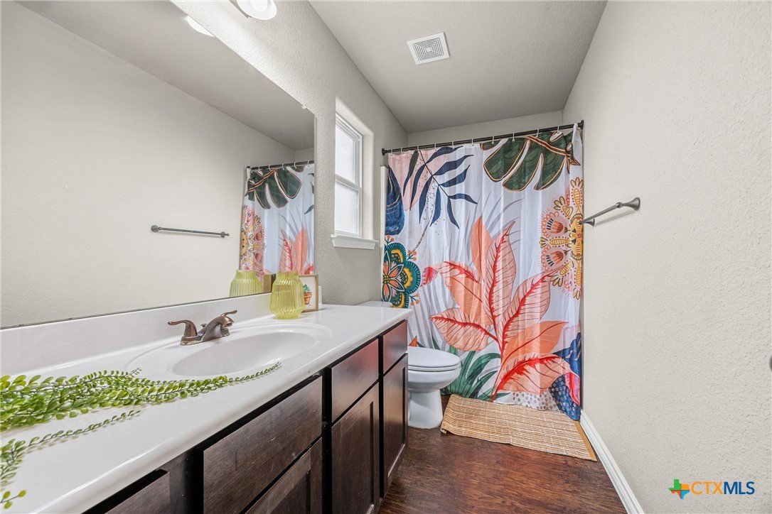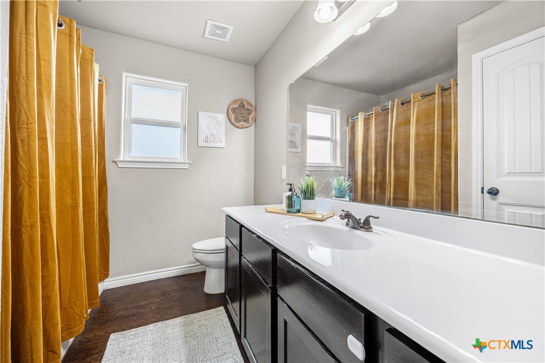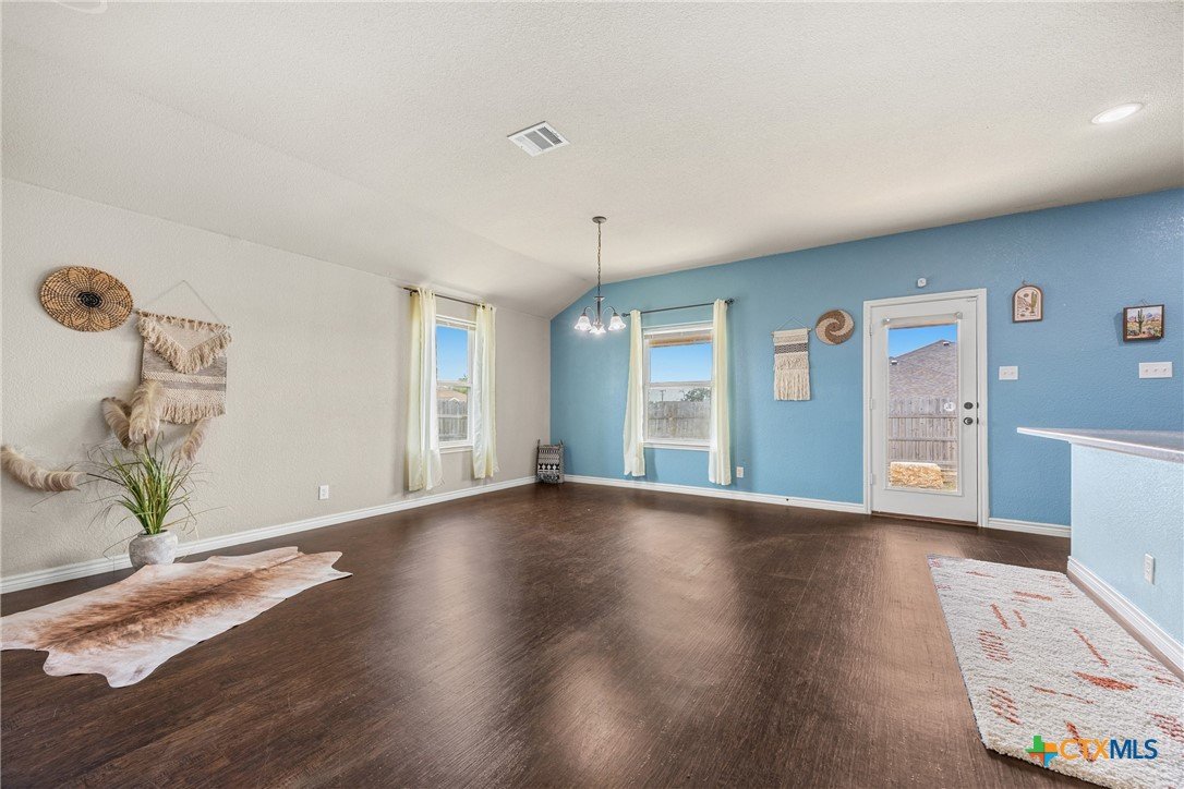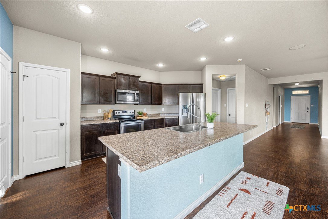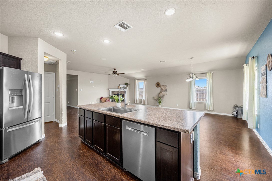 4 Bedroom Home with 3 Car Garage on Corner Lot in Goodnight Ranch! This home offers 2,228 square feet of living space and is perfectly situated on a desirable corner lot with a spacious 3 car garage. Step inside to an open-concept layout that seamlessly connects the living, dining, and kitchen areas; ideal for entertaining or family gatherings. The living room offers ample space and a charming brick wood-burning fireplace for cozy nights in. The kitchen features a large island and breakfast bar with sink, granite countertops, stainless steel appliances, recessed lighting, and plenty of cabinetry. The primary suite boasts high ceilings and a luxurious en-suite bathroom with a walk-in shower featuring dual shower heads, a double vanity, and a walk-in closet. A secondary bedroom also includes a private en-suite, while the remaining bedrooms offer plush carpet and ceiling fans for comfort. Outside, enjoy a covered patio, fire pit, and a private backyard perfect for relaxing or entertaining. Conveniently located near schools, shopping, restaurants, and medical facilities, with a short drive to Fort Hood and easy access to Highway 195 and Austin. Schedule your showing today! Home is being sold AS IS. BRING ALL OFFERS!