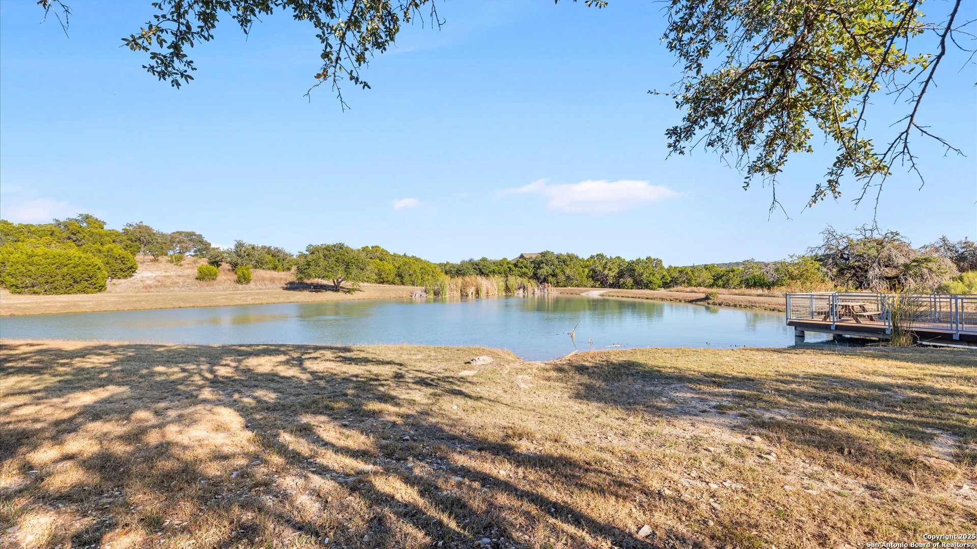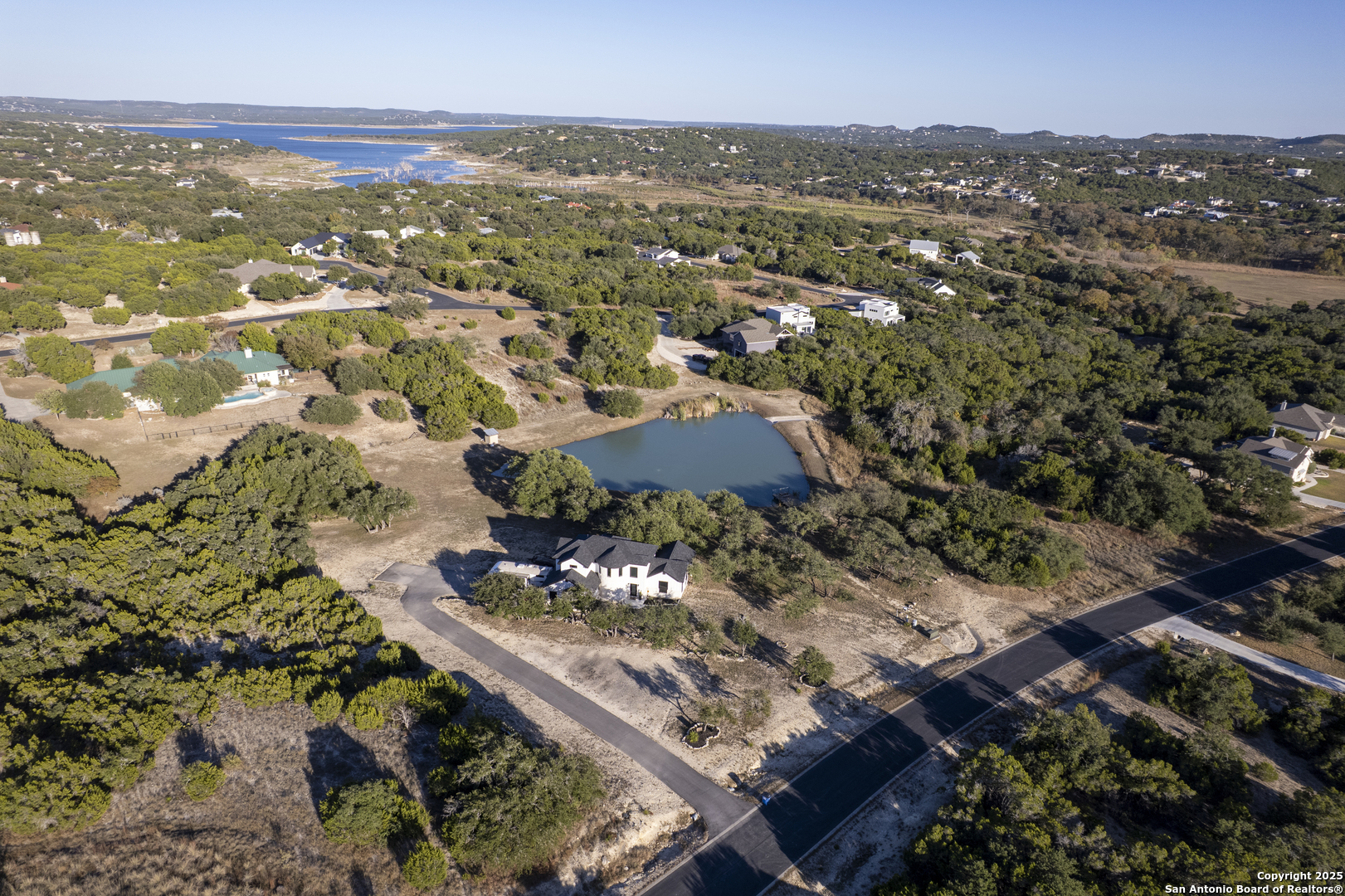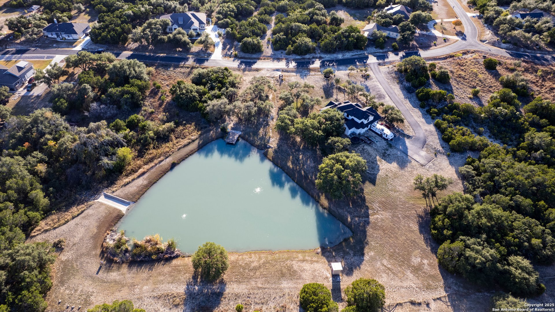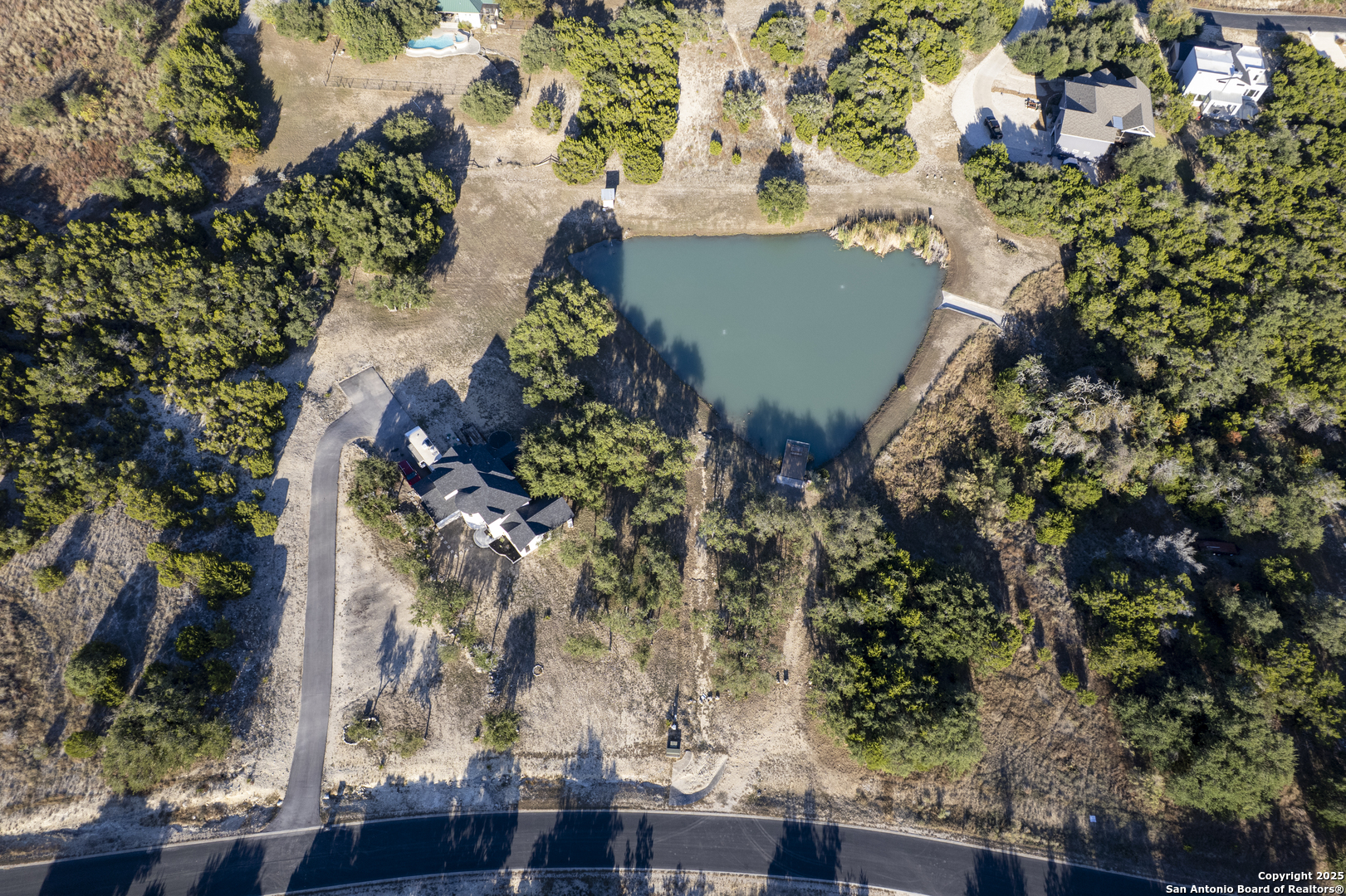 Experience the perfect balance of luxury and Hill Country charm in this stunning custom-built two-story home, ideally situated on just over an acre in the exclusive gated community of Ensenada Shores at Canyon Lake. This 4-bedroom, 2.5-bath retreat offers a thoughtfully designed floor plan with high ceilings, natural light, and elegant custom finishes throughout. Step inside to an open-concept living area that highlights picturesque views of the neighborhood pond and the rolling Texas Hill Country beyond. Step down into the sunken living room that has an electric fireplace and overlooks the beautiful pond. The gourmet kitchen features custom cabinetry, chop block countertops, and black appliances-perfect for both entertaining and everyday living. The spacious primary suite provides a private retreat with a spa-inspired bath and generous walk-in closet, while the upstairs offers 3 additional bedrooms bathroom and plenty of storage. Just outside your door, enjoy breathtaking sunsets and peaceful pond views in your backyard! This level lot offers over an acre of usable space with room to relax, garden, or gather with family and friends. Location is PRIME - Ensenada Shores offers resort-style living with top-notch amenities, including a lakefront park and pavilion, walking and biking trails, playground, and neighborhood swimming pool. Conveniently located on the southern shore of Canyon Lake, you'll enjoy quick access to entertainment, grocery stores, and restaurants-everything you need just minutes away. Make sure you look for the sign near the stairs to find the hidden room!!
