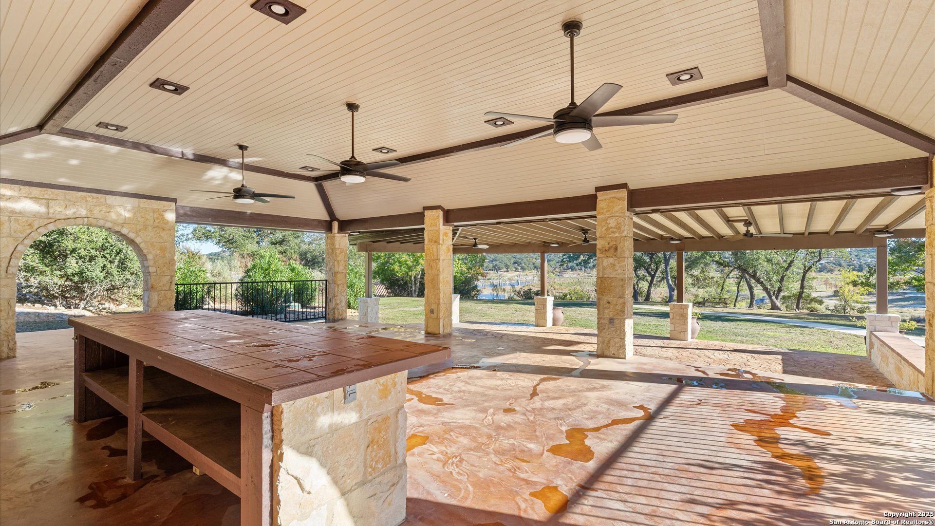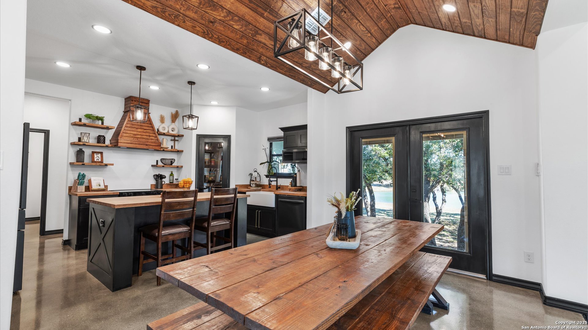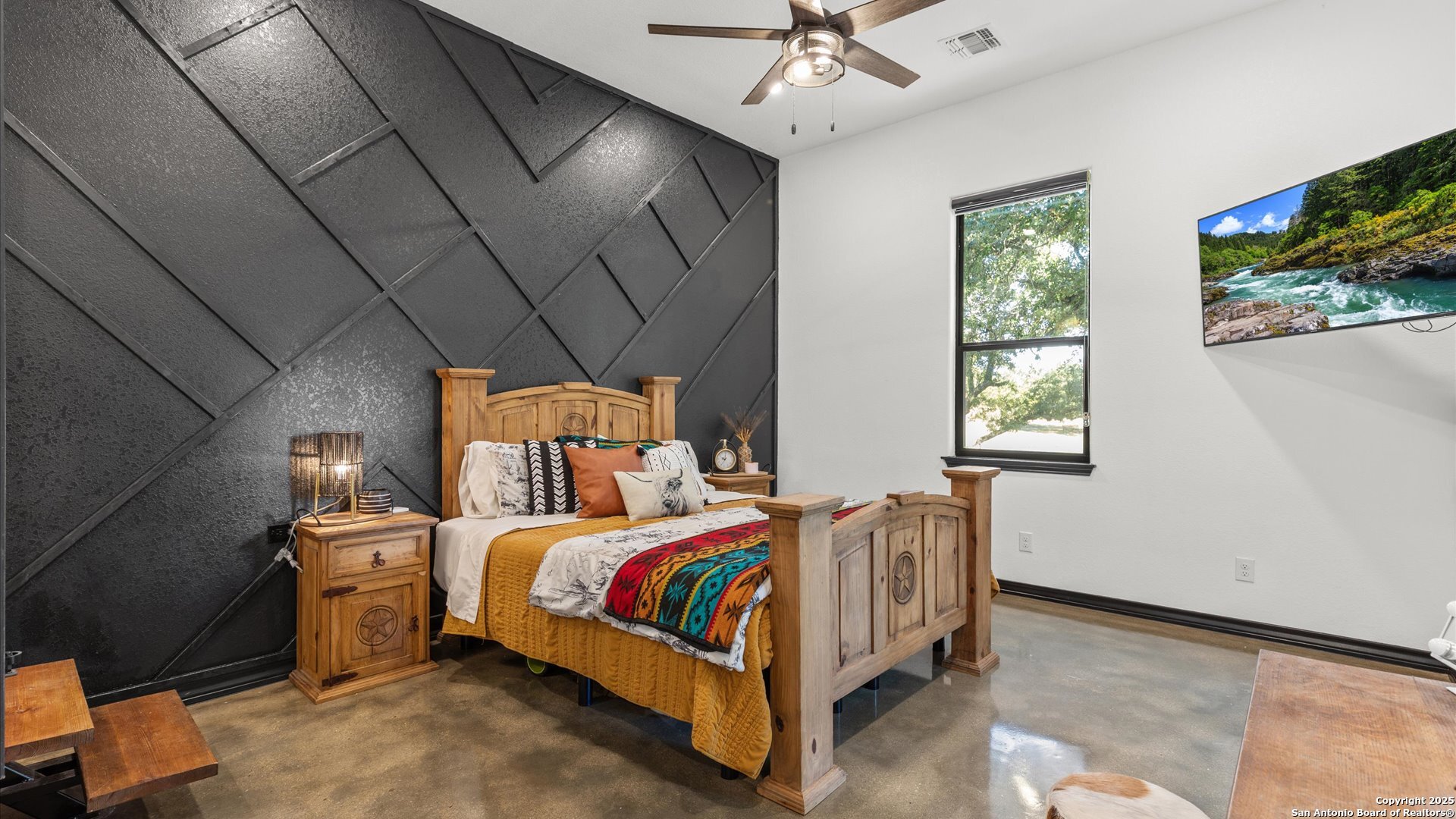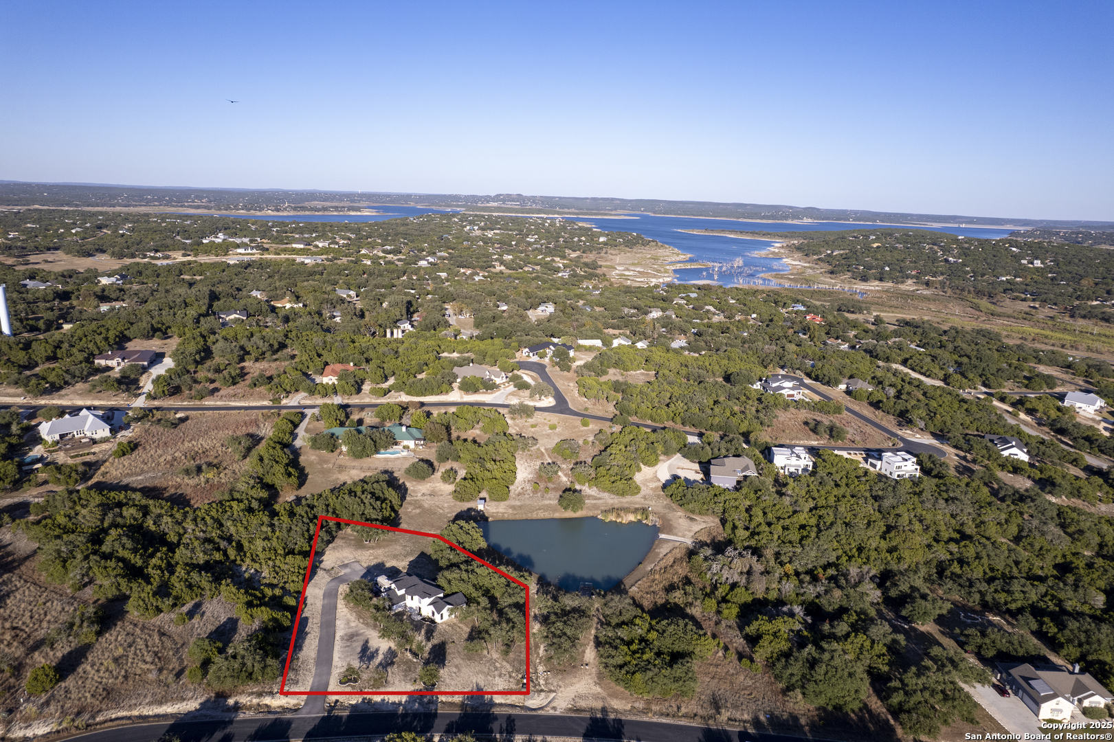 Experience the perfect balance of luxury and Hill Country charm in this stunning custom-built two-story home, ideally situated on just over an acre in the exclusive gated community of Ensenada Shores at Canyon Lake. This 4-bedroom, 2.5-bath retreat offers a thoughtfully designed floor plan with high ceilings, natural light, and elegant custom finishes throughout. Step inside to an open-concept living area that highlights picturesque views of the neighborhood pond and the rolling Texas Hill Country beyond. Step down into the sunken living room that has an electric fireplace and overlooks the beautiful pond. The gourmet kitchen features custom cabinetry, chop block countertops, and black appliances-perfect for both entertaining and everyday living. The spacious primary suite provides a private retreat with a spa-inspired bath and generous walk-in closet, while the upstairs offers 3 additional bedrooms bathroom and plenty of storage. Just outside your door, enjoy breathtaking sunsets and peaceful pond views in your backyard! This level lot offers over an acre of usable space with room to relax, garden, or gather with family and friends. Location is PRIME - Ensenada Shores offers resort-style living with top-notch amenities, including a lakefront park and pavilion, walking and biking trails, playground, and neighborhood swimming pool. Conveniently located on the southern shore of Canyon Lake, you'll enjoy quick access to entertainment, grocery stores, and restaurants-everything you need just minutes away. Make sure you look for the sign near the stairs to find the hidden room!!