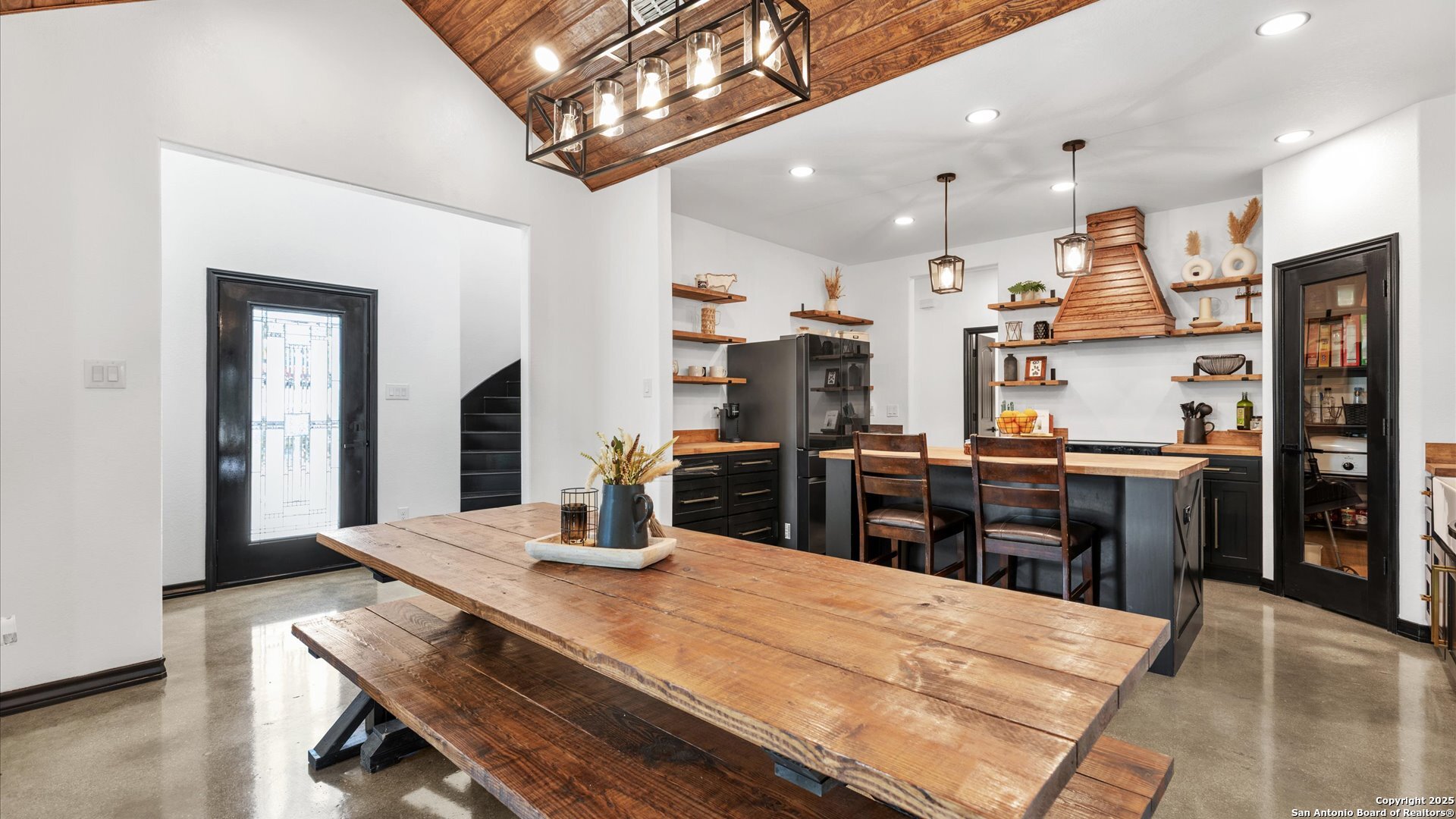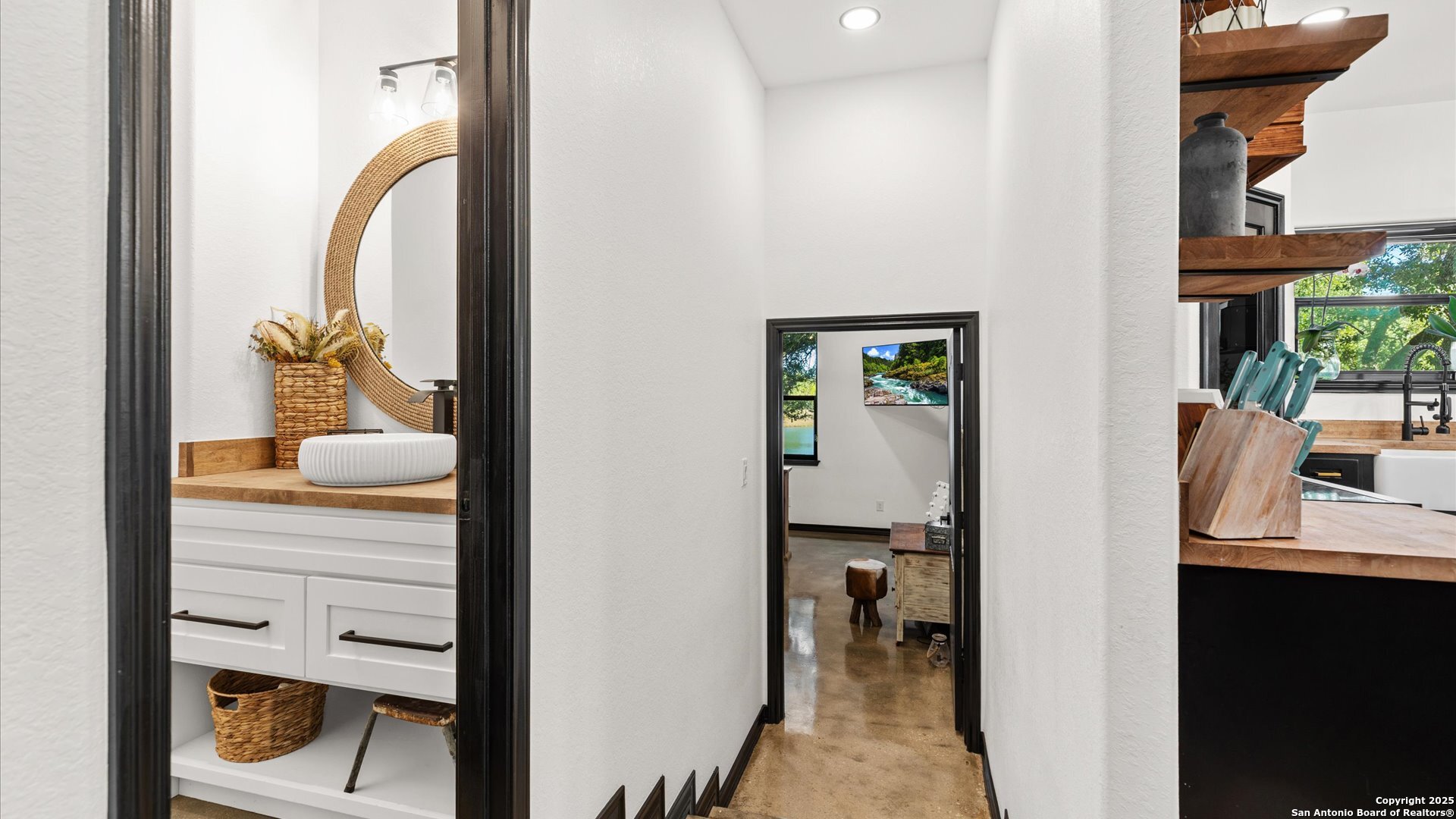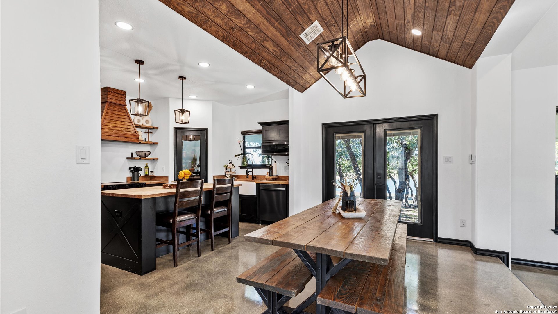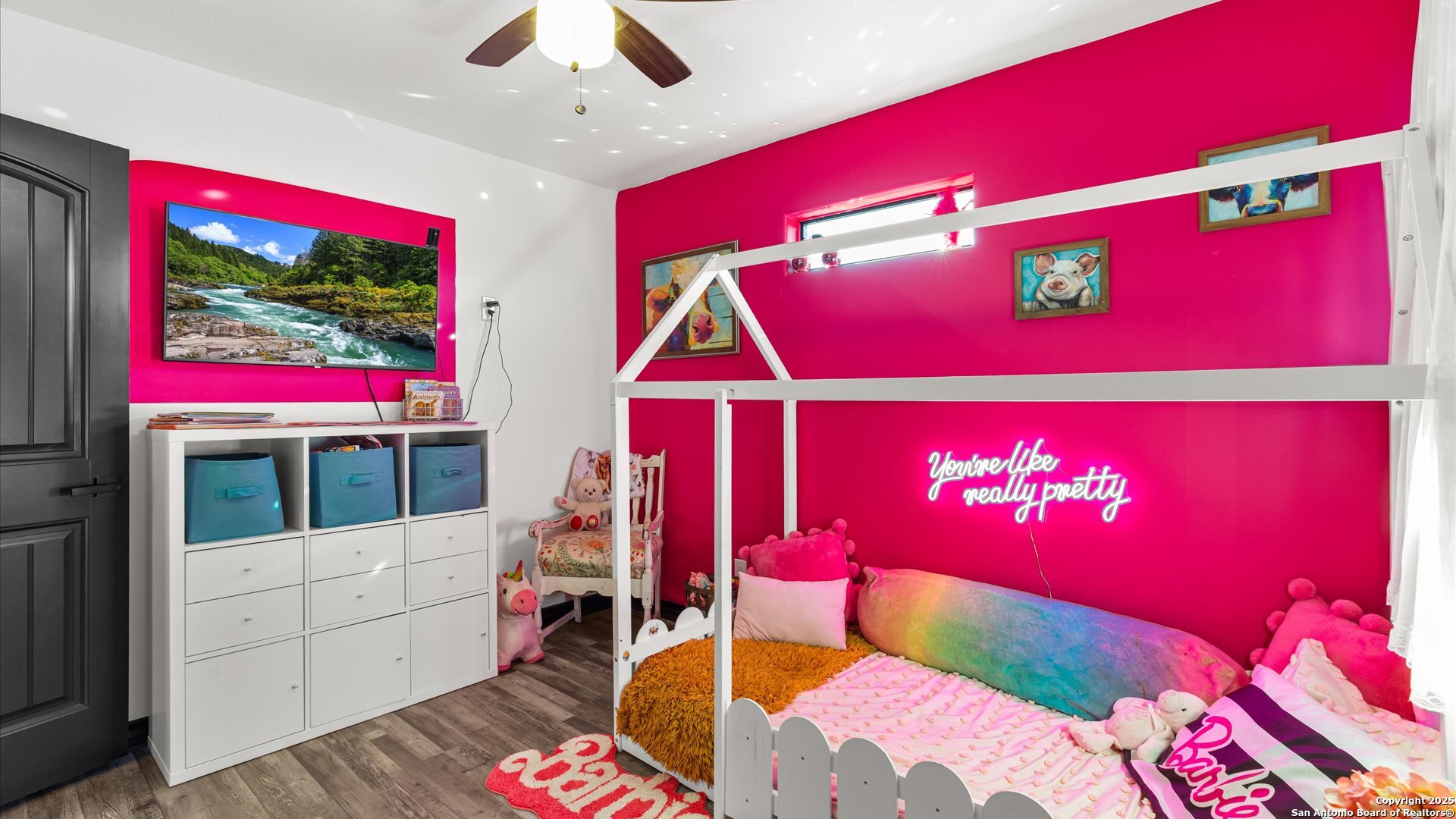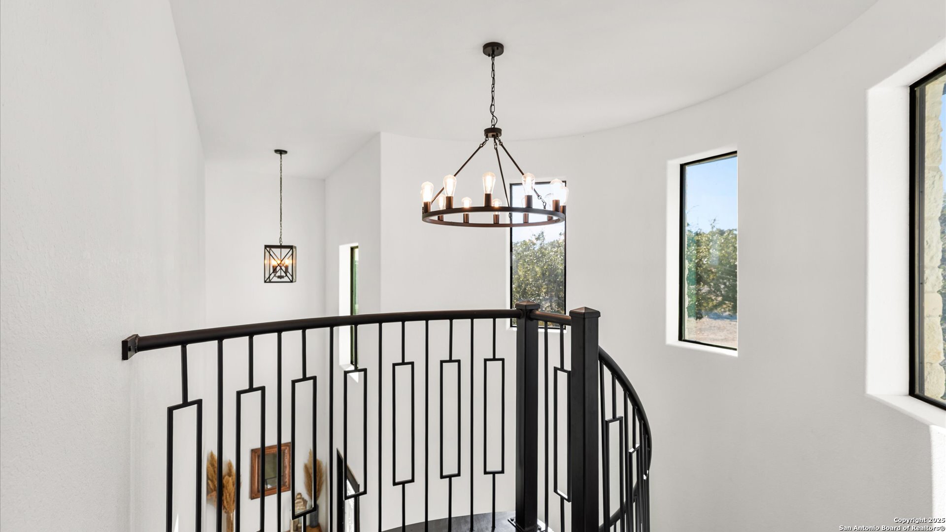 Experience the perfect balance of luxury and Hill Country charm in this stunning custom-built two-story home, ideally situated on just over an acre in the exclusive gated community of Ensenada Shores at Canyon Lake. This 4-bedroom, 2.5-bath retreat offers a thoughtfully designed floor plan with high ceilings, natural light, and elegant custom finishes throughout. Step inside to an open-concept living area that highlights picturesque views of the neighborhood pond and the rolling Texas Hill Country beyond. Step down into the sunken living room that has an electric fireplace and overlooks the beautiful pond. The gourmet kitchen features custom cabinetry, chop block countertops, and black appliances-perfect for both entertaining and everyday living. The spacious primary suite provides a private retreat with a spa-inspired bath and generous walk-in closet, while the upstairs offers 3 additional bedrooms bathroom and plenty of storage. Just outside your door, enjoy breathtaking sunsets and peaceful pond views in your backyard! This level lot offers over an acre of usable space with room to relax, garden, or gather with family and friends. Location is PRIME - Ensenada Shores offers resort-style living with top-notch amenities, including a lakefront park and pavilion, walking and biking trails, playground, and neighborhood swimming pool. Conveniently located on the southern shore of Canyon Lake, you'll enjoy quick access to entertainment, grocery stores, and restaurants-everything you need just minutes away. Make sure you look for the sign near the stairs to find the hidden room!!