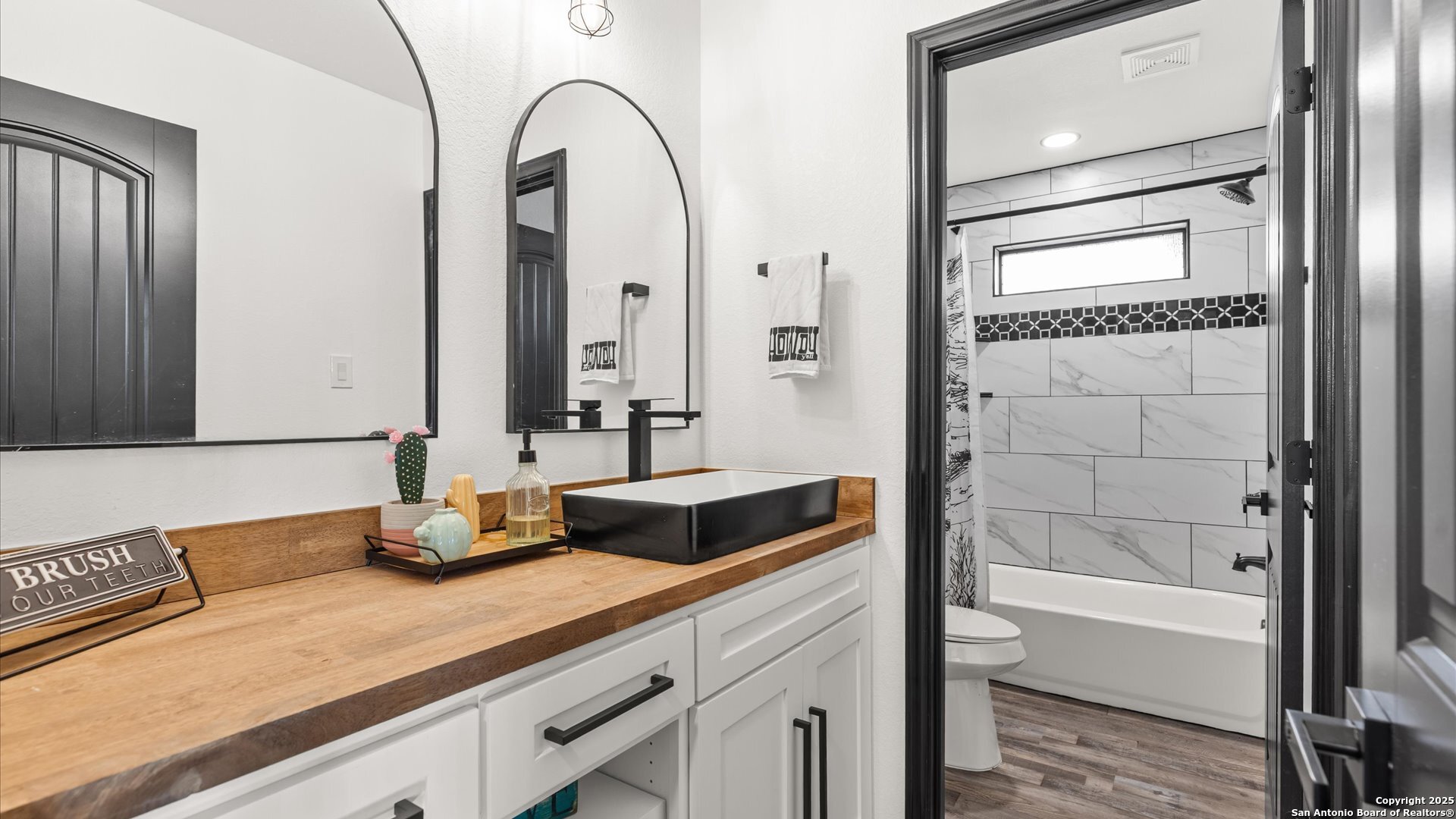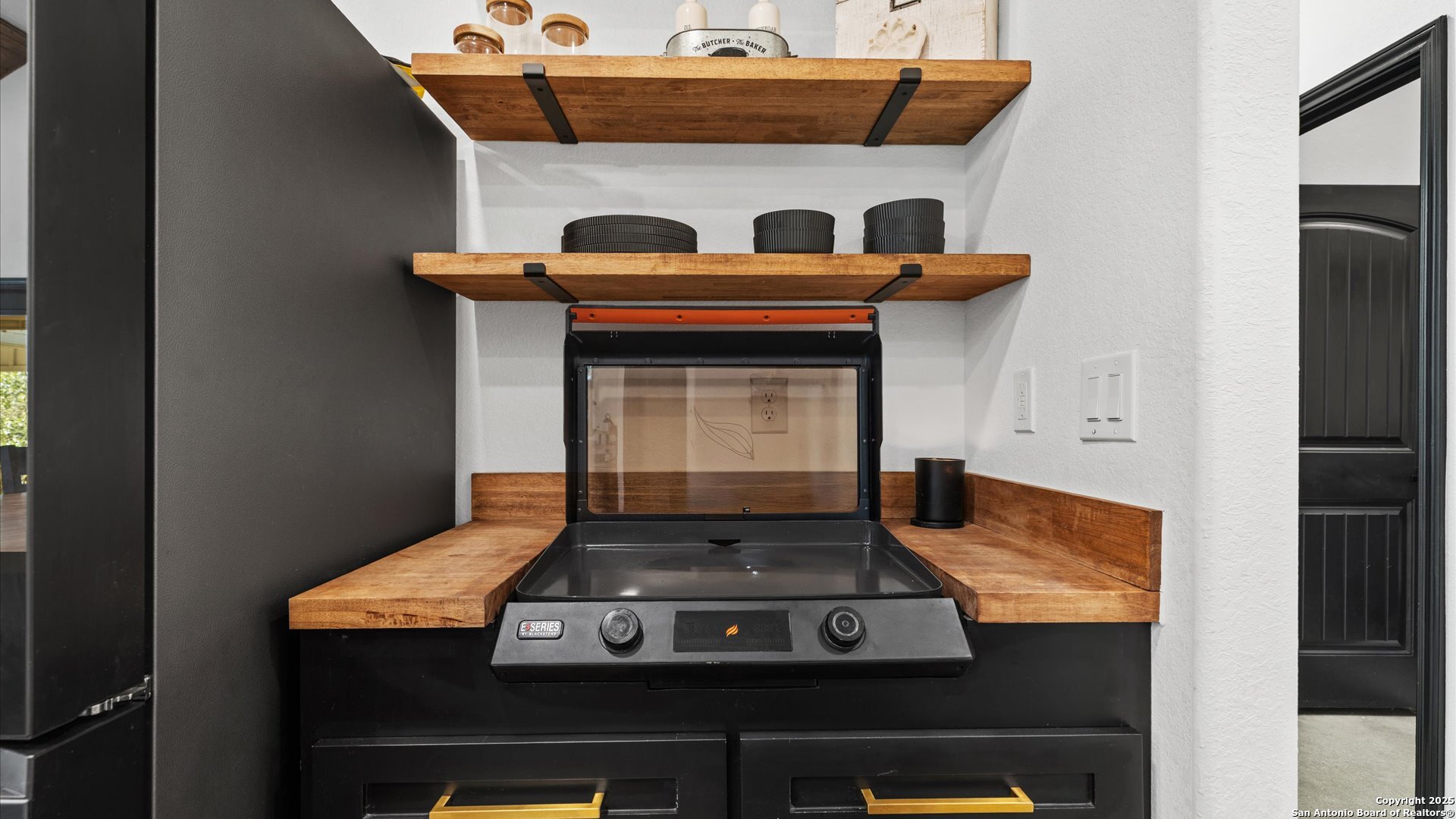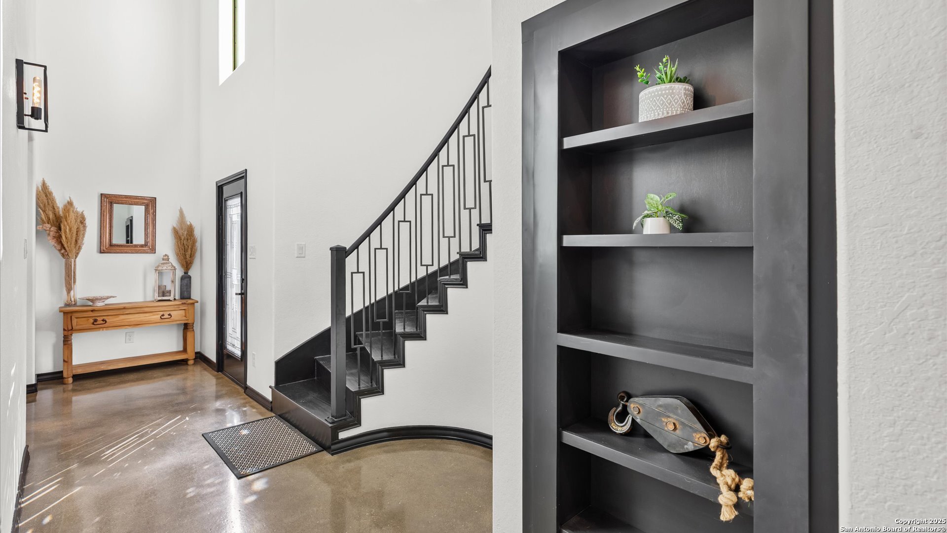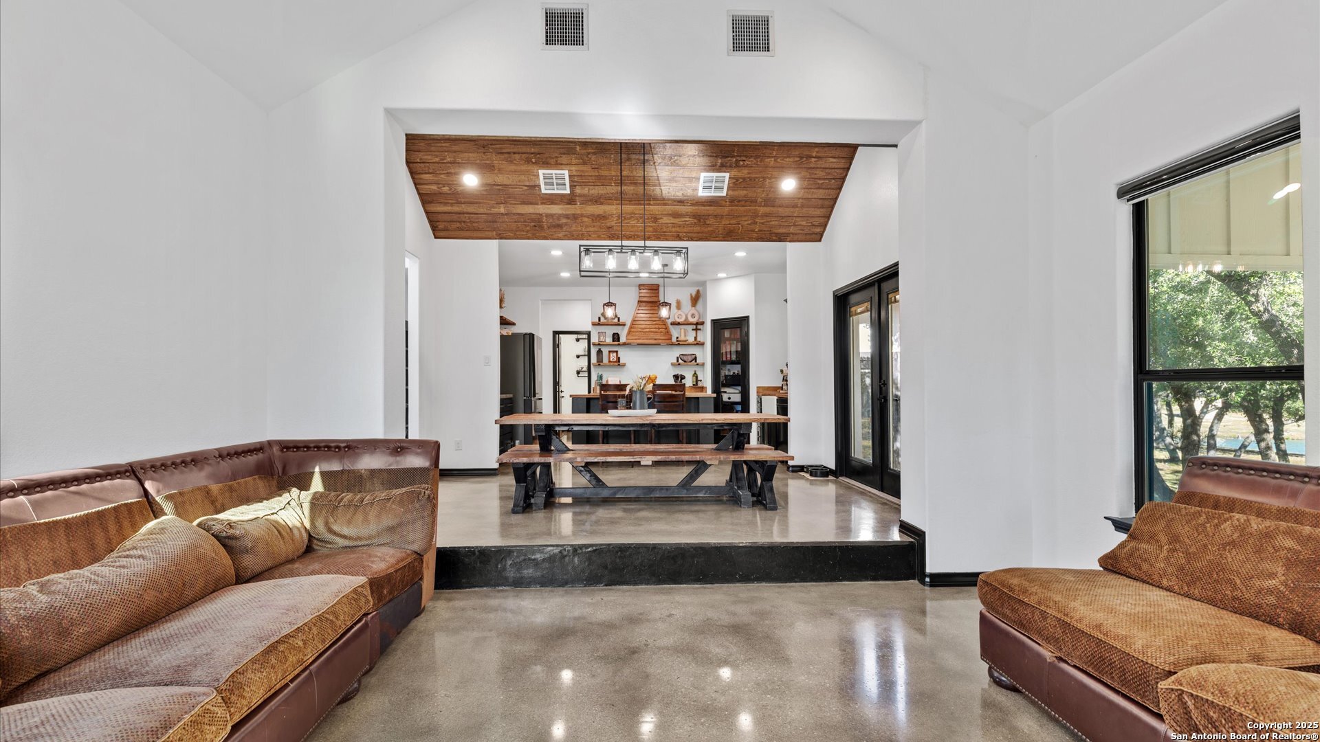 Experience the perfect balance of luxury and Hill Country charm in this stunning custom-built two-story home, ideally situated on just over an acre in the exclusive gated community of Ensenada Shores at Canyon Lake. This 4-bedroom, 2.5-bath retreat offers a thoughtfully designed floor plan with high ceilings, natural light, and elegant custom finishes throughout. Step inside to an open-concept living area that highlights picturesque views of the neighborhood pond and the rolling Texas Hill Country beyond. Step down into the sunken living room that has an electric fireplace and overlooks the beautiful pond. The gourmet kitchen features custom cabinetry, chop block countertops, and black appliances-perfect for both entertaining and everyday living. The spacious primary suite provides a private retreat with a spa-inspired bath and generous walk-in closet, while the upstairs offers 3 additional bedrooms bathroom and plenty of storage. Just outside your door, enjoy breathtaking sunsets and peaceful pond views in your backyard! This level lot offers over an acre of usable space with room to relax, garden, or gather with family and friends. Location is PRIME - Ensenada Shores offers resort-style living with top-notch amenities, including a lakefront park and pavilion, walking and biking trails, playground, and neighborhood swimming pool. Conveniently located on the southern shore of Canyon Lake, you'll enjoy quick access to entertainment, grocery stores, and restaurants-everything you need just minutes away. Make sure you look for the sign near the stairs to find the hidden room!!