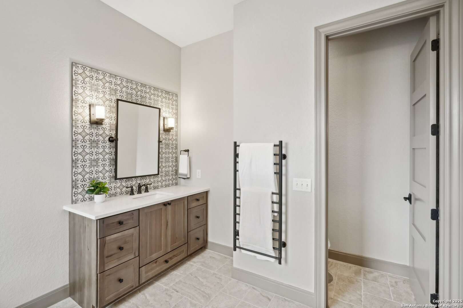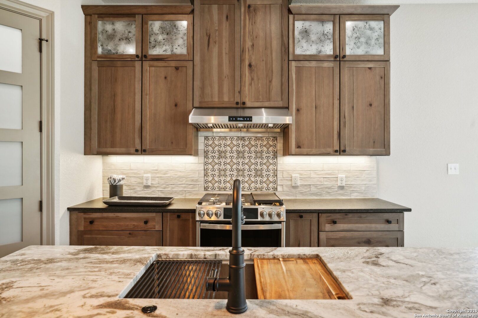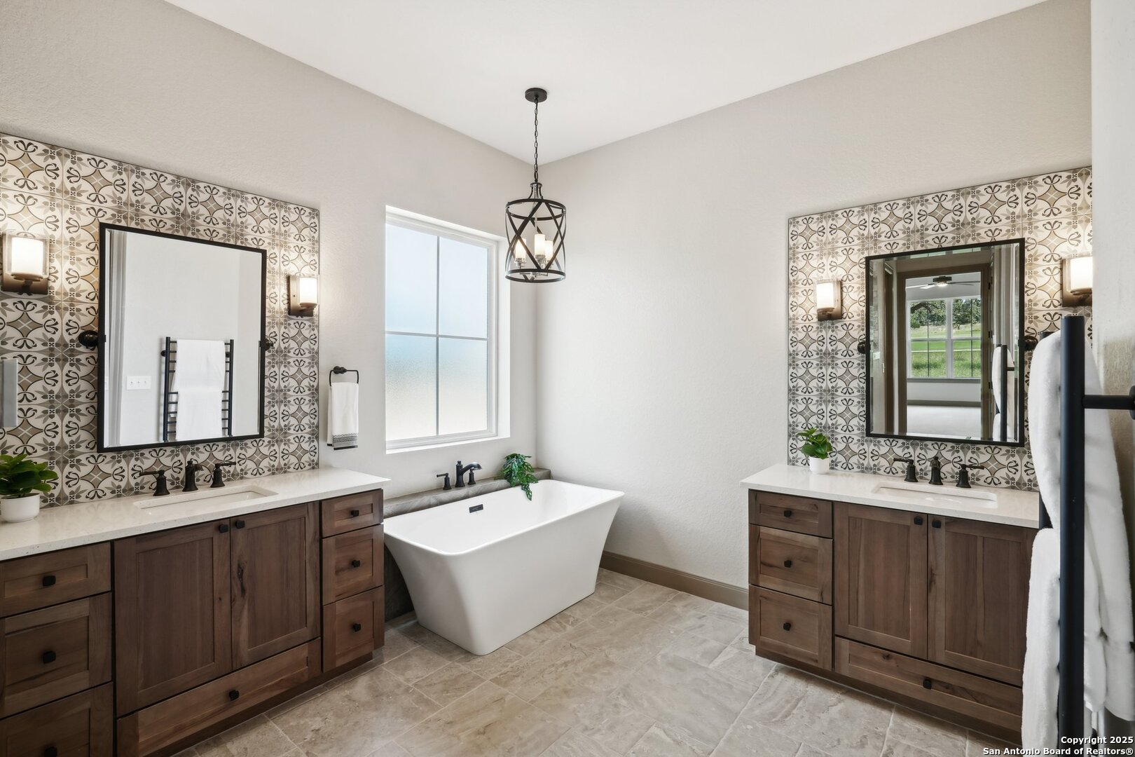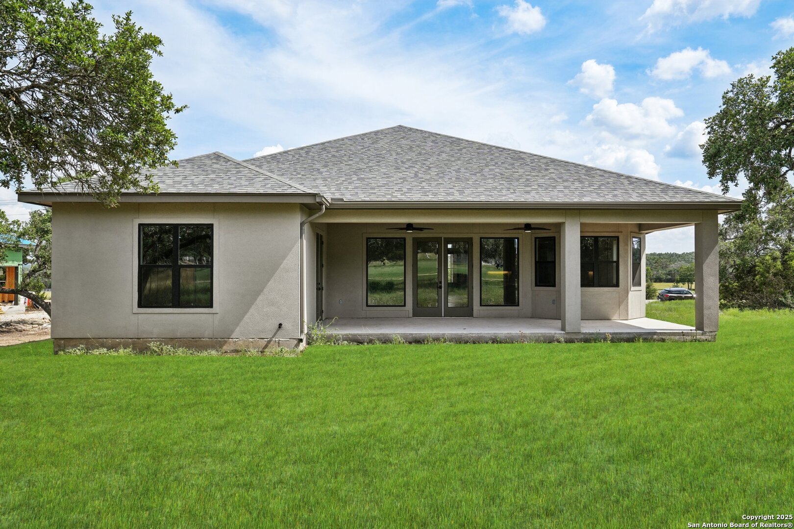 Seller is motivated and will consider assistance with Closing Costs/Buy Down. Preferred Lender Credit is available as well. This well-appointed, New Construction property has a comfortable open floor plan with exceptional upgrades. As you come into the spacious entry, you'll notice majestic ceilings that sparkle with well-designed lighting. The living area has a fun contemporary fireplace with multiple flame and lighting options. Every bathroom has designer tile, heated towel bar and adjustable mirrors. The primary bath area is complete with soaking tub, large shower and two ample closets. Quality construction features include 2x6 exterior framing and spray foam insulation among other features providing durability and efficiency. The back porch sits deep in its lot with a serene view of majestic oaks, blue sky and green grass near the 5th hole of the Vaaler Creek Golf Course and the front faces a sprawling horse farm...what a serene and private lifestyle! The Golf Club offers 3 rounds of golf per month to homeowners paired with access to the Junior Olympic Pool, the pavilion and Grille, a fully stocked lake and a Golf Pro Shop. Guest accommodations are available near the clubhouse. Nestled at the very edge of the Texas Hill Country, it's easy to explore trails or just venture a few miles to the Blanco River and the charming town of Blanco or make an excursion to Fredericksburg, Dripping Springs, Wimberly, Canyon Lake, Austin or San Antonio. Then return home to enjoy the comfort, luxury and unique lifestyle that 411 George Dolson has waiting for you.