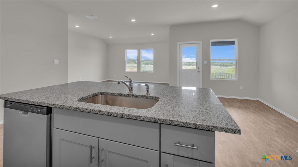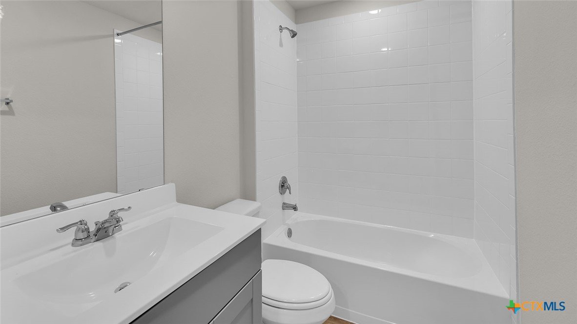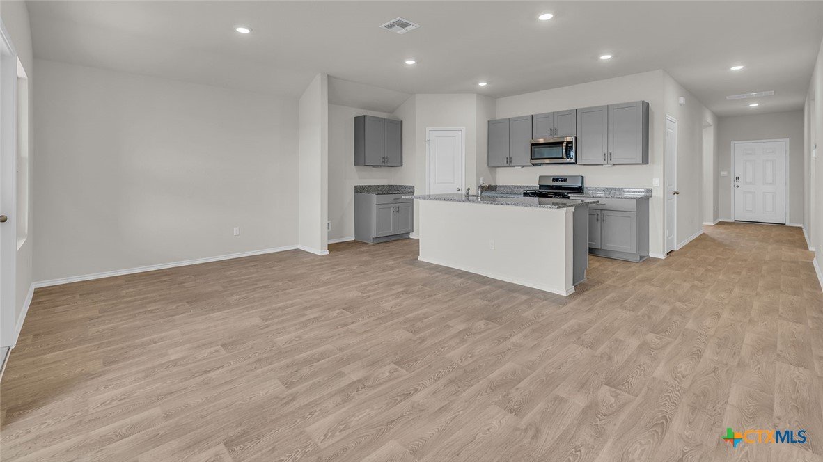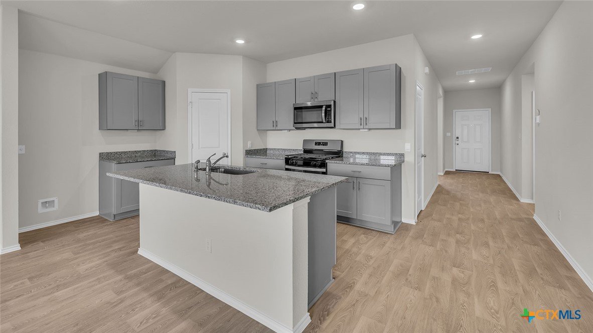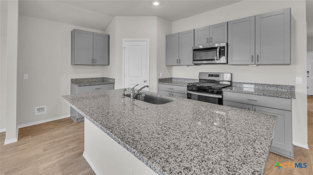 MOVE IN READY! OVERSIZE LOT! The Irvine is one of our one-story floorplans offered at Bollinger in Maxwell, Texas. This 4-bedroom, 2-bathroom home includes a 2-car garage within its 1,796 square feet of comfortable living space. Step into this home from the covered entryway and make your way down the hall to the main living space. The open kitchen looks out to your dining area and family room, allowing for conversations to easily flow from all spaces. The L-shaped kitchen features an island with undermount sink, granite countertops, 4" backsplash, a pantry closet, 36” upper cabinets, and stainless-steel appliances, including a gas range. Off the family room is the primary bedroom, with its own private bathroom. This relaxing bathroom space features a walk-in shower, cultured marble vanity with dual sinks, and separate door to the toilet for privacy. A walk-in closet with generous shelving is connected to the bathroom. At the front of the house, you will find bedroom 2 and 3, with the secondary bathroom conveniently located between the rooms. Bathroom 2 includes a shower/tub combination and open shelving for extra storage or décor. Across the foyer and down a short hall is the utility room and bedroom 4. Whether you use these rooms as an office, child’s room or guest room, there is plenty of space for work, sleep and play. The Irvine includes vinyl flooring throughout the common areas of the home, and carpet in the bedrooms. A covered back patio is also included in the Irvine plan. All our new homes feature Bermuda sod, an irrigation system in the front and back yard, and a 6’ privacy fence around the back yard. This home comes with our America’s Smart Home base package, which includes the Front Door Bell Deadbolt Lock, Home Hub, Thermostat, and Deako Smart Switches.