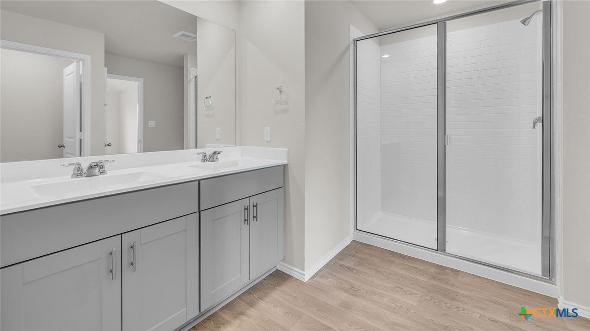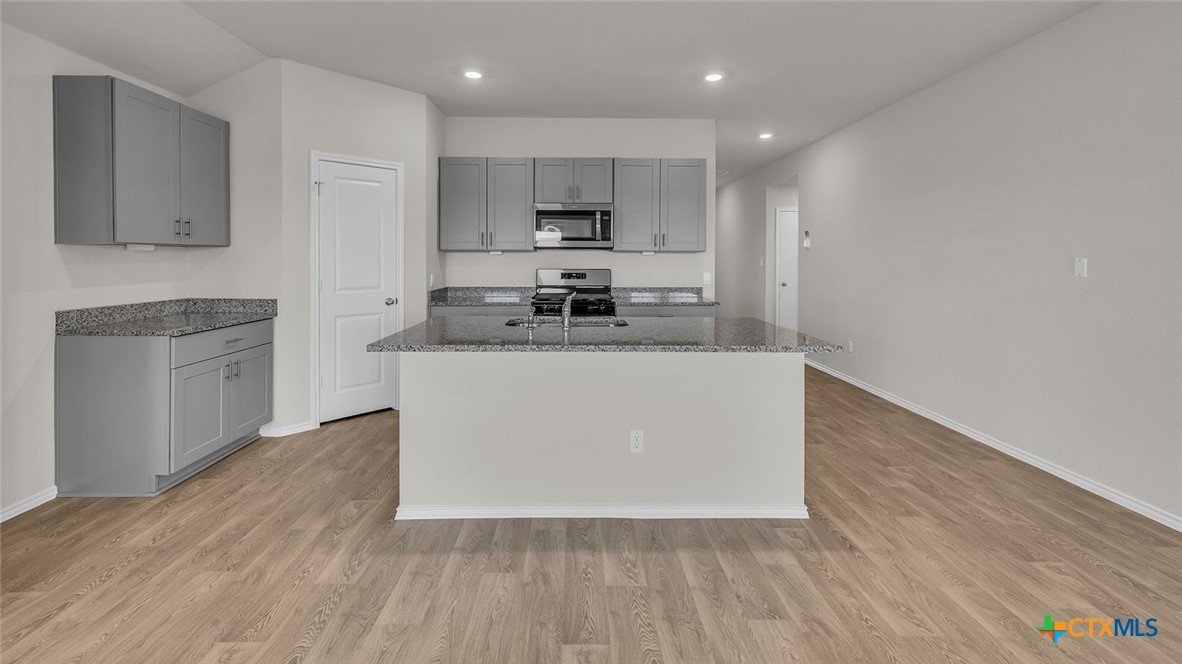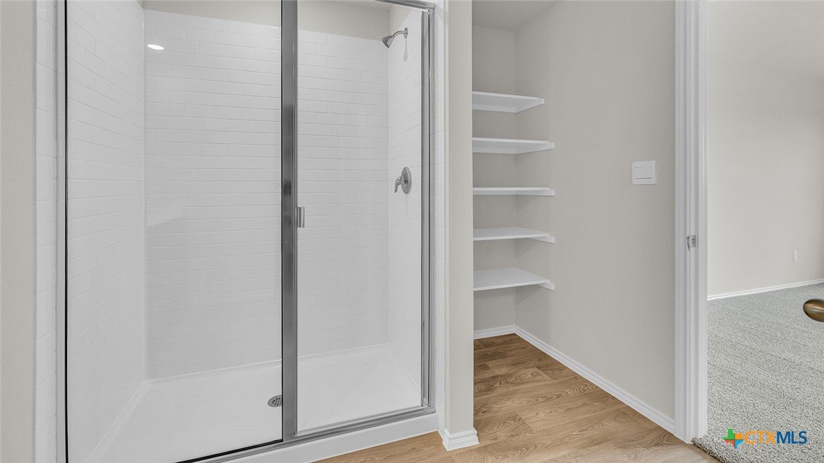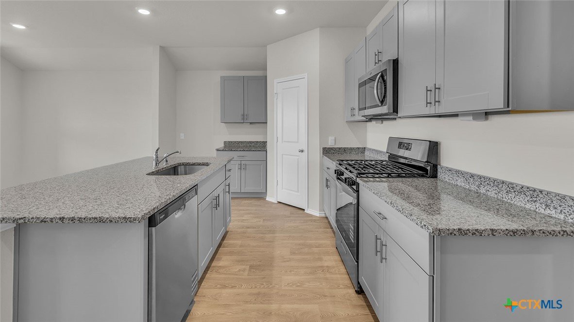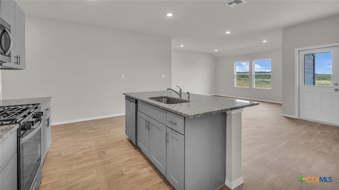 MOVE IN READY! OVERSIZE LOT! The Irvine is one of our one-story floorplans offered at Bollinger in Maxwell, Texas. This 4-bedroom, 2-bathroom home includes a 2-car garage within its 1,796 square feet of comfortable living space. Step into this home from the covered entryway and make your way down the hall to the main living space. The open kitchen looks out to your dining area and family room, allowing for conversations to easily flow from all spaces. The L-shaped kitchen features an island with undermount sink, granite countertops, 4" backsplash, a pantry closet, 36” upper cabinets, and stainless-steel appliances, including a gas range. Off the family room is the primary bedroom, with its own private bathroom. This relaxing bathroom space features a walk-in shower, cultured marble vanity with dual sinks, and separate door to the toilet for privacy. A walk-in closet with generous shelving is connected to the bathroom. At the front of the house, you will find bedroom 2 and 3, with the secondary bathroom conveniently located between the rooms. Bathroom 2 includes a shower/tub combination and open shelving for extra storage or décor. Across the foyer and down a short hall is the utility room and bedroom 4. Whether you use these rooms as an office, child’s room or guest room, there is plenty of space for work, sleep and play. The Irvine includes vinyl flooring throughout the common areas of the home, and carpet in the bedrooms. A covered back patio is also included in the Irvine plan. All our new homes feature Bermuda sod, an irrigation system in the front and back yard, and a 6’ privacy fence around the back yard. This home comes with our America’s Smart Home base package, which includes the Front Door Bell Deadbolt Lock, Home Hub, Thermostat, and Deako Smart Switches.
