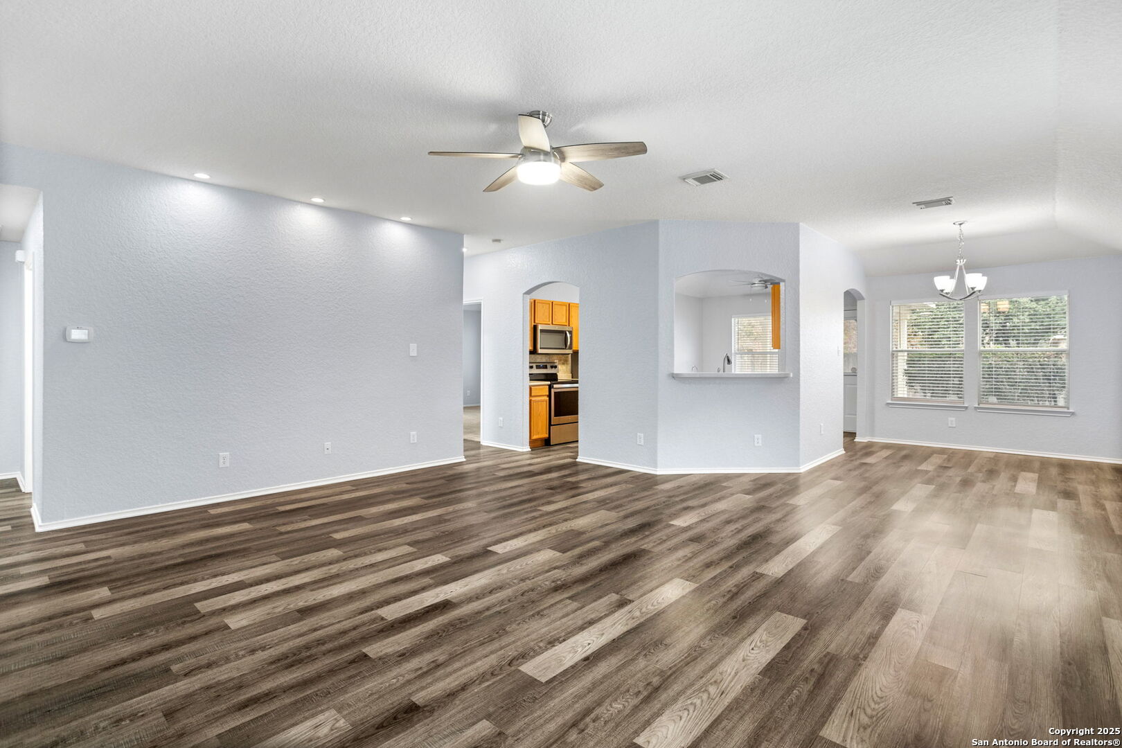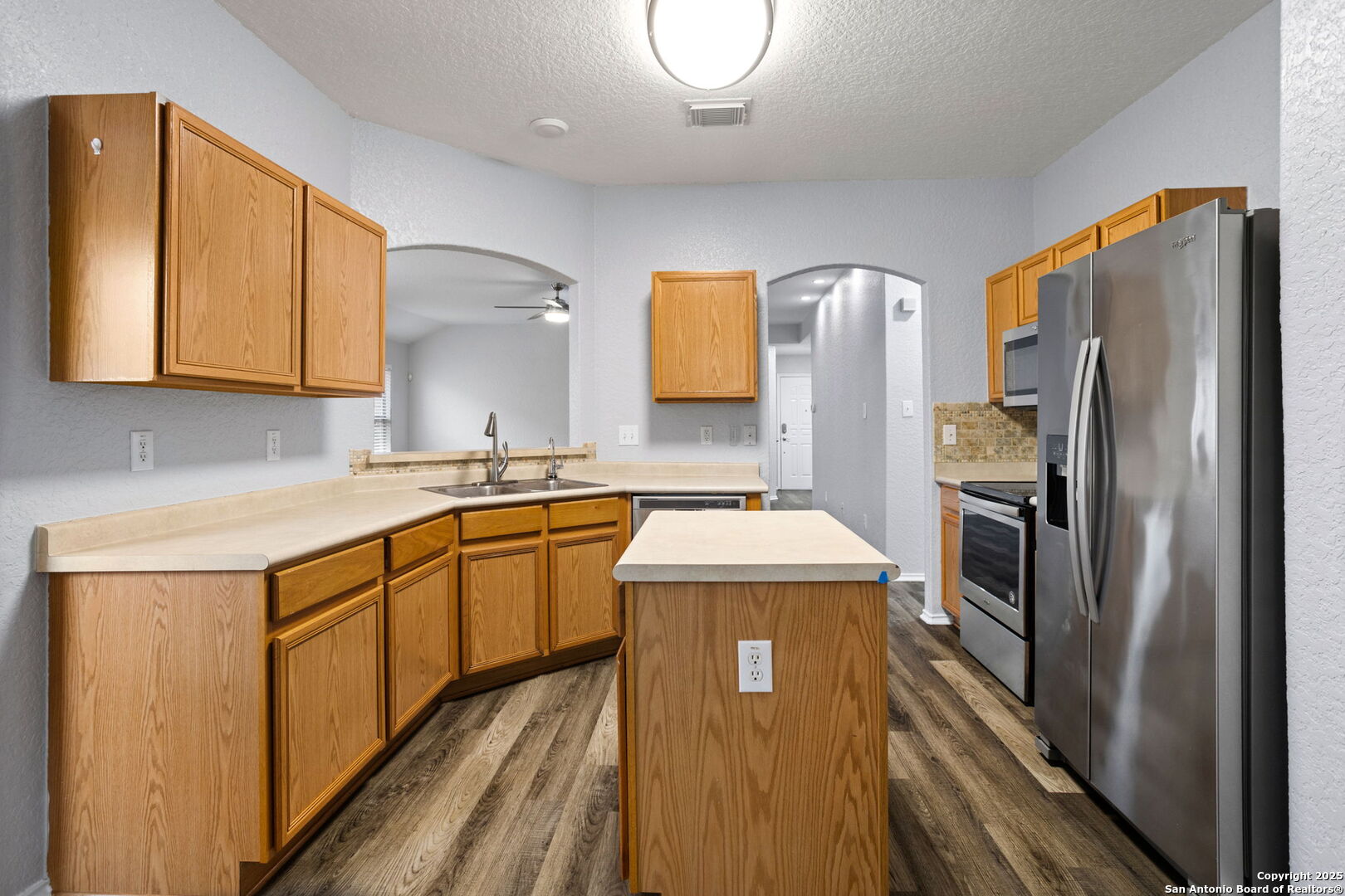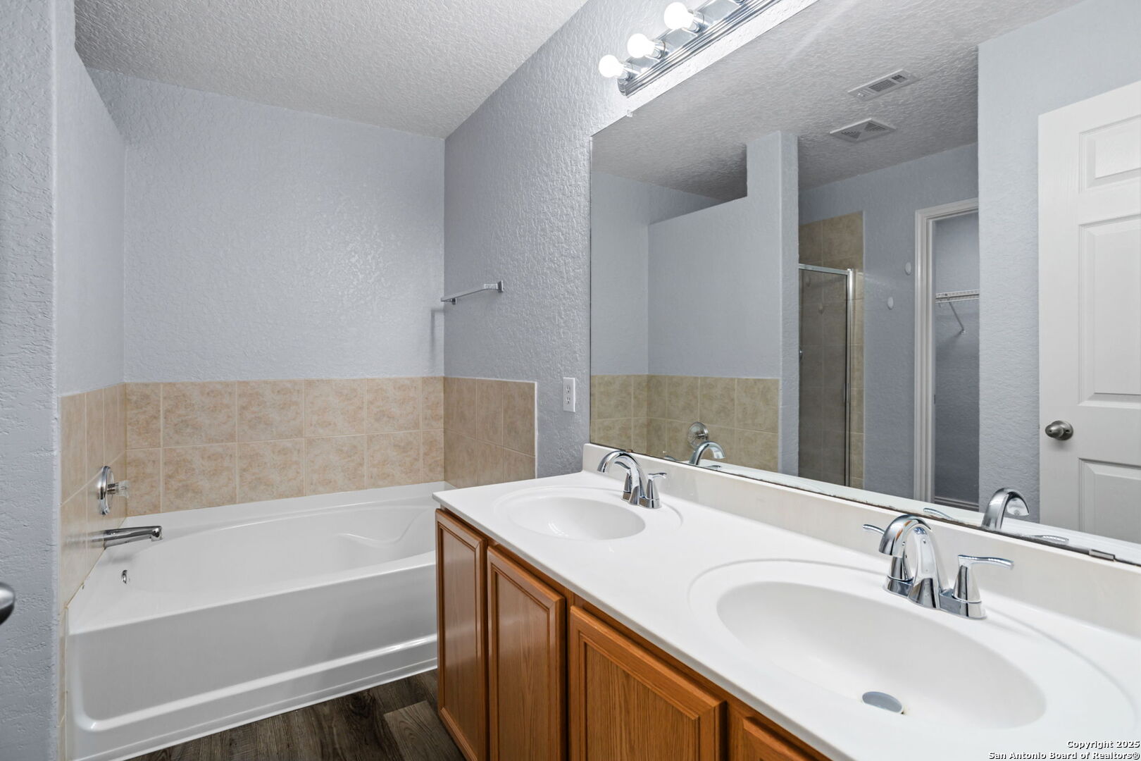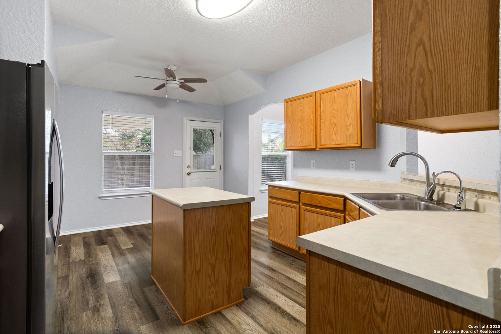 YOUR GONNA LOVE THIS HOUSE! NO APP OR ADMIN FEE! NO PET FEES! Single Story Charmer! NO STEPS! LEVEL LOT! In a tranquil and quaint Westcreek community. Close to Lackland AFB, Medical facilities, shopping, parks, eateries and schools. Neighborhood amenities include 2 pools, community/event center, park and playground, tennis, basketball, and volleyball courts. Plus BBQ pavilion, jog trails and a doggy park for our fury friends. Impressive curb appeal! This lovely home exemplifies an open floor plan! Wide Luxury Vinyl Plank flooring in main living. Modern lighting, blinds, ceiling fans, and recessed LED lights throughout the home gives a contemporary vibe. Dream kitchen! Loads of counter and cabinet space with adorable island, a cozy dining nook, a pass thru and breakfast bar. Stainless steel appliances! Generous primary retreat with a high ceiling and large window for flowing natural light. TOP OF THE LINE WATER FILTRATION SYSTEM! Enjoy a relaxing soak in your garden tub or walk-in shower. Dual vanities, private water closet and large walk-in closet complete your primary suite. Secondary bedrooms are light and airy with chic ceiling fans and spacious walk-in closets. Savor your morning coffee on your covered patio and enjoy the serene backyard. Please see additional information for Applicant Qualifications. To apply please ask your applicant to use the "rentredi" link in this MLS listing. First month's rent due upon move in. OWNER IS THE PROPERTY MANAGER. Just 1 month deposit subject to a credit / eviction check.