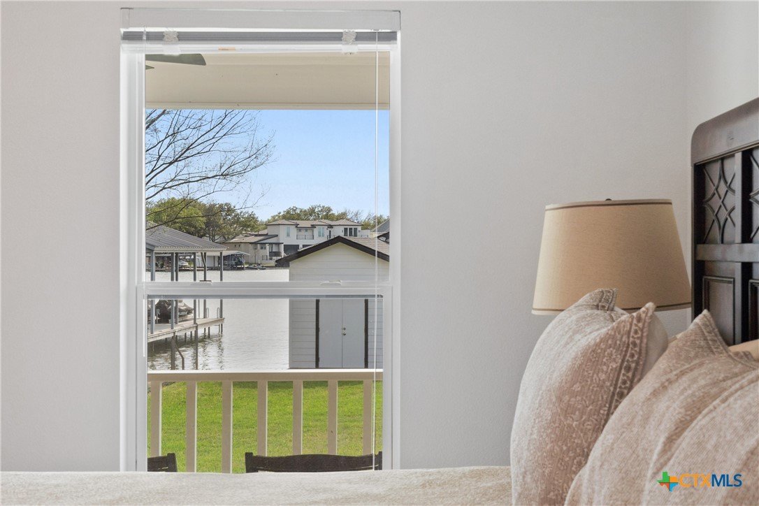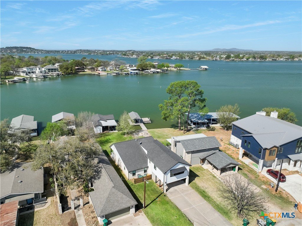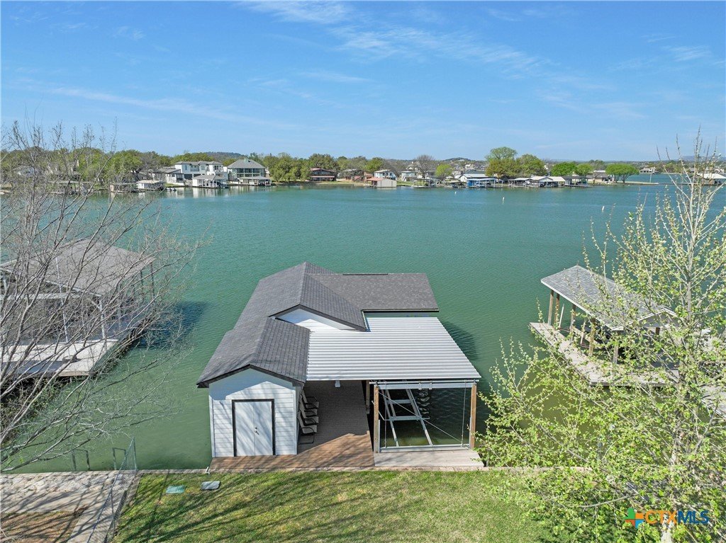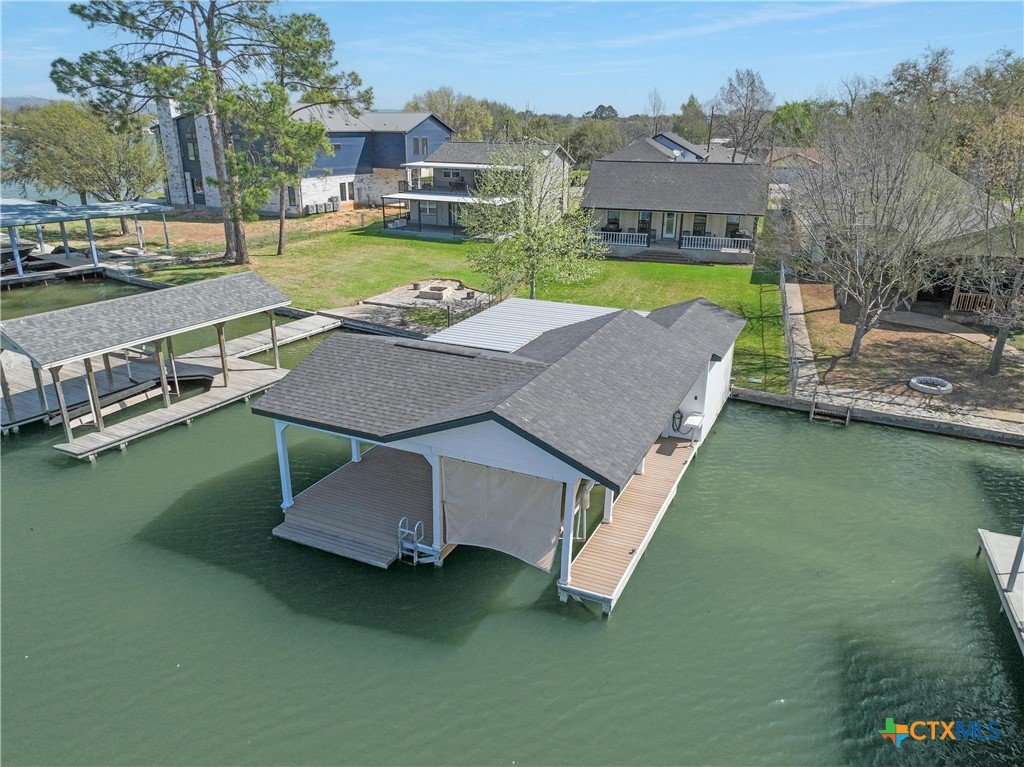 Welcome to 50 feet of pristine Lake LBJ shoreline, where the boathouse is your private launchpad for adventure. With dual boat lifts, Trex decking, built-in speakers, and a shaded seating area, it’s designed for effortless days on the water. A ladder and steps make hopping in for a swim a breeze, while the covered back patio with ceiling fans is perfect for laid-back afternoons. Inside, the vaulted, beamed ceilings and expansive lake views set the tone for a bright, airy living space. The kitchen blends style and function, featuring granite countertops, bar seating, and a smooth-top range with a vent hood—ideal for prepping lakeside feasts. The owner’s suite is a private haven, offering soothing lake views, a spa-like en suite with a walk-in shower, and a generous walk-in closet with built-ins. Upstairs, the bunk room steals the show with soaring ceilings, oversized windows, and dual walk-in closets, while additional bedrooms ensure there’s space for everyone. With a new roof, brand-new windows (2024), and zoned HVAC, this home is built for comfort. And the best part? Short-term rental friendly and just steps from Bluebriar & Briar Park’s boat ramp and lakeside park! Whether you're boating, swimming, or just soaking in the views, Lake LBJ is calling—answer the adventure!