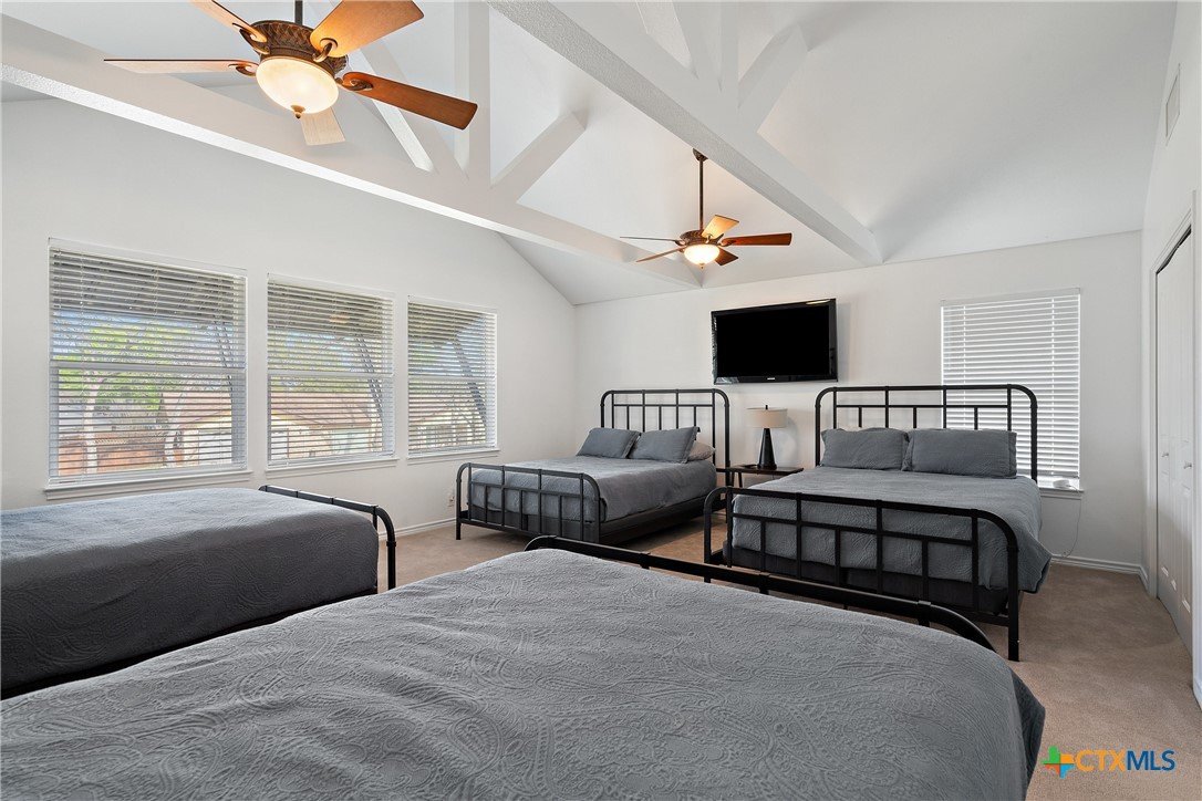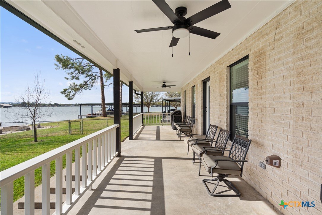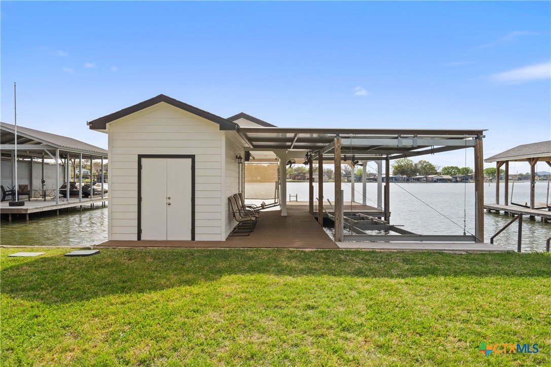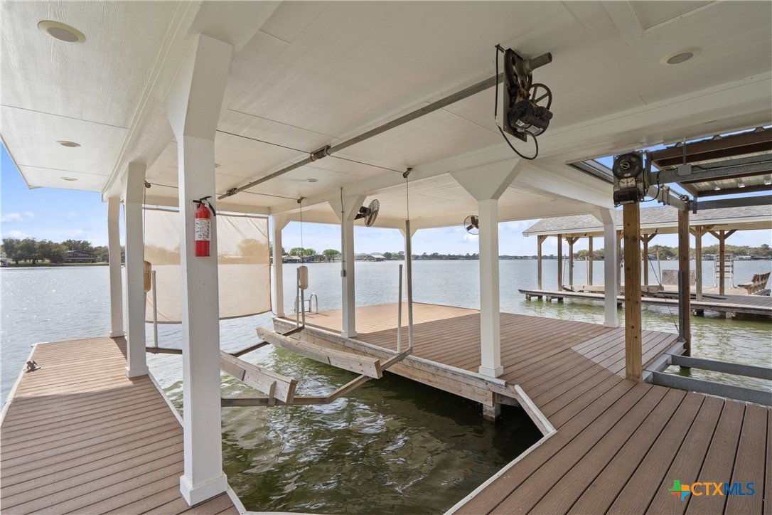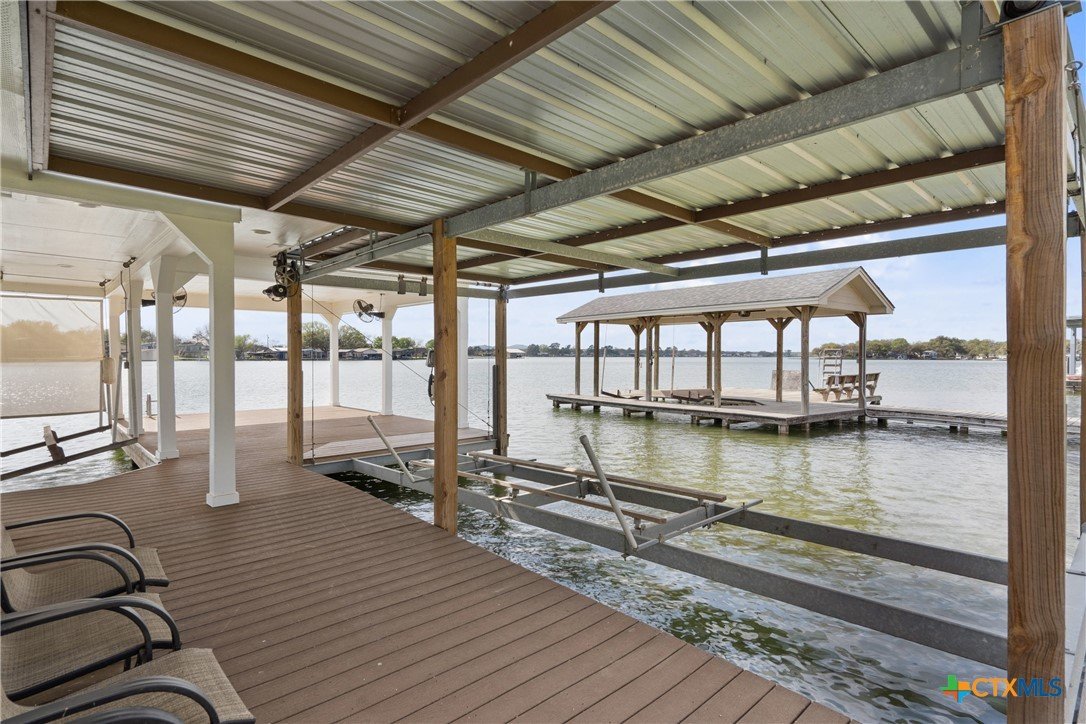 Welcome to 50 feet of pristine Lake LBJ shoreline, where the boathouse is your private launchpad for adventure. With dual boat lifts, Trex decking, built-in speakers, and a shaded seating area, it’s designed for effortless days on the water. A ladder and steps make hopping in for a swim a breeze, while the covered back patio with ceiling fans is perfect for laid-back afternoons. Inside, the vaulted, beamed ceilings and expansive lake views set the tone for a bright, airy living space. The kitchen blends style and function, featuring granite countertops, bar seating, and a smooth-top range with a vent hood—ideal for prepping lakeside feasts. The owner’s suite is a private haven, offering soothing lake views, a spa-like en suite with a walk-in shower, and a generous walk-in closet with built-ins. Upstairs, the bunk room steals the show with soaring ceilings, oversized windows, and dual walk-in closets, while additional bedrooms ensure there’s space for everyone. With a new roof, brand-new windows (2024), and zoned HVAC, this home is built for comfort. And the best part? Short-term rental friendly and just steps from Bluebriar & Briar Park’s boat ramp and lakeside park! Whether you're boating, swimming, or just soaking in the views, Lake LBJ is calling—answer the adventure!