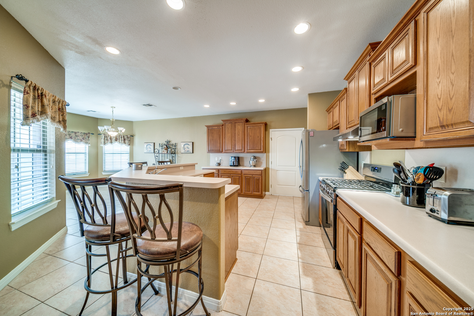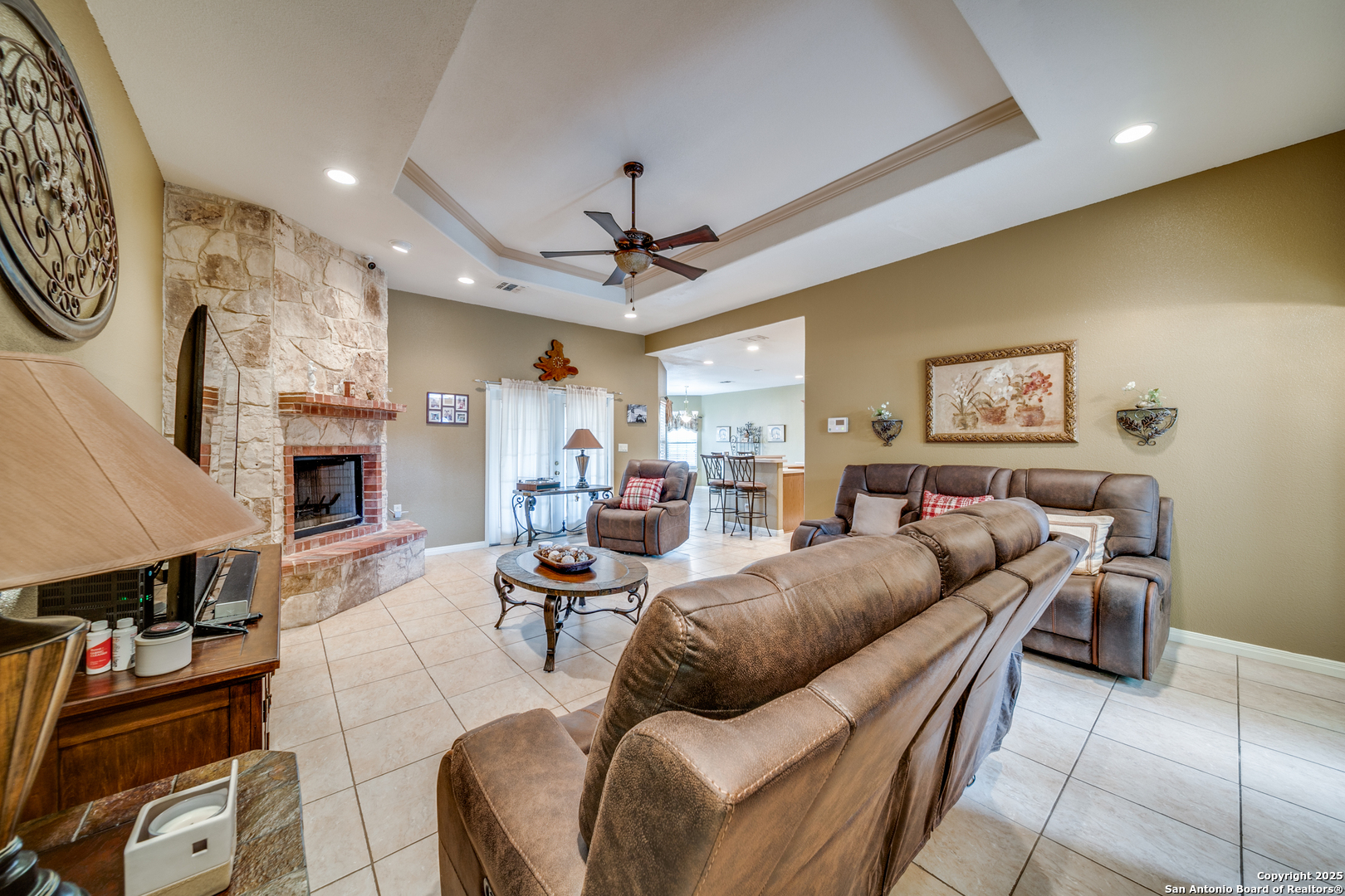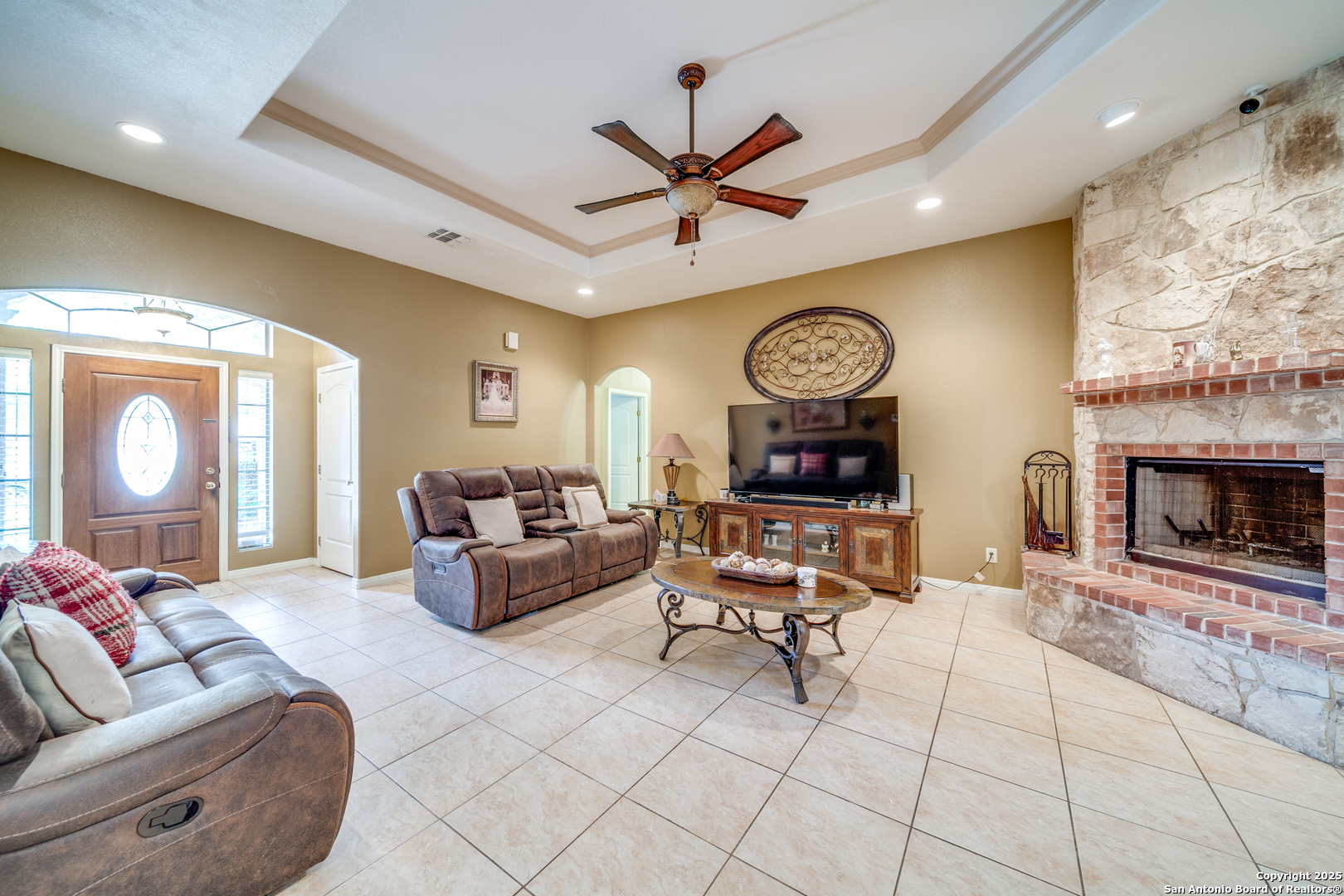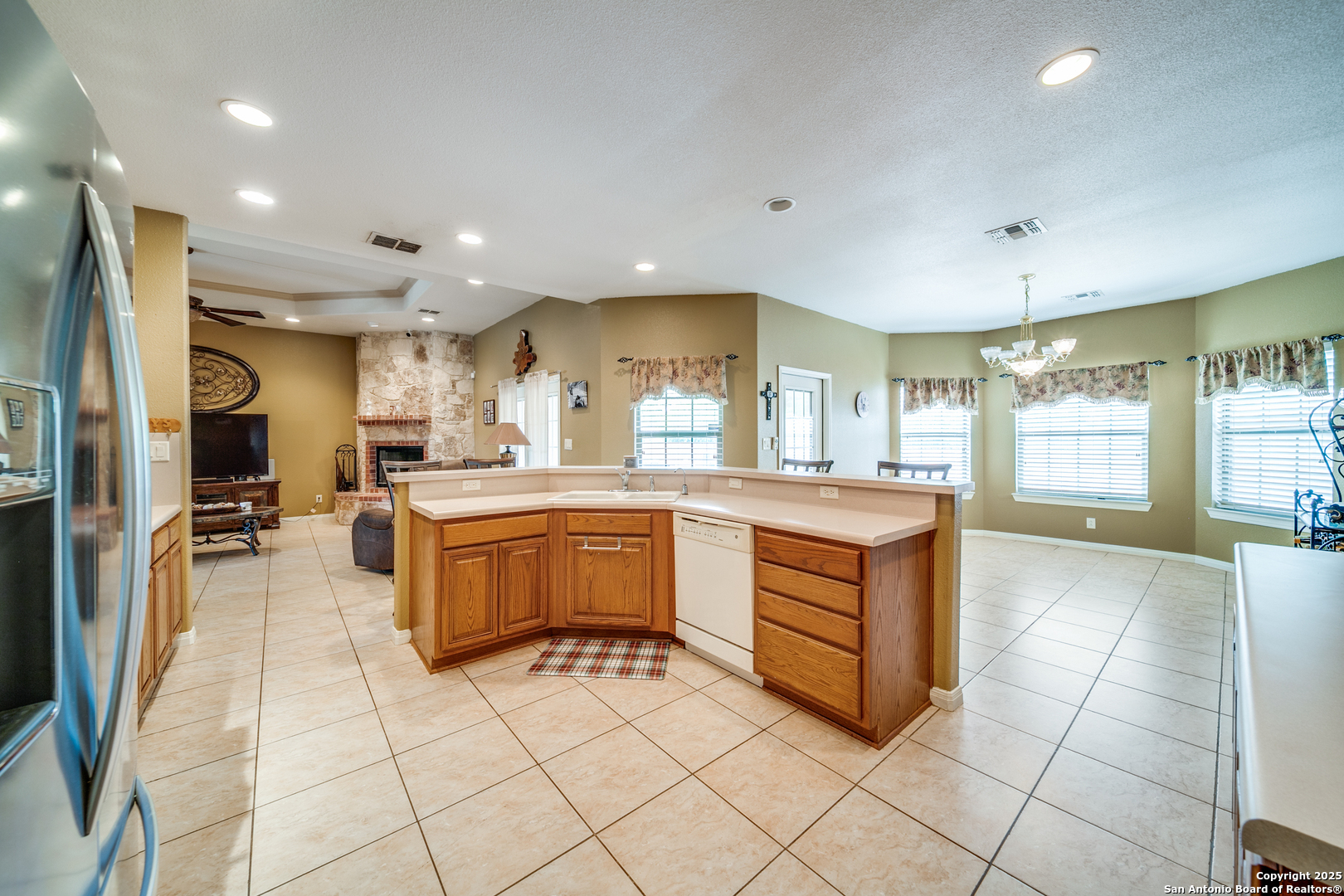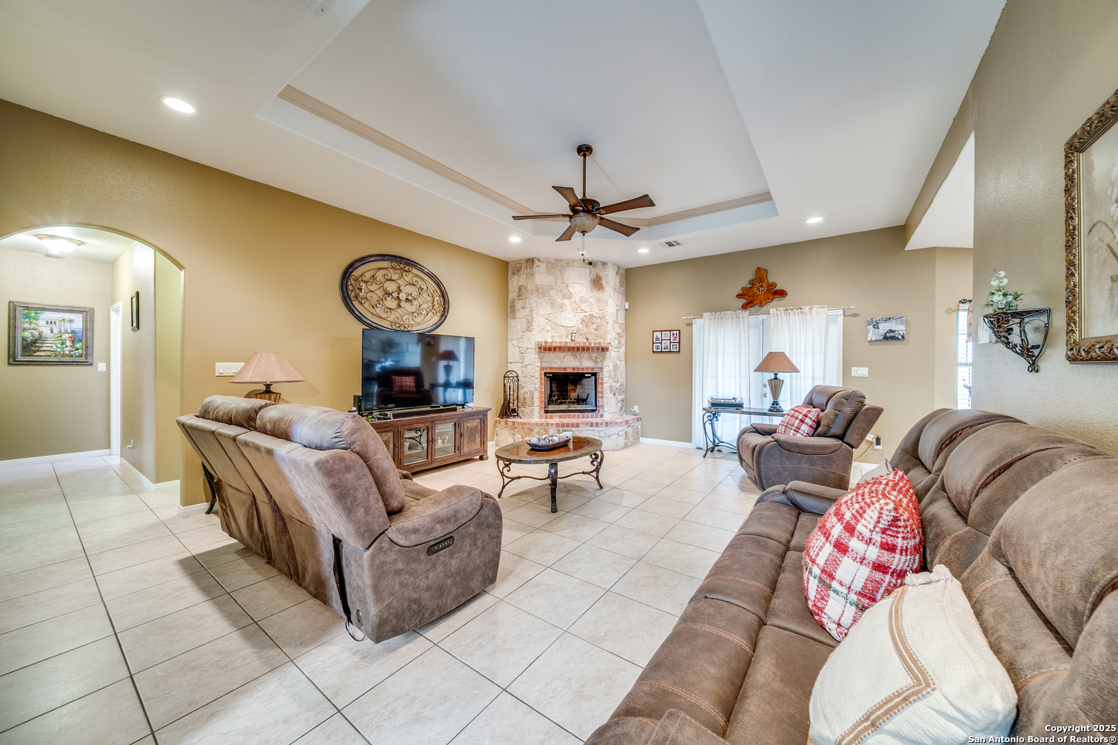 Pristine one story in gates community on quiet cul-de-sac. Lovely 16x16 tile throughout. Impressive kitchen boasts gas cooking, walk-in pantry, abundant cabinets, floor to ceiling rock fireplace in family room. Owners retreat has walk-in closet and separate tub and shower, 18x10 covered patio and 13x16 attached storage! Must see!