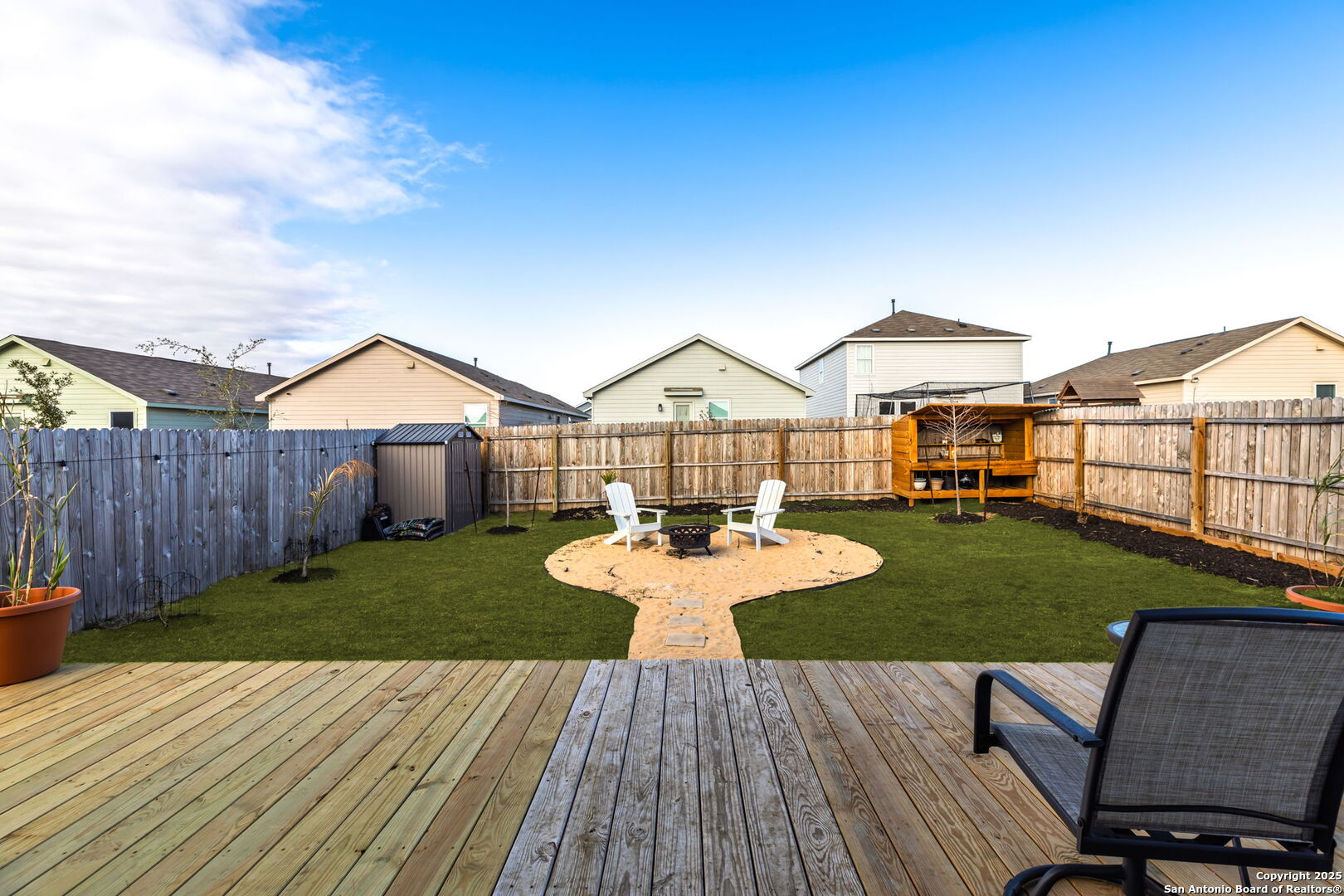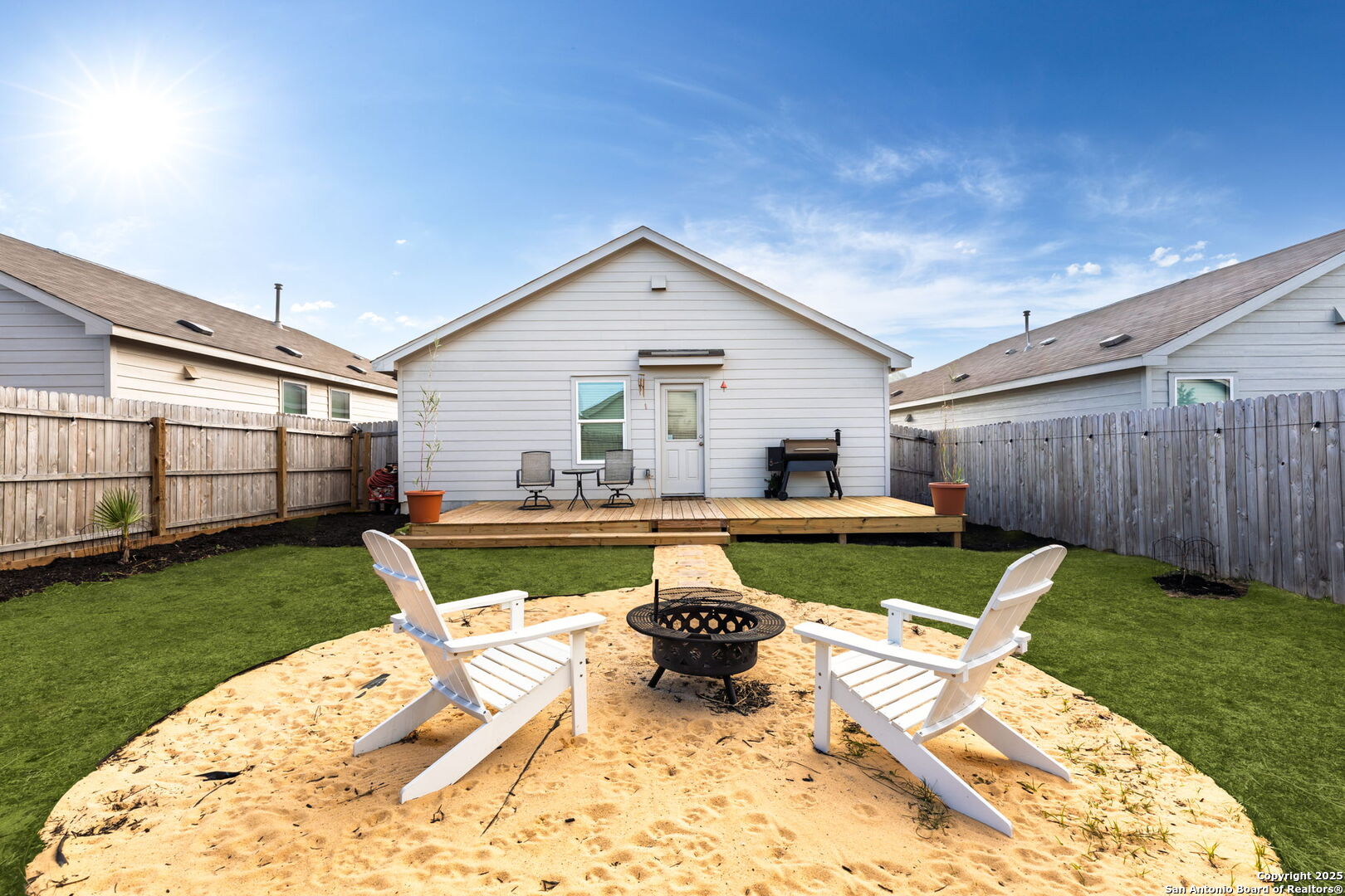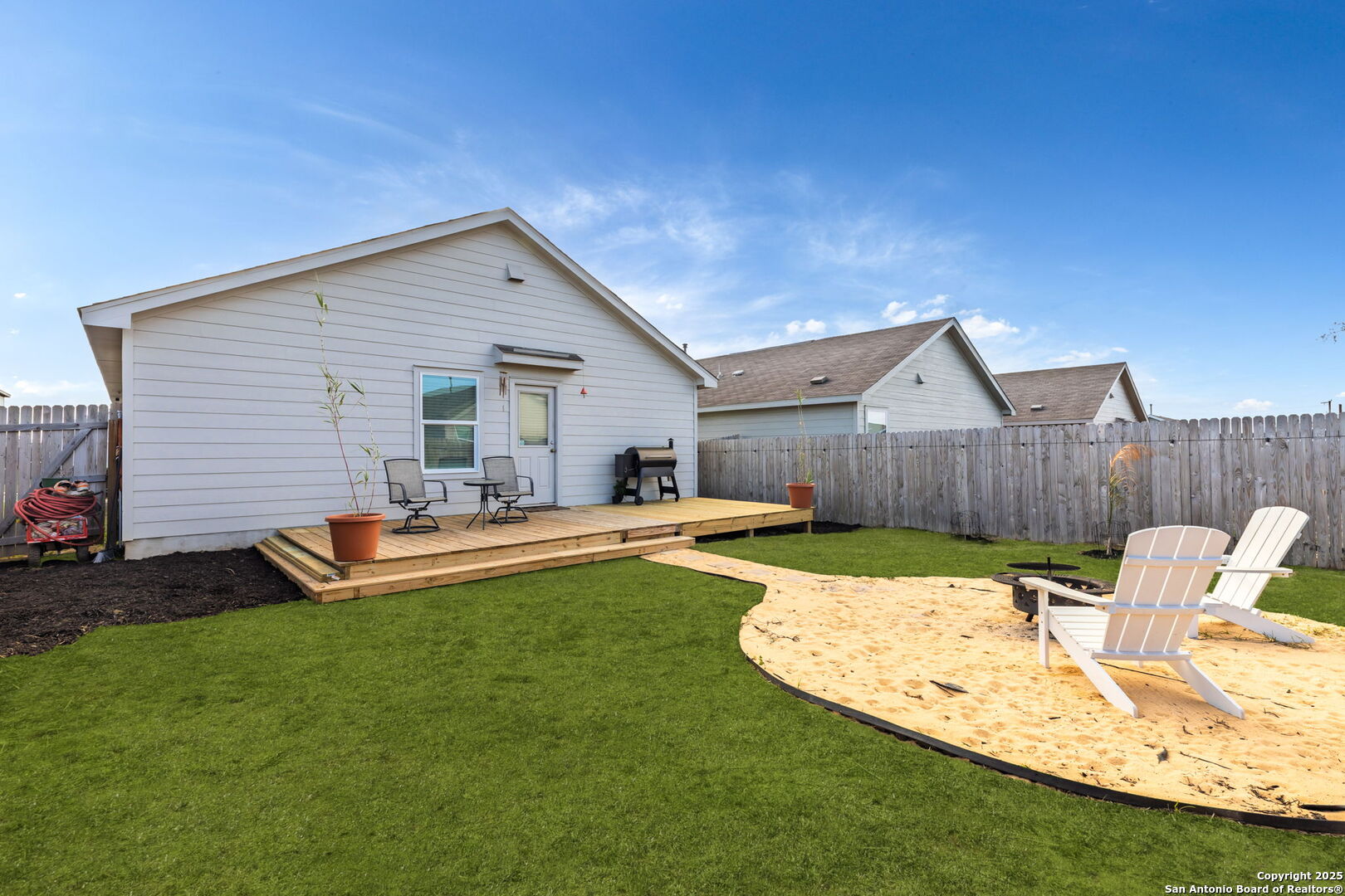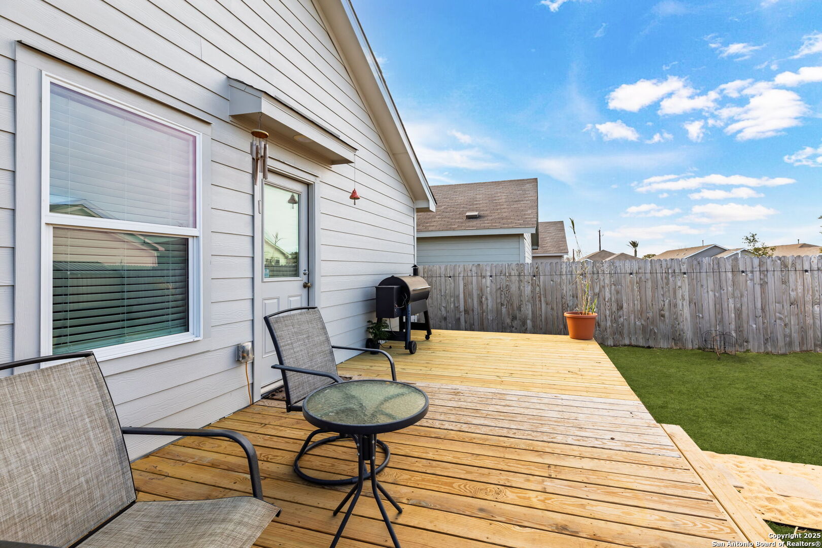 Welcome to this adorable three-bedroom, two-bath home in the sought-after Southton Meadows community on the southeast side of San Antonio! Built just two years ago by Lennar, this single-story gem offers modern comfort, style, and energy efficiency. Step inside to an inviting open floor plan with upgraded countertops, perfect for entertaining and everyday living. The spacious kitchen flows seamlessly into the dining and living areas, creating a warm and welcoming atmosphere. Relax in your primary suite, complete with a private bath, while two additional bedrooms offer flexibility for family, guests, or a home office. Outside, enjoy your morning coffee or host a barbecue on the brand-new backyard deck, making the outdoor space an extension of your home. With energy-efficient features, a prime location, and a cozy, modern design, this home is a fantastic opportunity for anyone looking to settle in Southton Meadows.