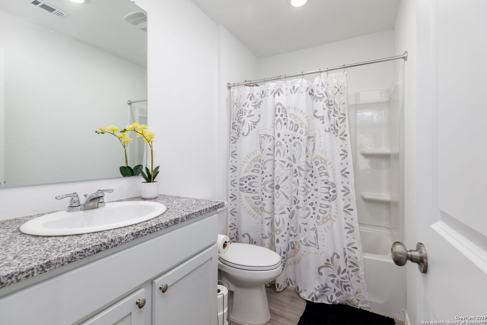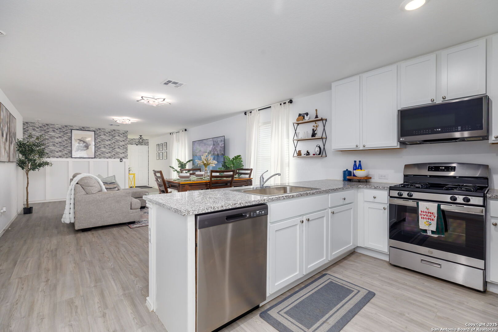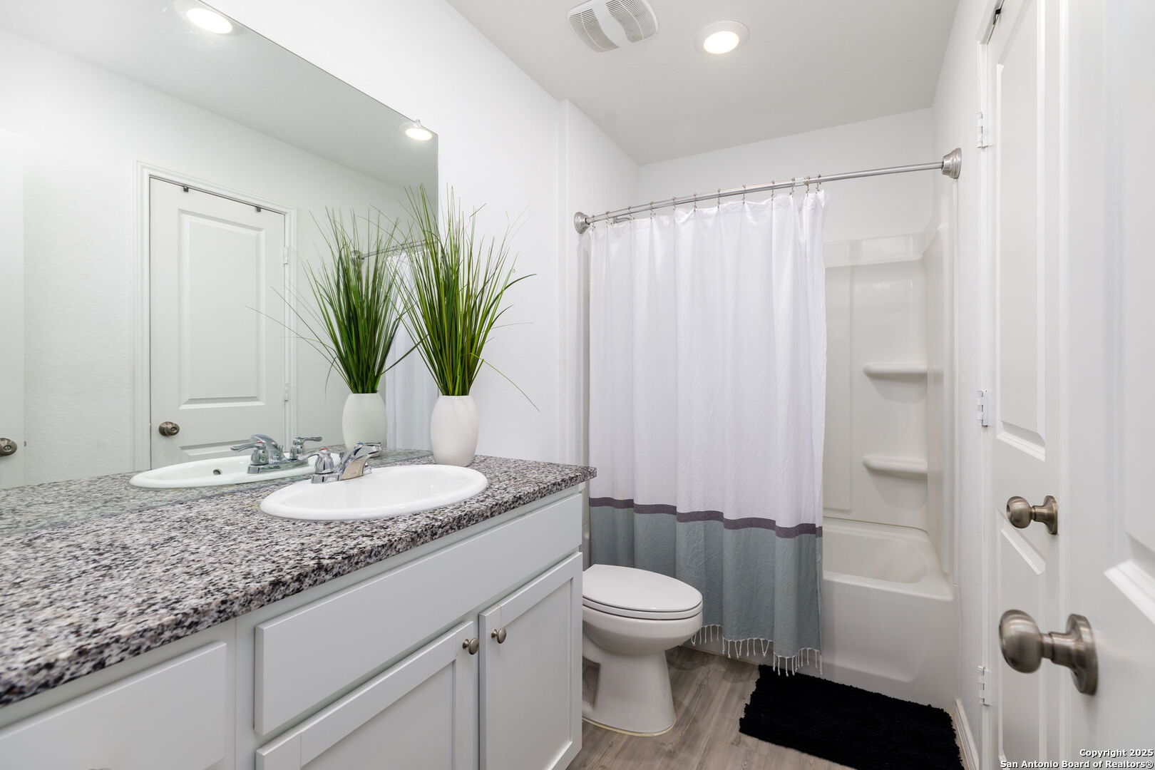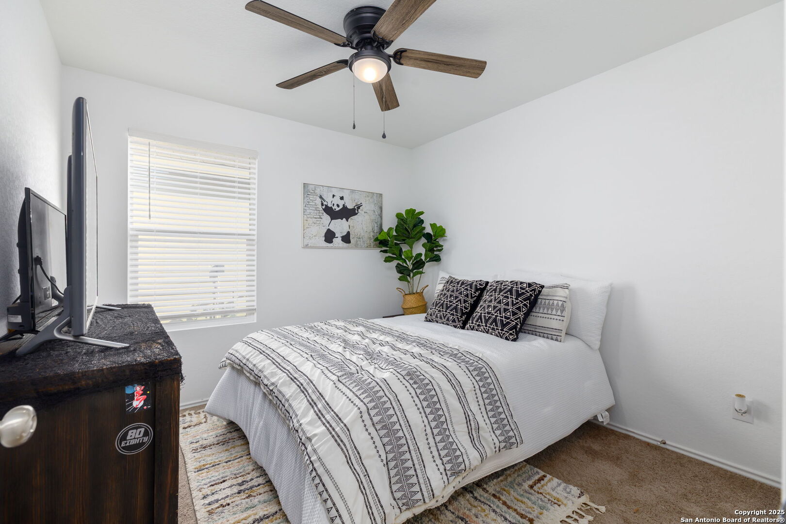 Welcome to this adorable three-bedroom, two-bath home in the sought-after Southton Meadows community on the southeast side of San Antonio! Built just two years ago by Lennar, this single-story gem offers modern comfort, style, and energy efficiency. Step inside to an inviting open floor plan with upgraded countertops, perfect for entertaining and everyday living. The spacious kitchen flows seamlessly into the dining and living areas, creating a warm and welcoming atmosphere. Relax in your primary suite, complete with a private bath, while two additional bedrooms offer flexibility for family, guests, or a home office. Outside, enjoy your morning coffee or host a barbecue on the brand-new backyard deck, making the outdoor space an extension of your home. With energy-efficient features, a prime location, and a cozy, modern design, this home is a fantastic opportunity for anyone looking to settle in Southton Meadows.