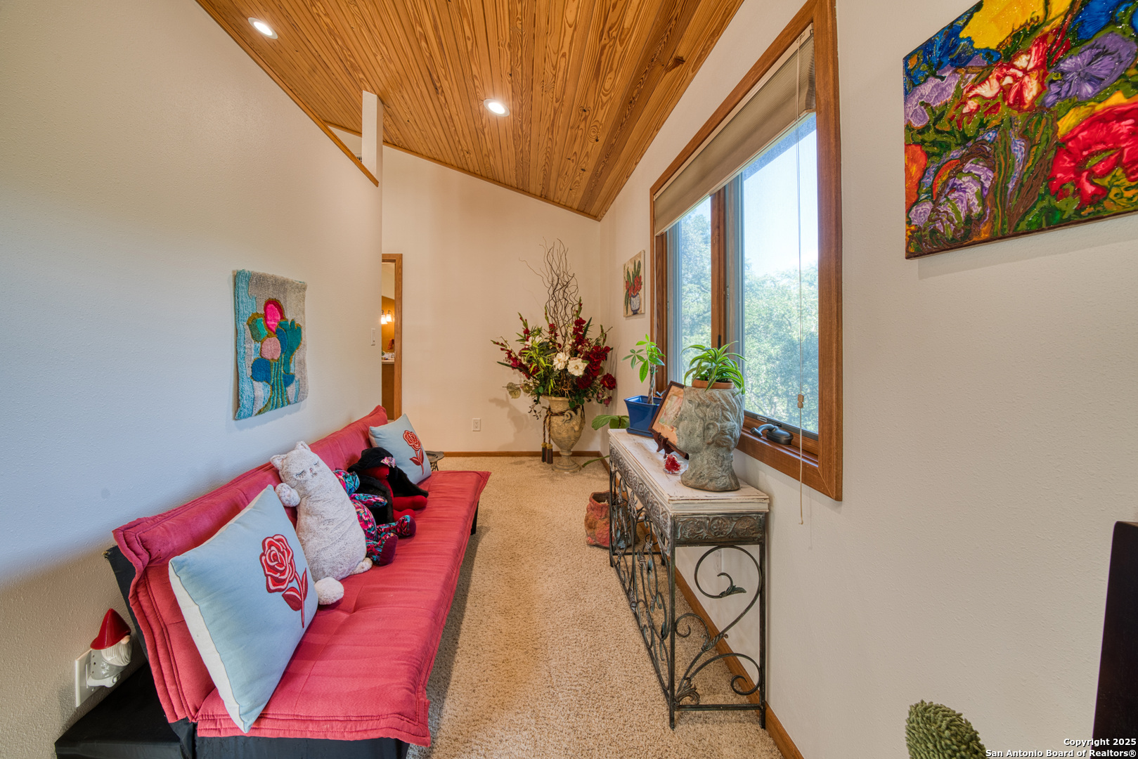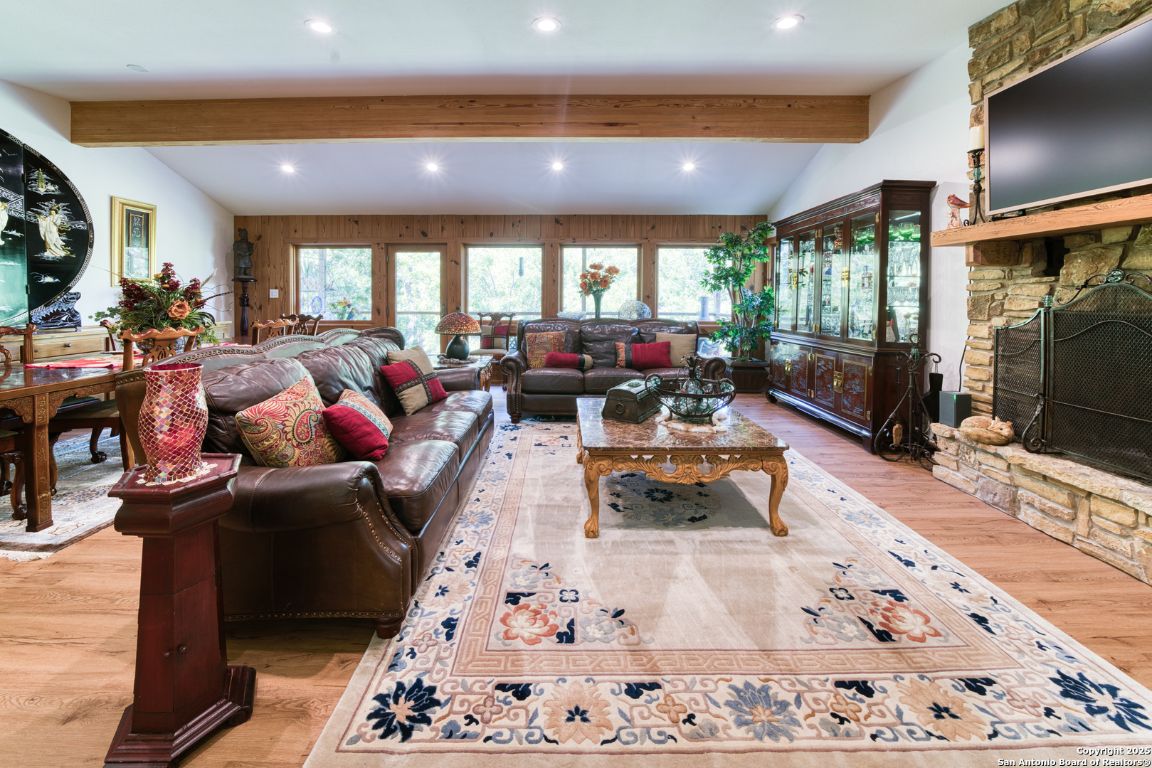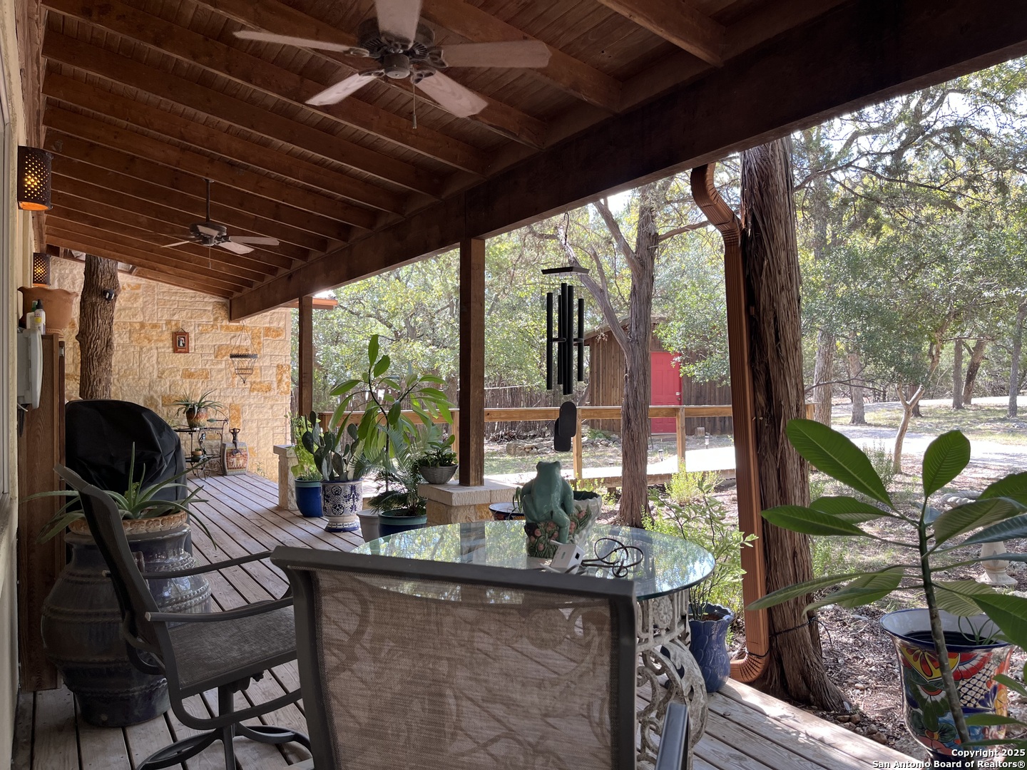 Welcome to the small private gated community of Twin Bluffs. Enter and find your little slice of heaven! Turn into 412 Field road and slowly wind through serene woods to the well built stone and stucco home atop the bluff overlooking the Blanco River below. As you enter the home you will immediately feel as though you are in a luxury treehouse. Your looking out at towering Pecans through the full wall of beautiful Andersen Wooden windows. There is a large stone fireplace on your right. Imagine cozy winter nights nestled close to the fire! Venture further to the multi level deck and further down the custom metal stairs to the Pecan and Cypress parklike river bottom below. Your looking across the river at a private 200-plus acre estate! -3 bedrooms and 2 baths -Huge master suite -Andersen wooden windows -open kitchen/living room -office/study -approx 1200 sqft/ garage/shop -113 ' river front with additional access up and down the riverfront! Located about 8 miles west of Wimberley. About 1/4 mile up river from John Knox ranch.