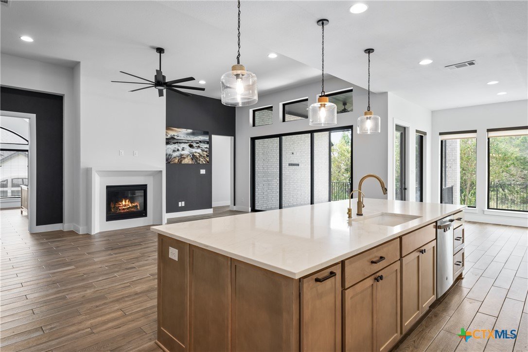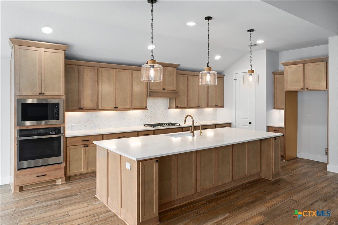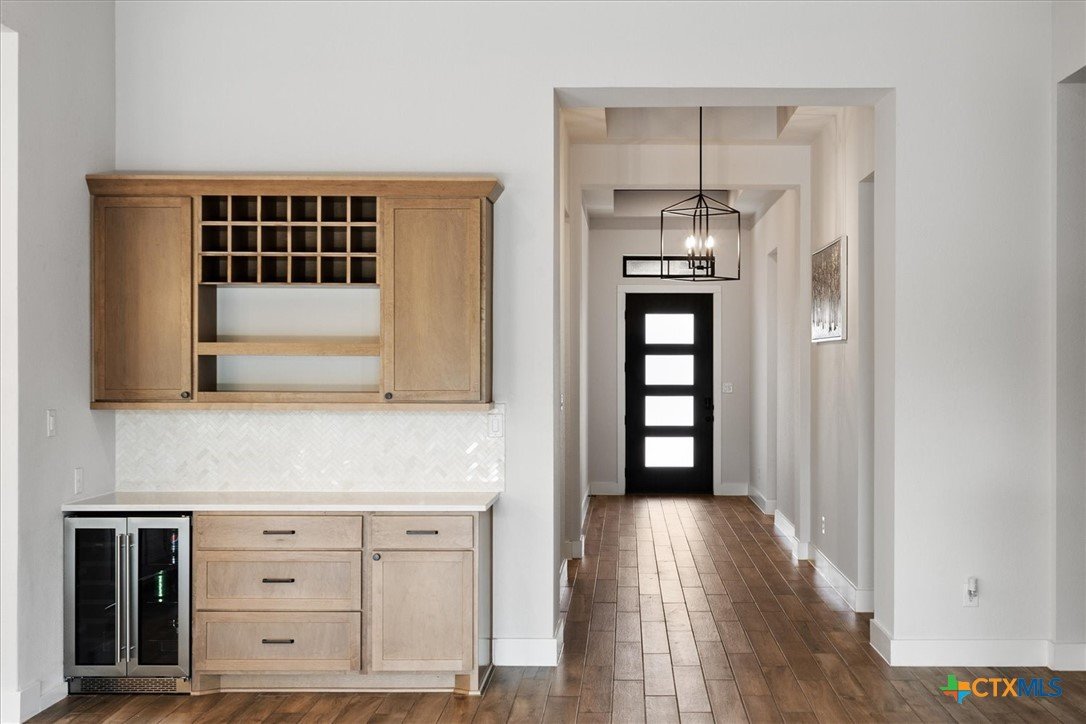 Beautifully and practically appointed Perry Home for the quality and value conscious. Must see this gorgeous home, you’ll feel as if you’re not in a neighborhood. The private primary suite offers plate glass views of greenspace, a spacious primary bath with his and her vanities and relaxing tub. A living area ideal for family and guest entertaining, features a kitchen with built in chef appliances, level 5 stone counters, custom wine bar with under counter fridge, fireplace, and game room. A three-panel sliding door opens the covered outdoor space to add to the entertaining relaxing living area; perfected with dual remote solar screens which lower for year-round enjoyment. Your grill connects to home natural gas. The front two bedrooms with Jack and Jill bath adds flexible multi-gen space. The epoxy floored 3 car tandem garage and permanent Holiday lighting offer more practical living as well. This almost new home is currently owned and already perfected during warranty period by owner, a Perry Home professional sales team member. Compare the upgrades, compare the lot, compare the PID(*Save $139 p/mo on PID over phase 3 new builds), compare the neighborhood amenities! This home is ready to be yours now.