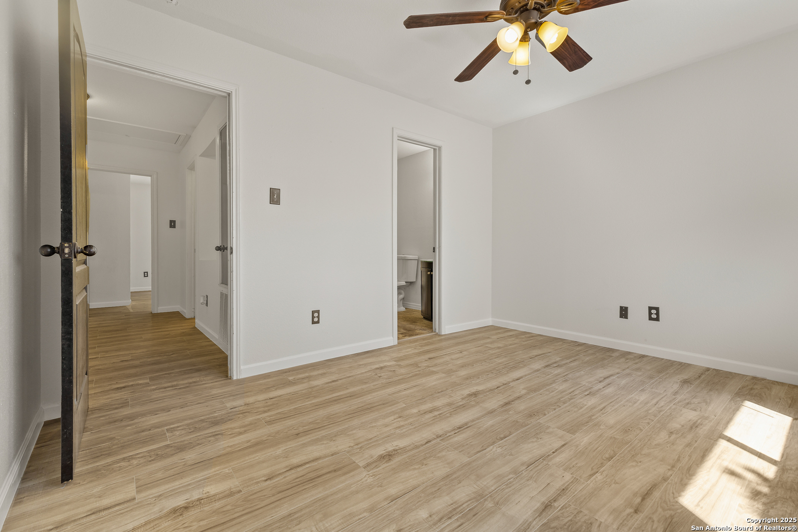 This spacious 4 bedroom, 2.5 bath home located on the highly desirable northeast side of San Antonio-just minutes from The Forum, IKEA, major highways, great restaurants, and shopping. NEISD schools, located on a cul-de-sac street and with a greenbelt behind the home. This home features fresh interior paint throughout and new laminate flooring, offering a clean, updated look. With just a few finishing touches, this home can easily be made your own and is well on its way to being move-in ready. Don't miss the opportunity to own a home in such a convenient and growing area with plenty of space for everyone to enjoy!
