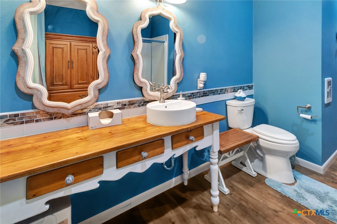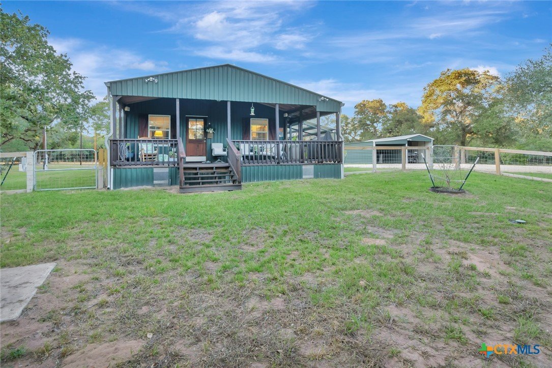 Custom-built 2BR/2BA home completion date 2022, on fenced & cross-fenced acreage, located within the Lavaca Texas Wildlife Game Reserve! Wood-frame construction with metal siding and durable metal roof. Features include Generac generator, Google Home system, in-ground mosquito control, water softener, and spacious covered porches. Kitchen features custom cabinetry and quartz countertops hidden dishwasher. Bonus room ideal for office or guest space (no closet). Includes 680 sqft covered carport, 613 sqft storage shed, and 32x16 barn. Scenic, stocked pond with mature catfish, bass, and perch—plus ducks and mallards. Wildlife abundant with mature oaks in a peaceful, private setting... move-in ready!