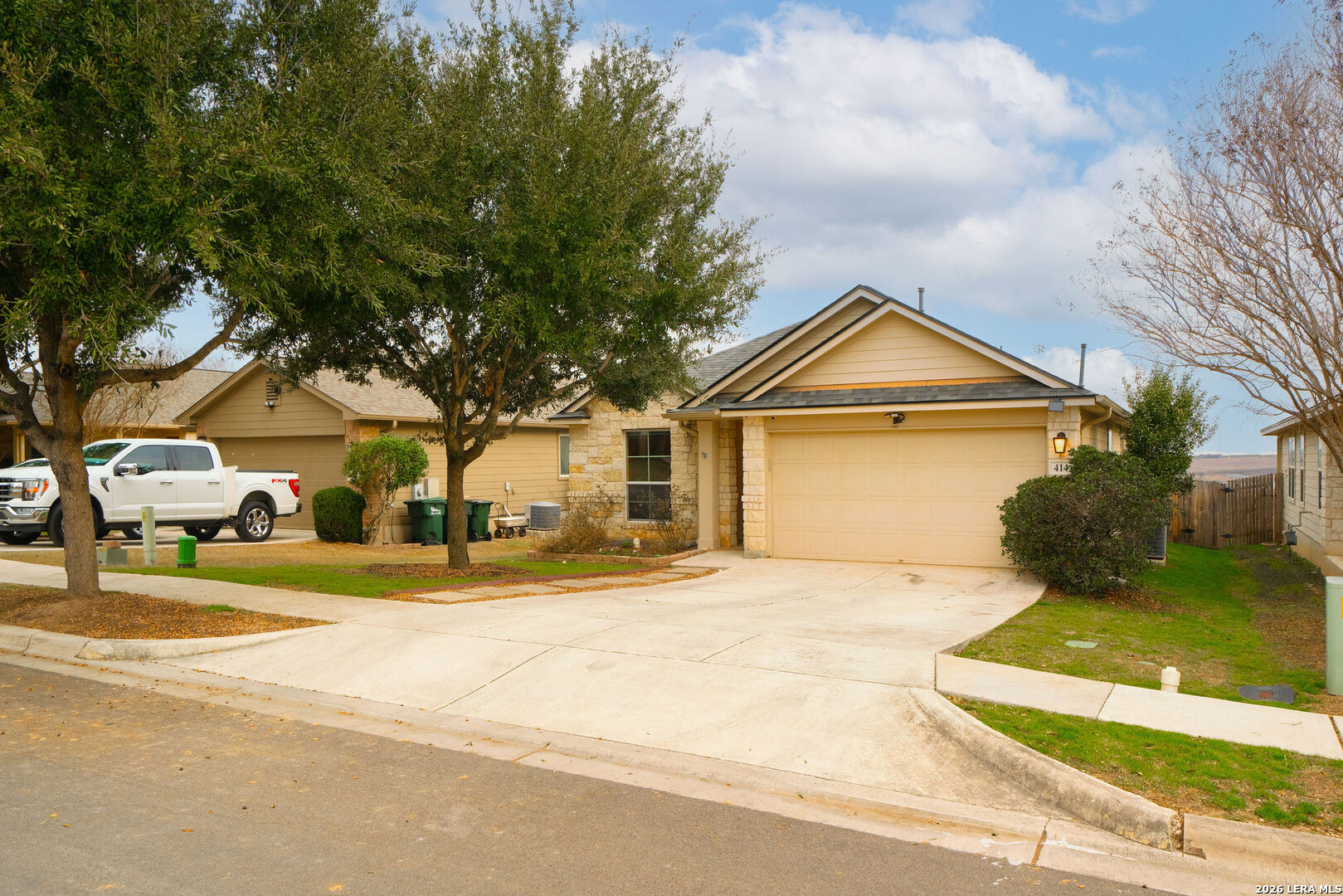 Welcome to this beautifully maintained 3 bedroom, 2 bathroom home located in the desirable Cottonwood Creek community. The home features tasteful updates throughout, including landscaping, interior flooring, a newer roof, and gutters, adding both style and peace of mind. Thoughtfully designed, the home offers an open-concept living, dining, and kitchen layout filled with abundant natural light, creating a warm and inviting atmosphere ideal for both everyday living and entertaining. The spacious primary suite serves as a private retreat, featuring an en suite bathroom with a double vanity, separate standing shower, and soaking tub. Secondary bedrooms are comfortably sized and offer flexibility for guests, family, or a home office. Enjoy exceptional privacy with no neighbors behind the home, where the backyard overlooks a peaceful pasture, providing tranquil views and a serene setting. Outdoor living is enhanced by a covered patio with ceiling fan, perfect for relaxing or entertaining while enjoying the quiet surroundings. Conveniently located near shopping and dining amenities, this home also offers easy access to major highways and is within an hour's drive of both San Antonio and Austin, providing the perfect balance of peaceful living and urban convenience.