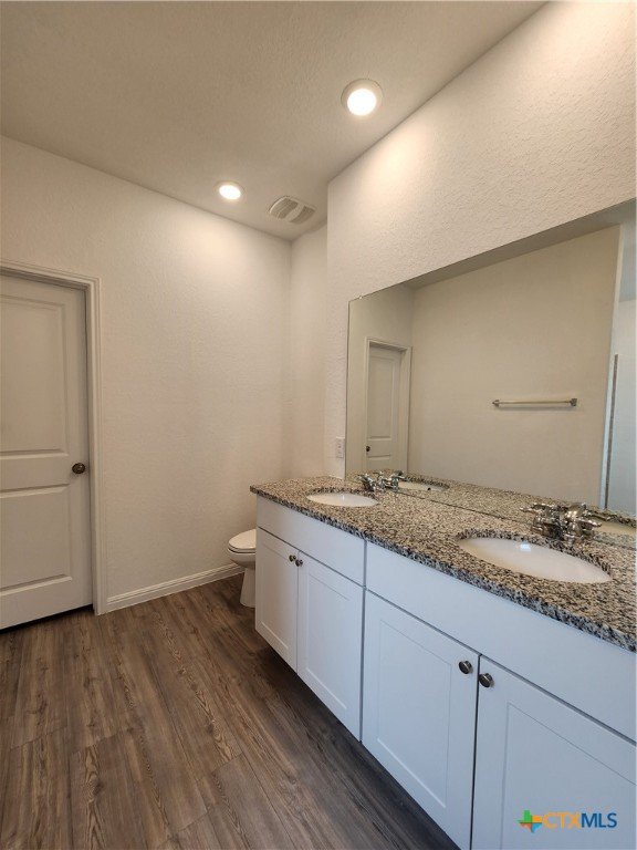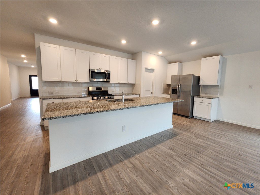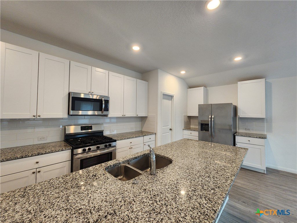4/3/2 with office ( or bonus room) in Heather Glen. Luxury vinyl plank throughout - No Carpet! Kitchen features include: Fridge, gas stove/oven range, dishwasher, built in microwave, granite countertops , island with breakfast bar, recessed lighting and a walk in pantry. Interior washer & dryer connections. Tankless Water Heater = Instant Hot Water . Sprinkler System. Automatic Garage Opener. Primary bath has double vanities, walk in shower and a walk in closet. Covered back patio. Fenced in yard. CISD (1 pet max, 45 lbs max). Cats- Must Provide Proof of Spay/Neuter. Community Pool, BBQ Pits, and Playground